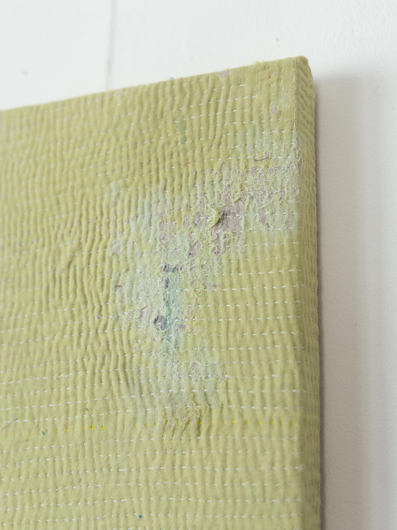 何枚もの布を重ねてキルティングされたカンタは、長い年月の使用により自然にほつれ、内側の生地の色が現れたり、何度も洗われることで独特のカラーへと変化していきます。人工的には決して再現できない、時間だけが作り出す色や風合いがあります。