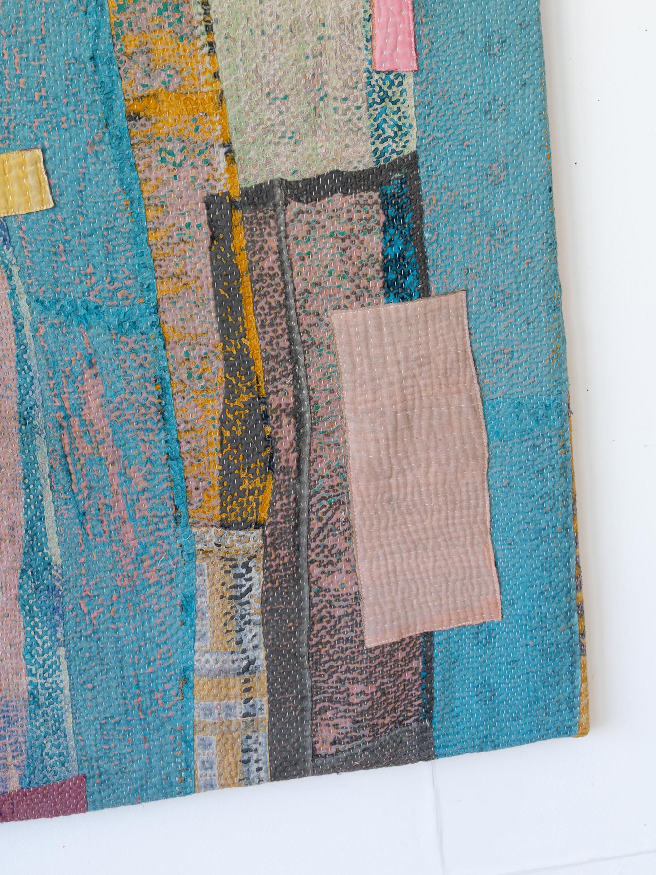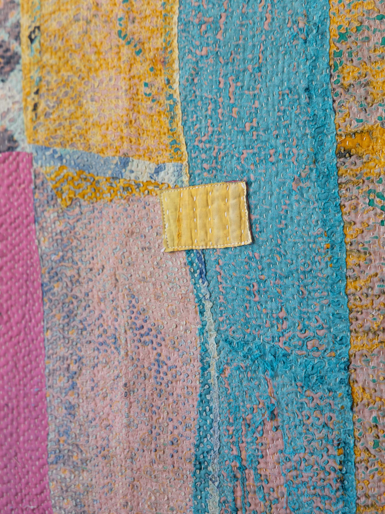 カンタとはインドのベンガル地方を中心に伝わる刺子刺繍のこと。古い布を合わせてひと針ひと針、手仕事で刺し子が施されています。布の補強と装飾を兼ねたカンタ刺繍により、魅力的なファブリックに生まれ変わっています。