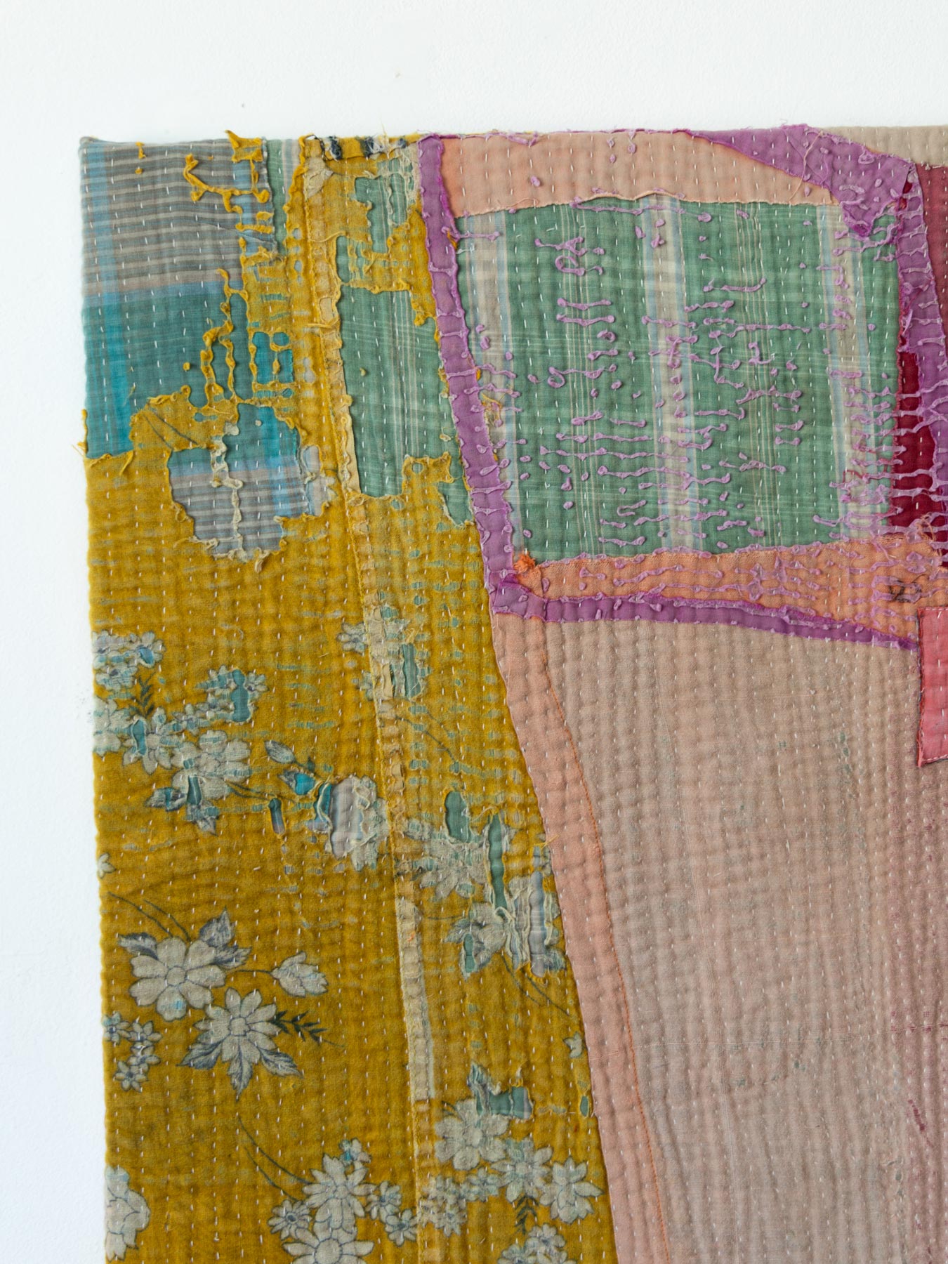 何枚もの布を重ねてキルティングされたカンタは、長い年月の使用により自然にほつれ、内側の生地の色が現れたり、何度も洗われることで独特のカラーへと変化していきます。人工的には決して再現できない、時間だけが作り出す色や風合いがあります。