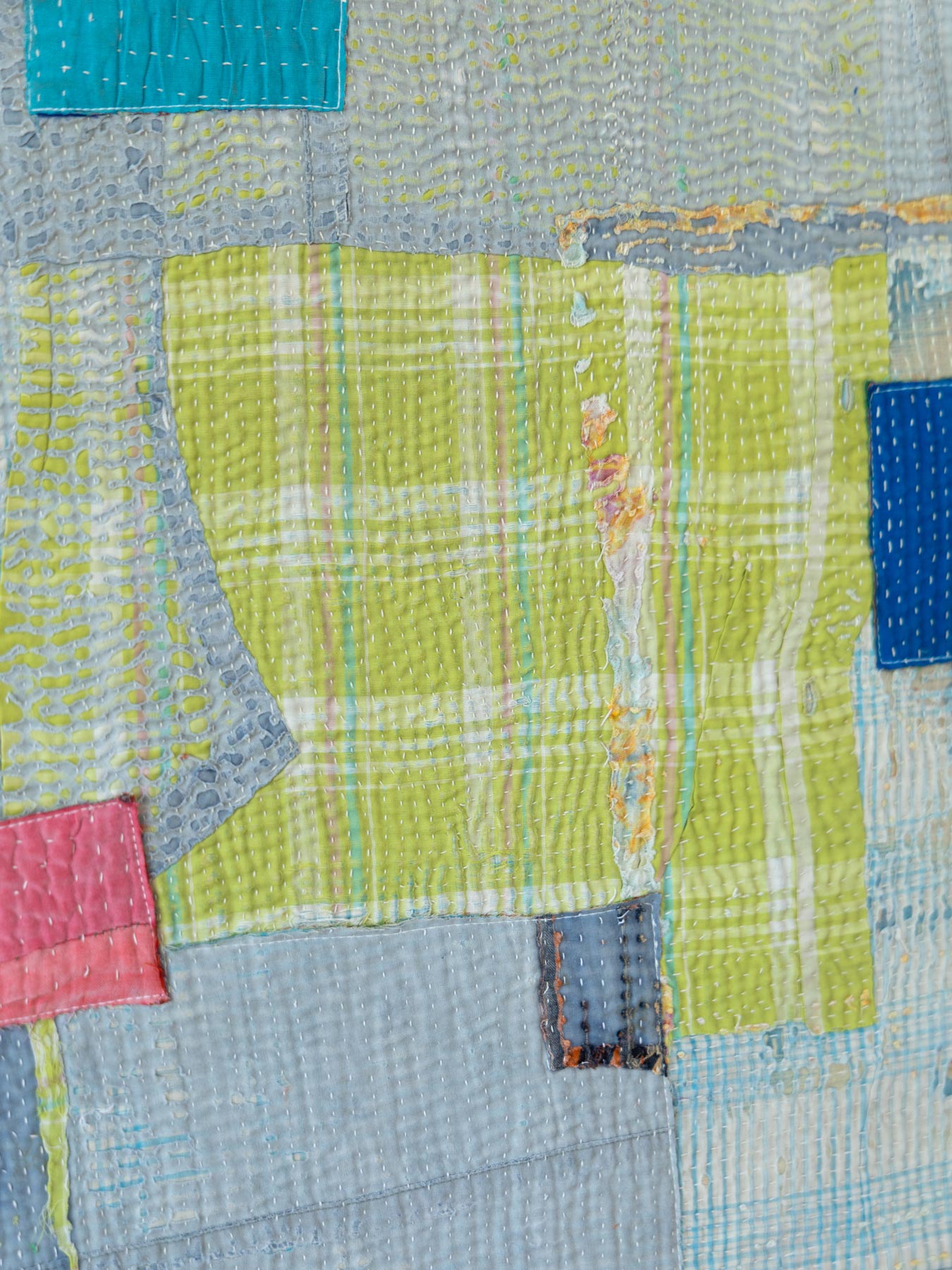 何枚もの布を重ねてキルティングされたカンタは、長い年月の使用により自然にほつれ、内側の生地の色が現れたり、何度も洗われることで独特のカラーへと変化していきます。人工的には決して再現できない、時間だけが作り出す色や風合いがあります。