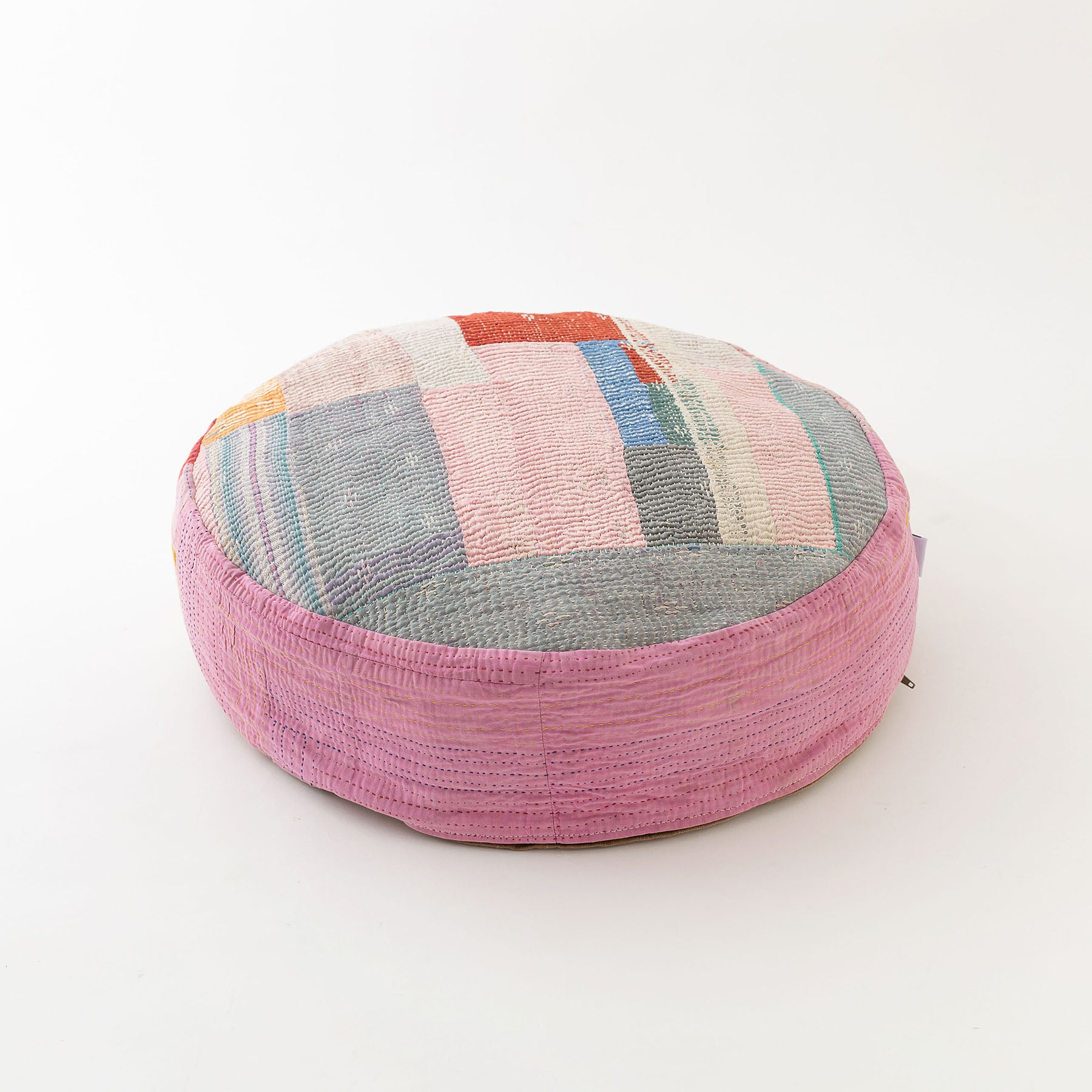 パッチワークしているので、角度によっていろんな色や表情を楽しむことができます。インド人の職人による刺し子は、人によって個性が出るのも魅力です。
