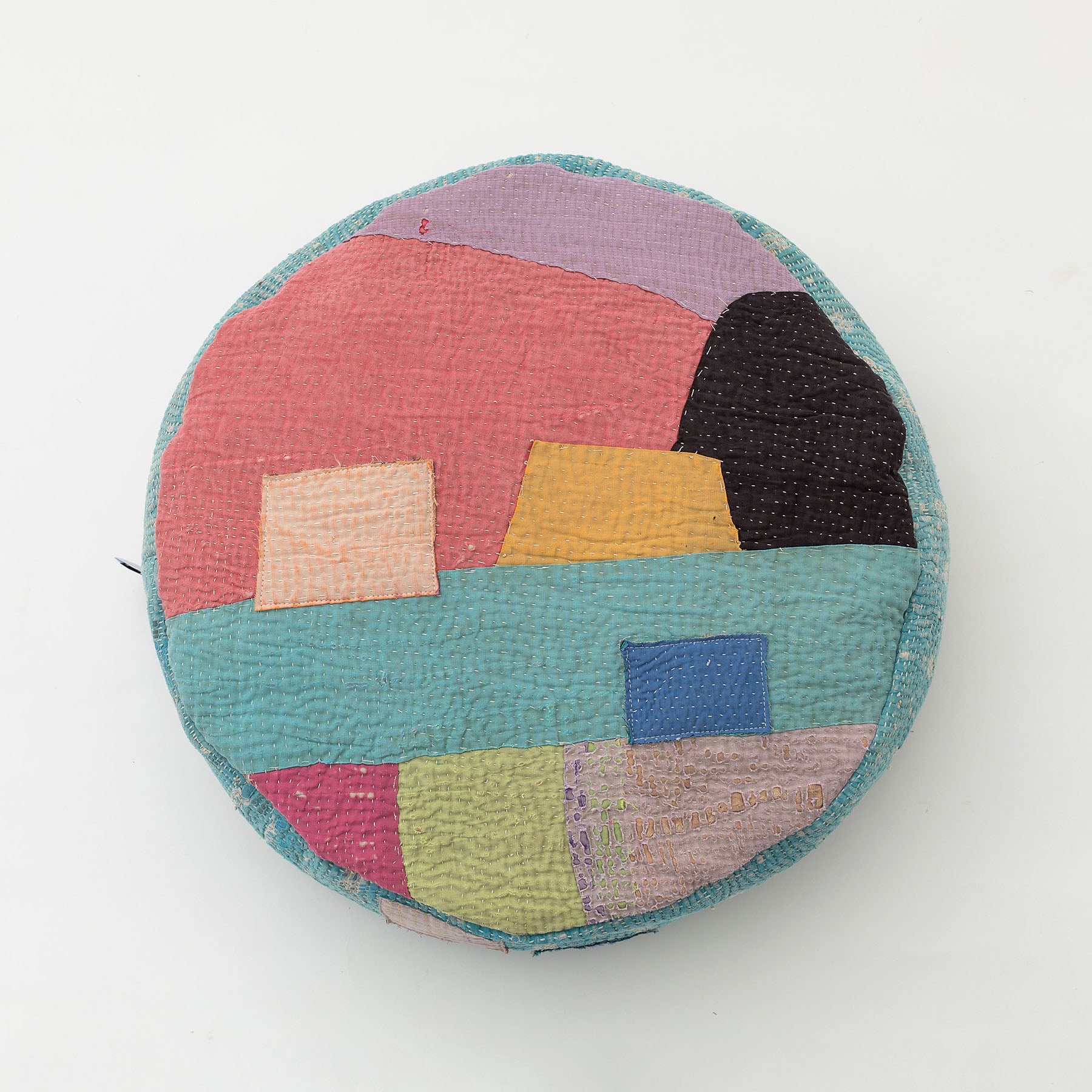 手仕事の布にさらに手を掛けてできあがったプフは、世界にひとつだけの貴重な一点もの。この機会にぜひ、お迎えしてみませんか?