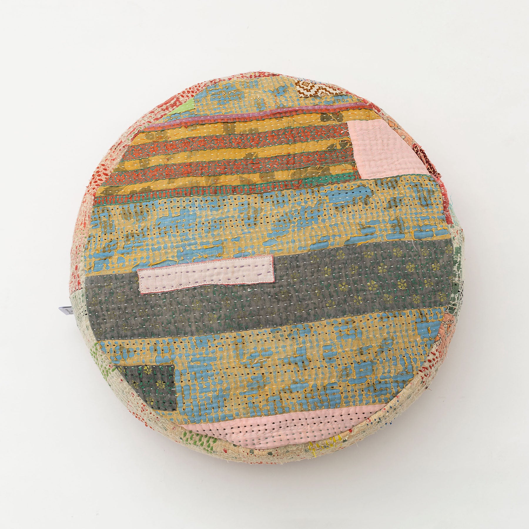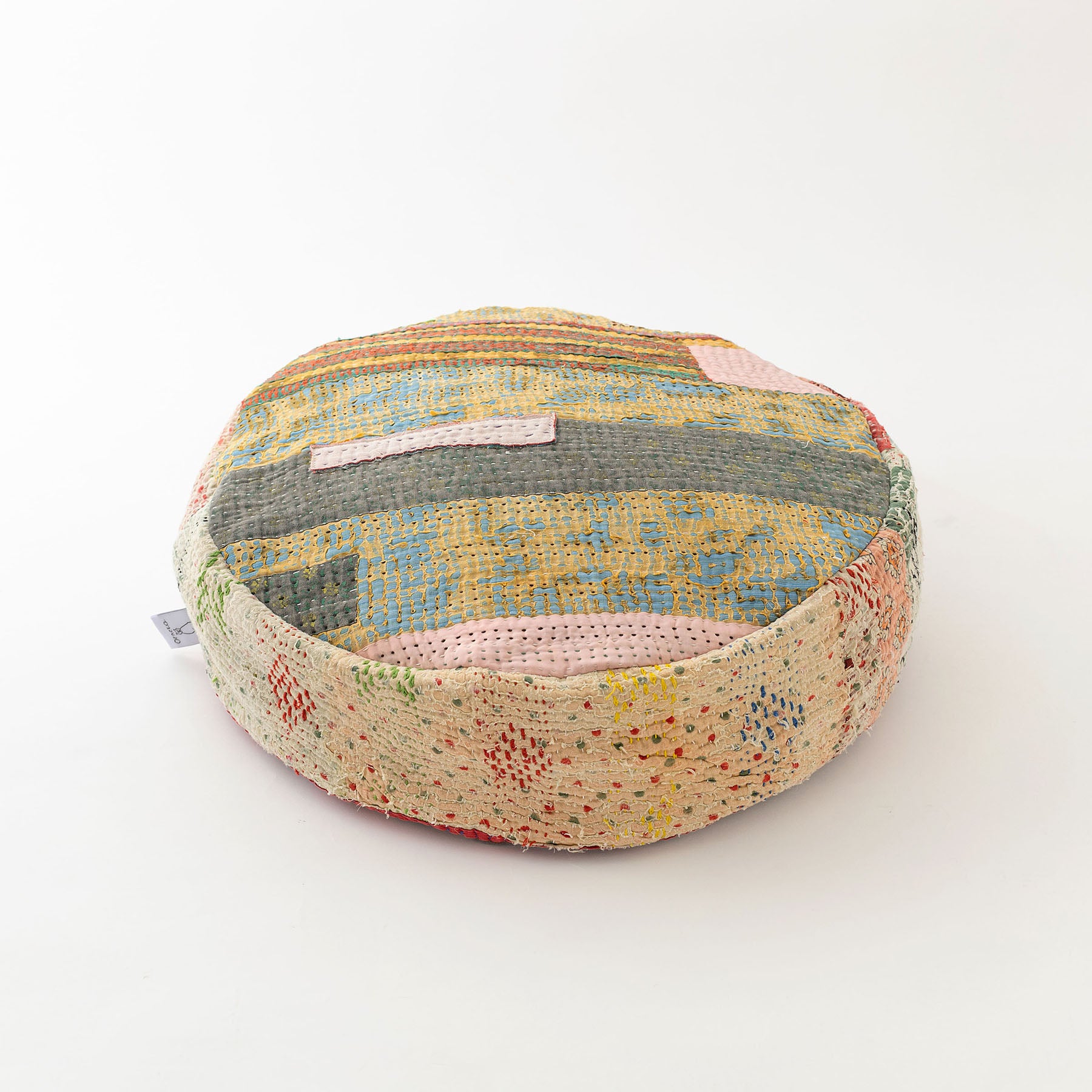 手仕事の布にさらに手を掛けてできあがったプフは、世界にひとつだけの貴重な一点もの。この機会にぜひ、お迎えしてみませんか?