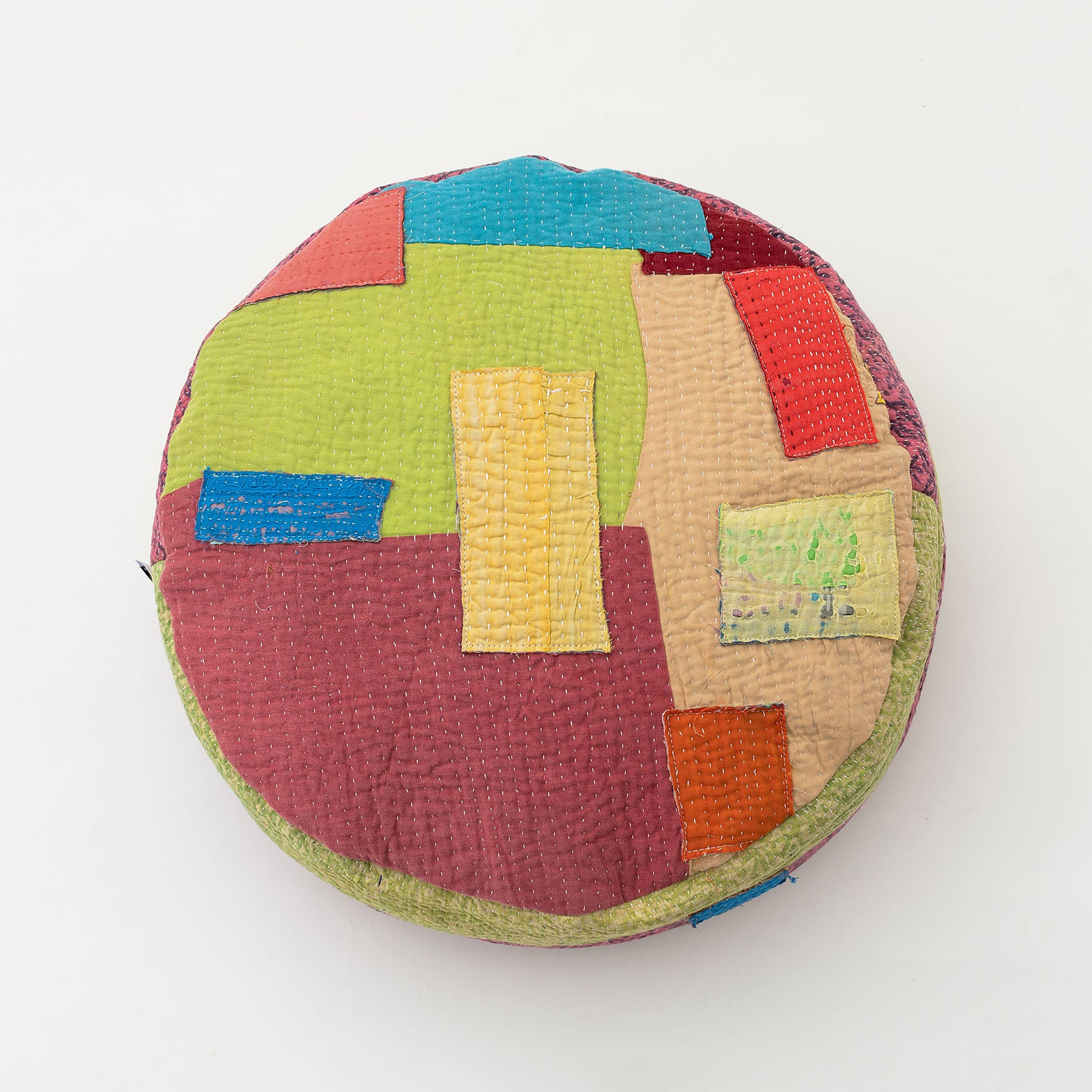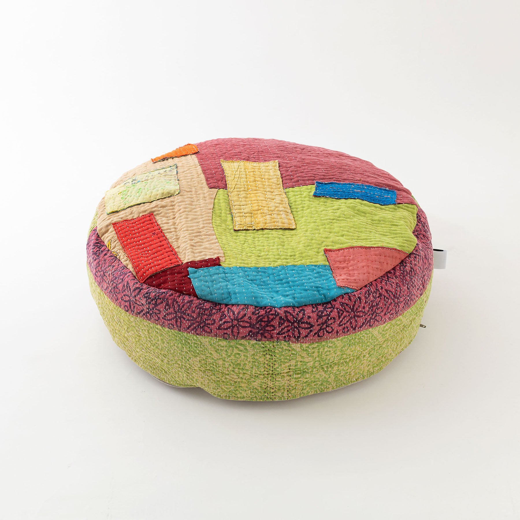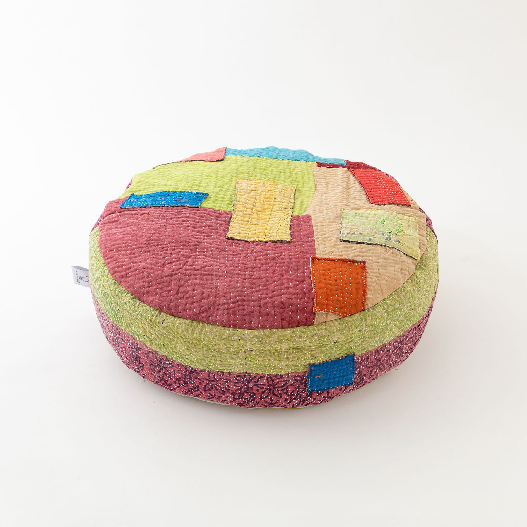 手仕事の布にさらに手を掛けてできあがったプフは、世界にひとつだけの貴重な一点もの。この機会にぜひ、お迎えしてみませんか?