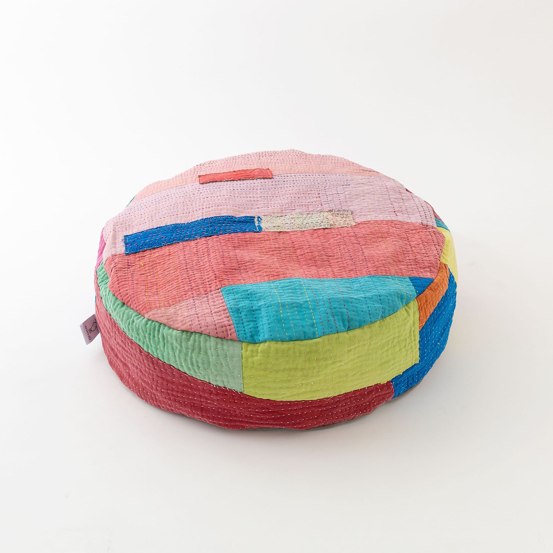 手仕事の布にさらに手を掛けてできあがったプフは、世界にひとつだけの貴重な一点もの。この機会にぜひ、お迎えしてみませんか?