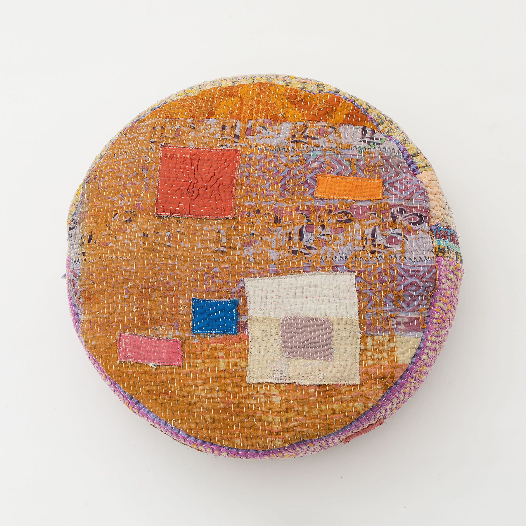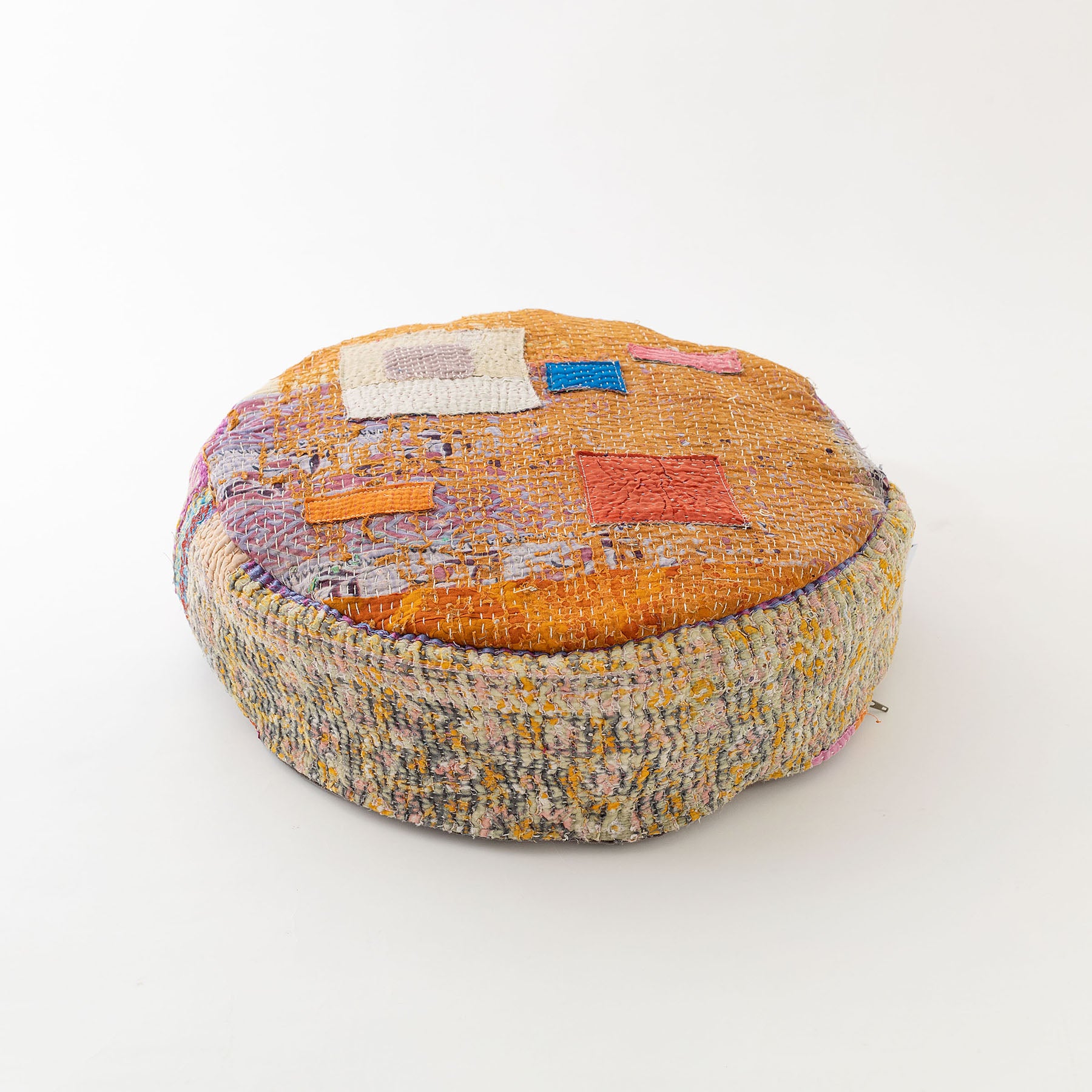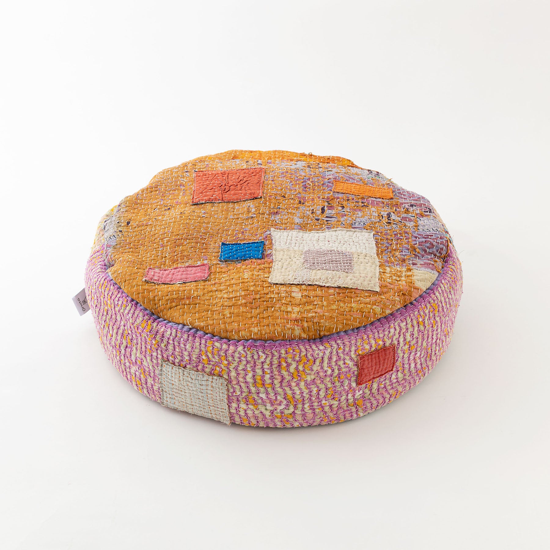手仕事の布にさらに手を掛けてできあがったプフは、世界にひとつだけの貴重な一点もの。この機会にぜひ、お迎えしてみませんか?