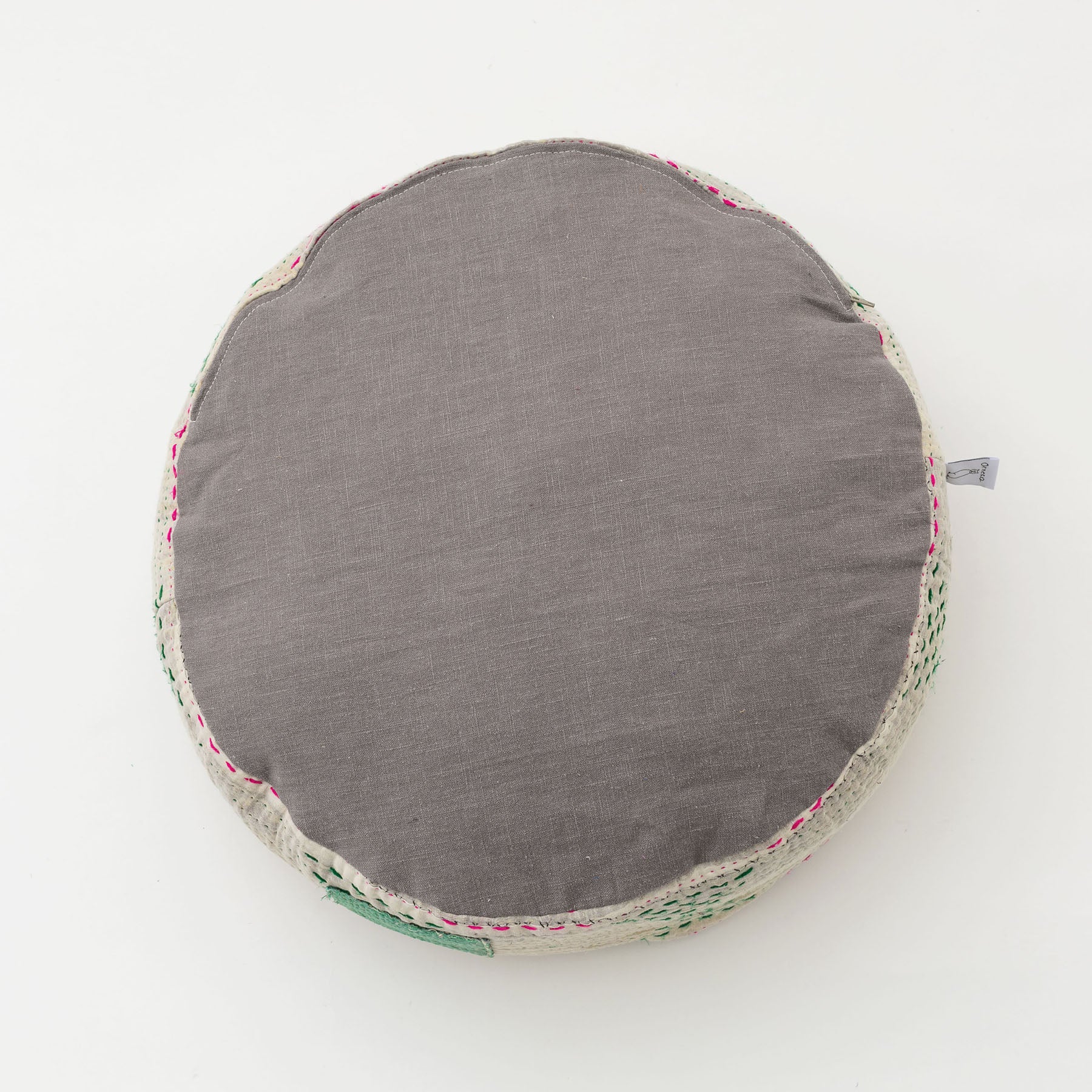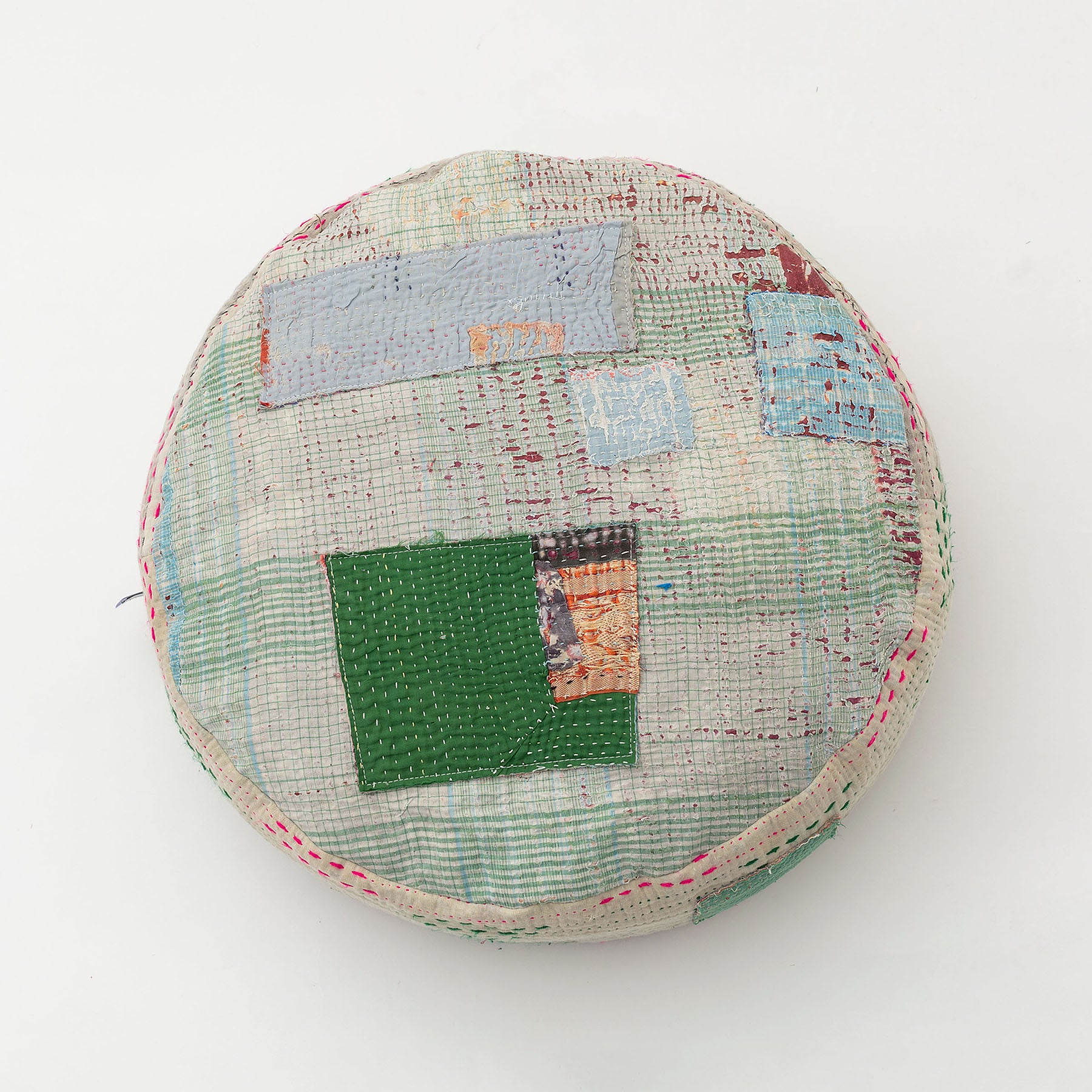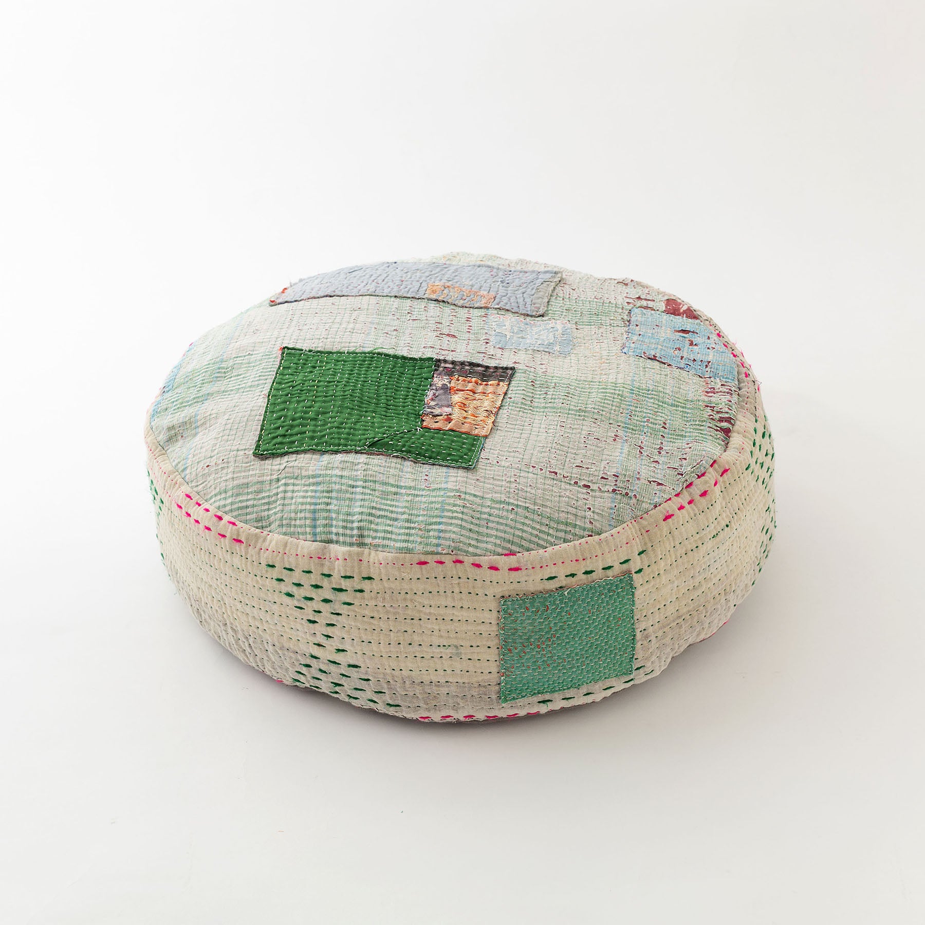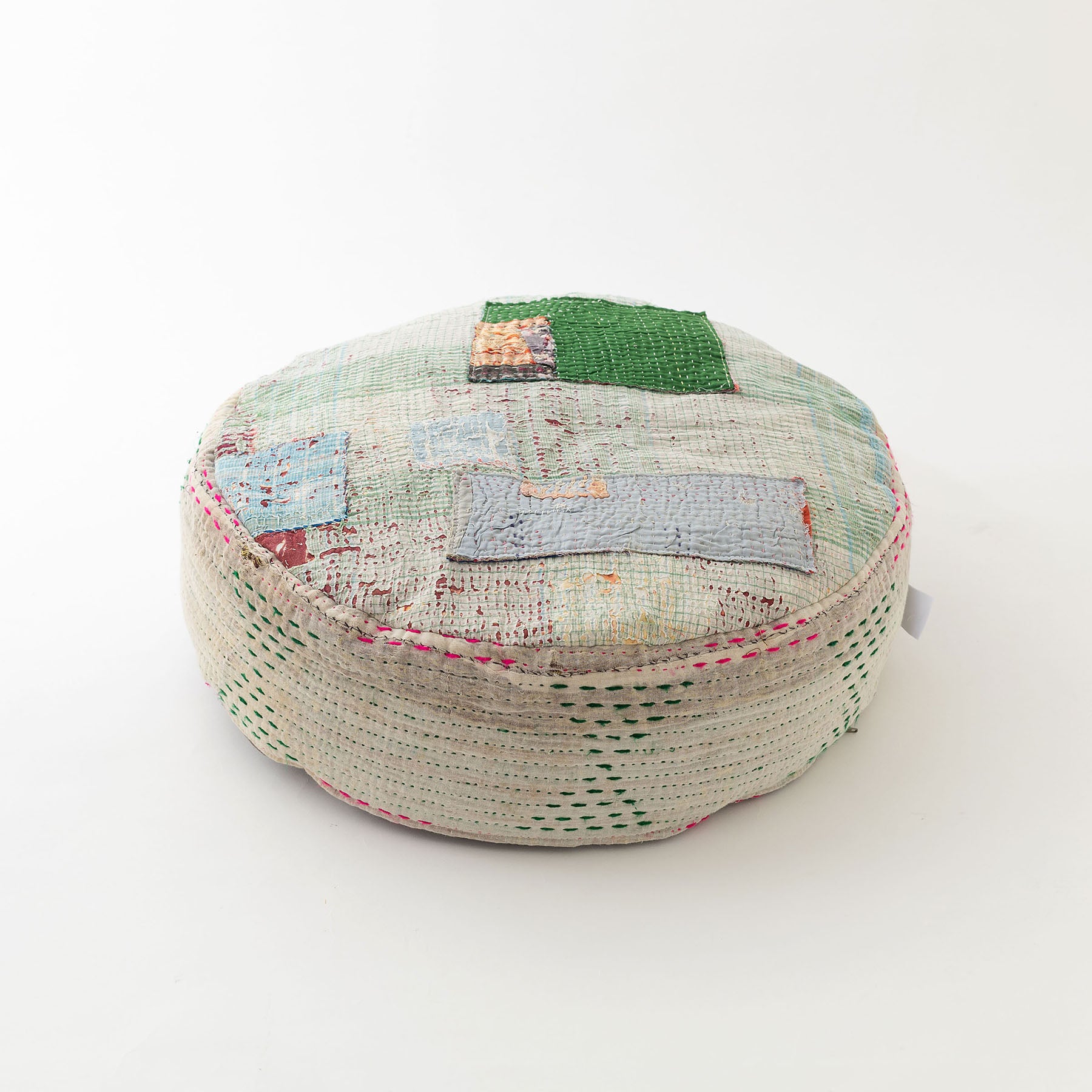 手仕事の布にさらに手を掛けてできあがったプフは、世界にひとつだけの貴重な一点もの。この機会にぜひ、お迎えしてみませんか?