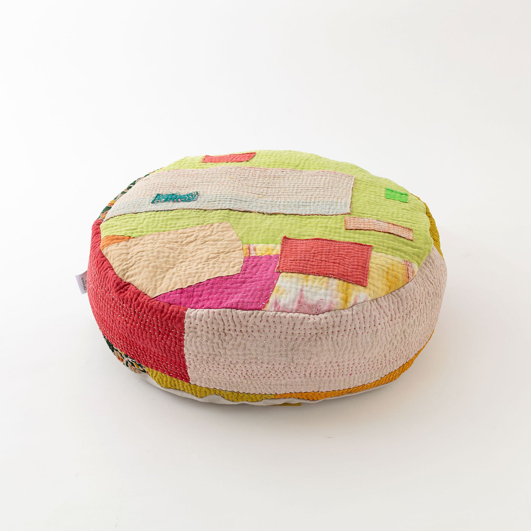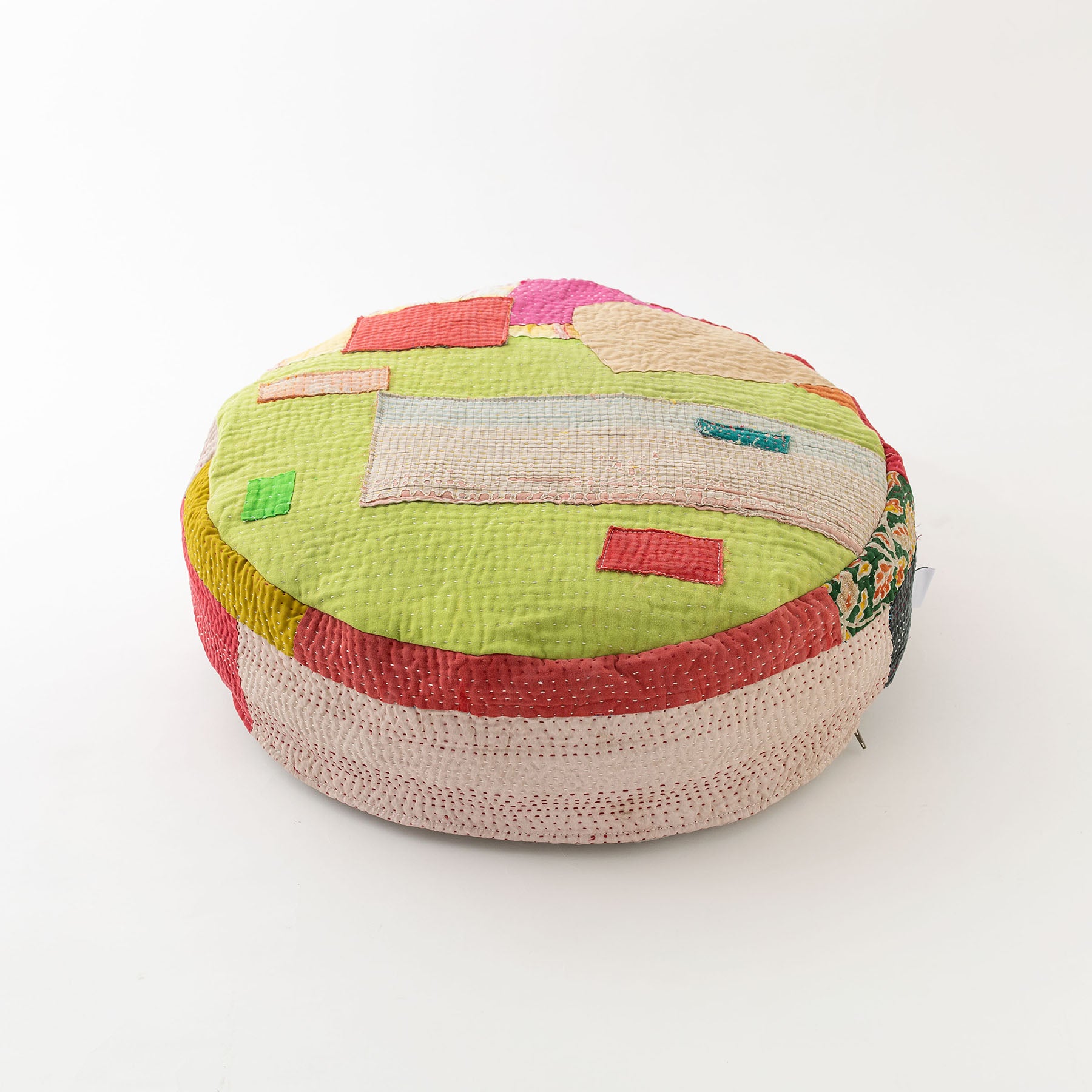 手仕事の布にさらに手を掛けてできあがったプフは、世界にひとつだけの貴重な一点もの。この機会にぜひ、お迎えしてみませんか?