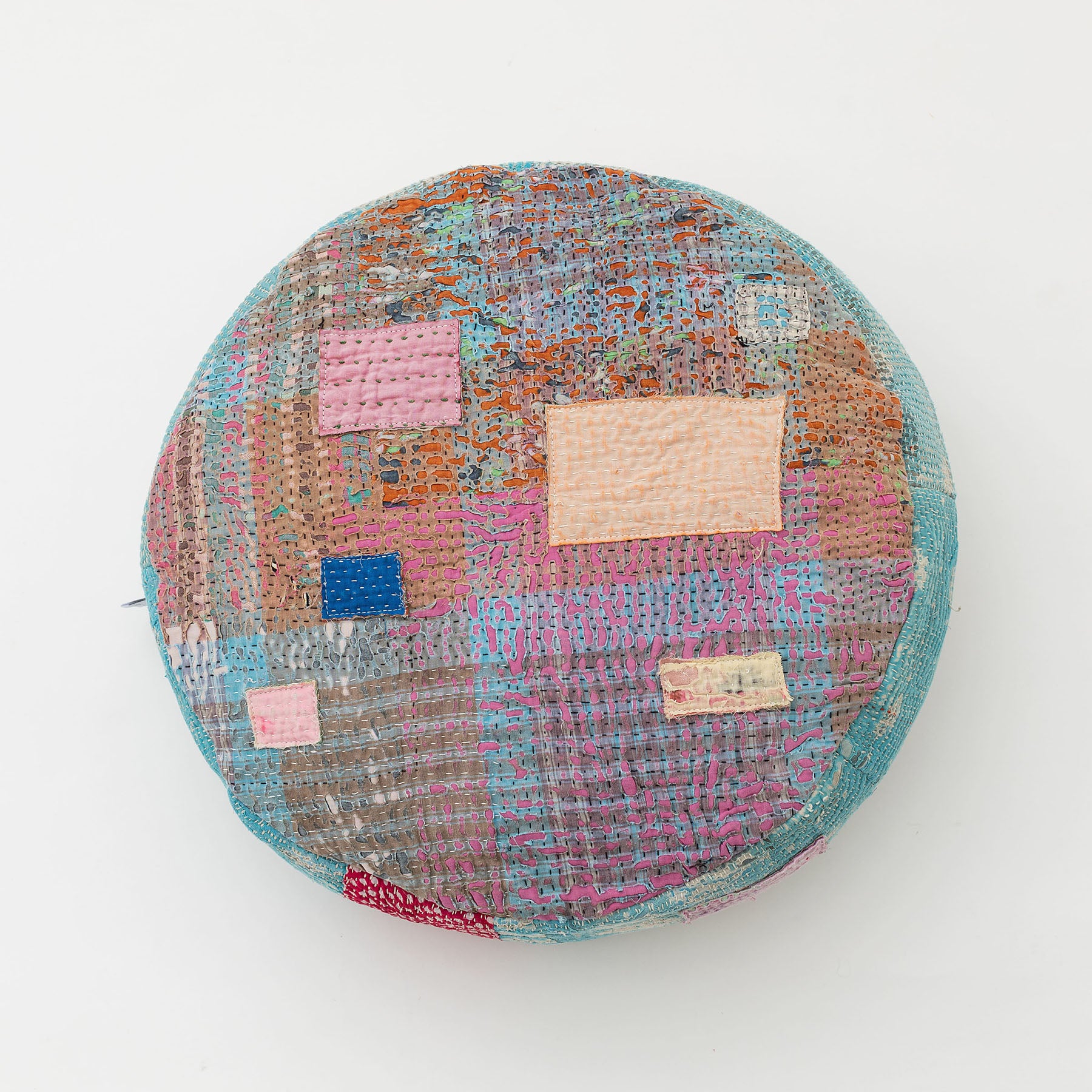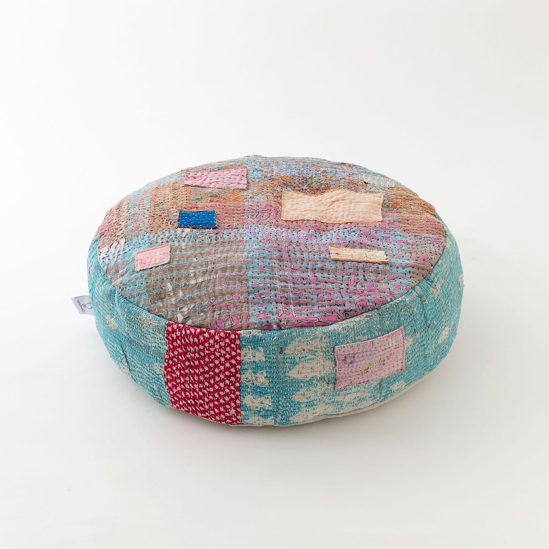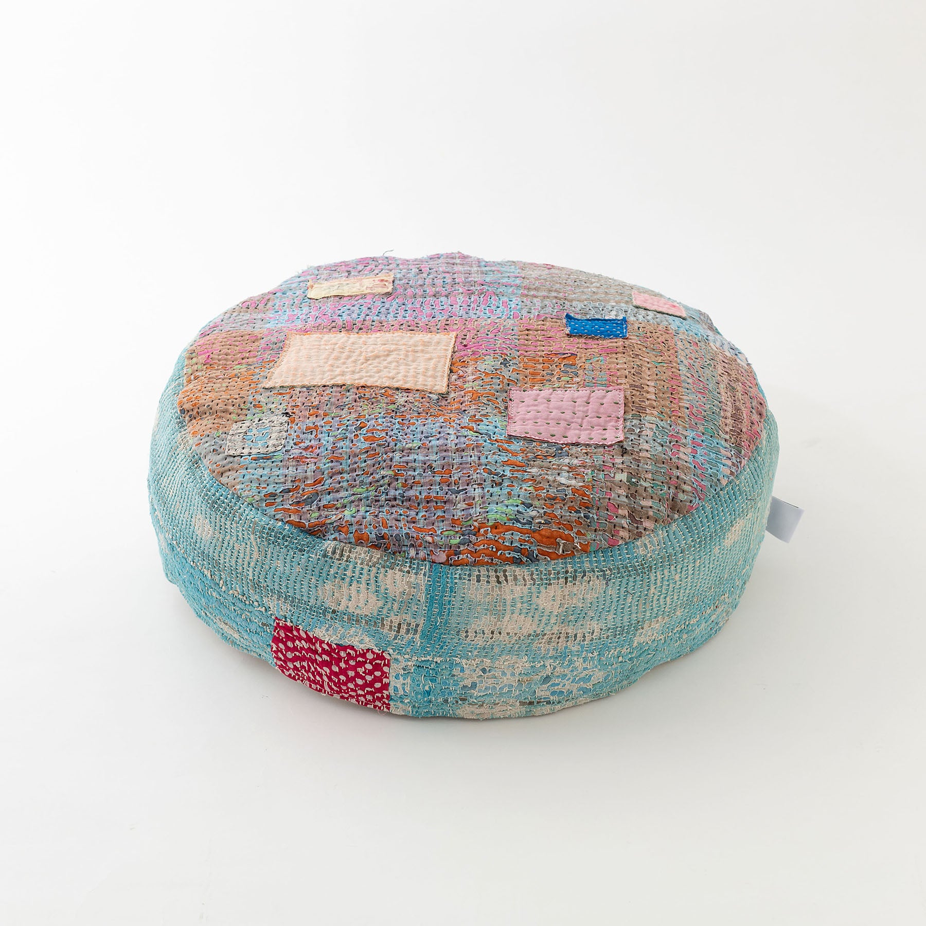 手仕事の布にさらに手を掛けてできあがったプフは、世界にひとつだけの貴重な一点もの。この機会にぜひ、お迎えしてみませんか?