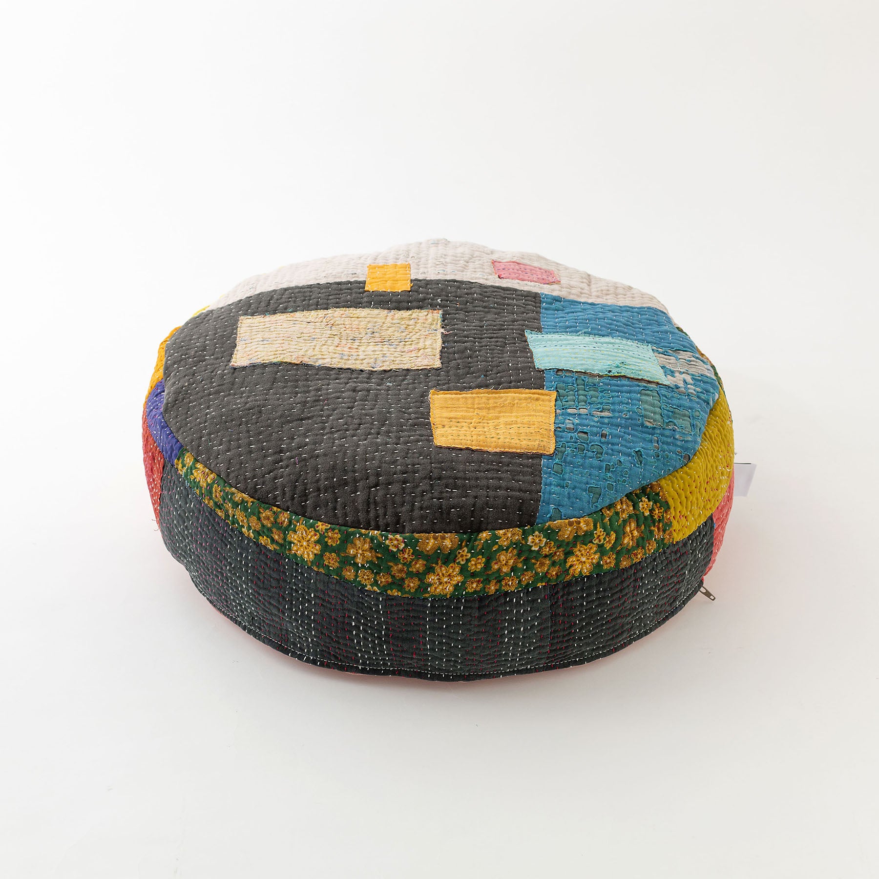 手仕事の布にさらに手を掛けてできあがったプフは、世界にひとつだけの貴重な一点もの。この機会にぜひ、お迎えしてみませんか?