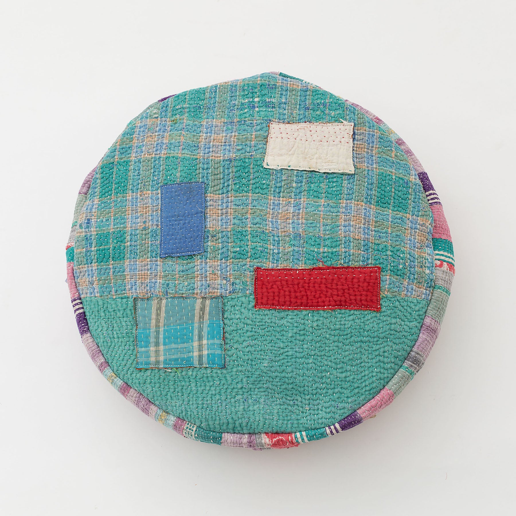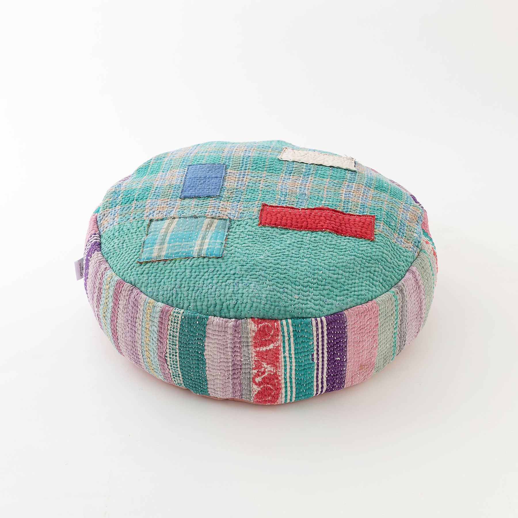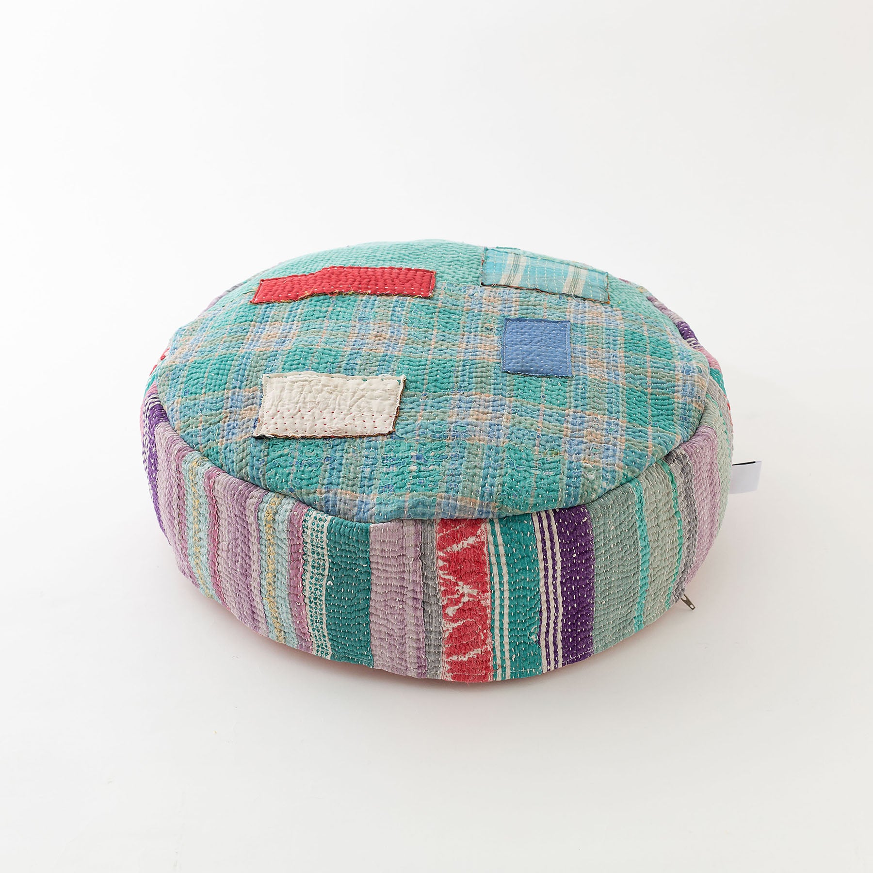 手仕事の布にさらに手を掛けてできあがったプフは、世界にひとつだけの貴重な一点もの。この機会にぜひ、お迎えしてみませんか?