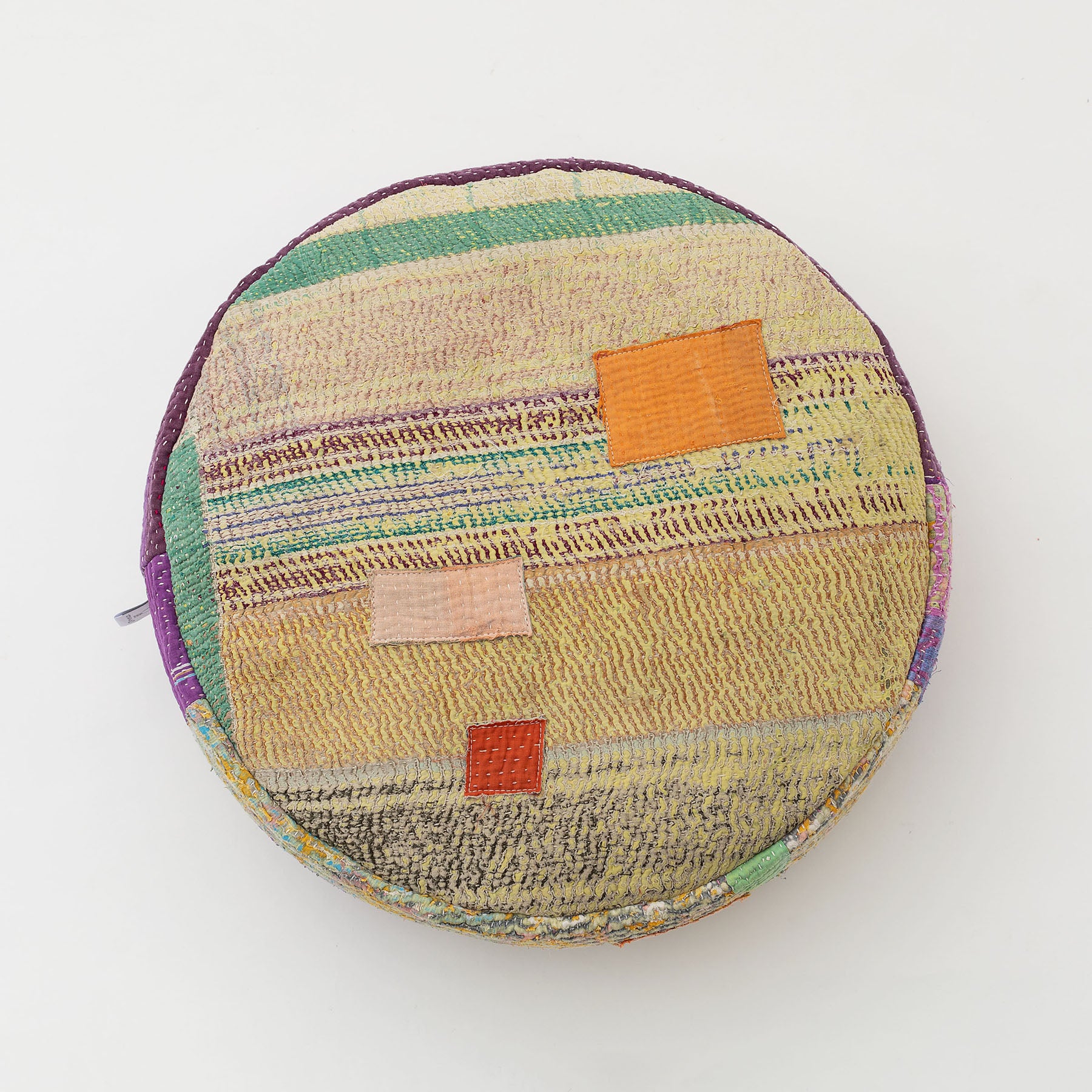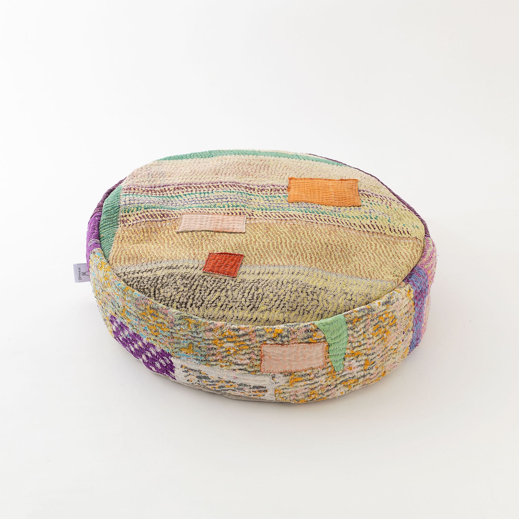 手仕事の布にさらに手を掛けてできあがったプフは、世界にひとつだけの貴重な一点もの。この機会にぜひ、お迎えしてみませんか?