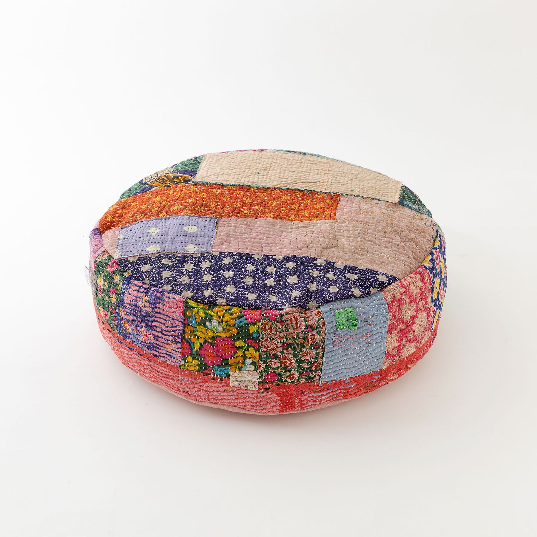 手仕事の布にさらに手を掛けてできあがったプフは、世界にひとつだけの貴重な一点もの。この機会にぜひ、お迎えしてみませんか?