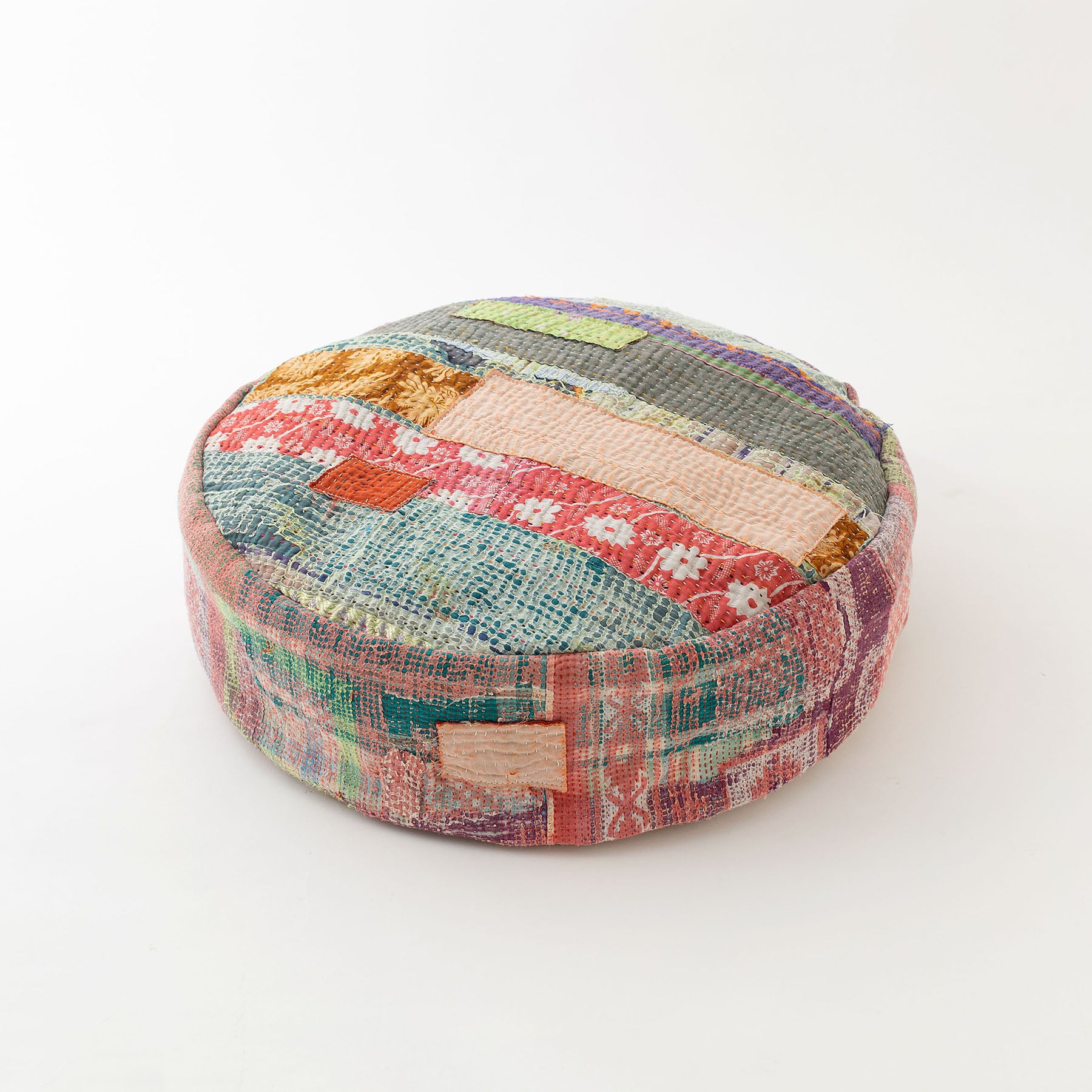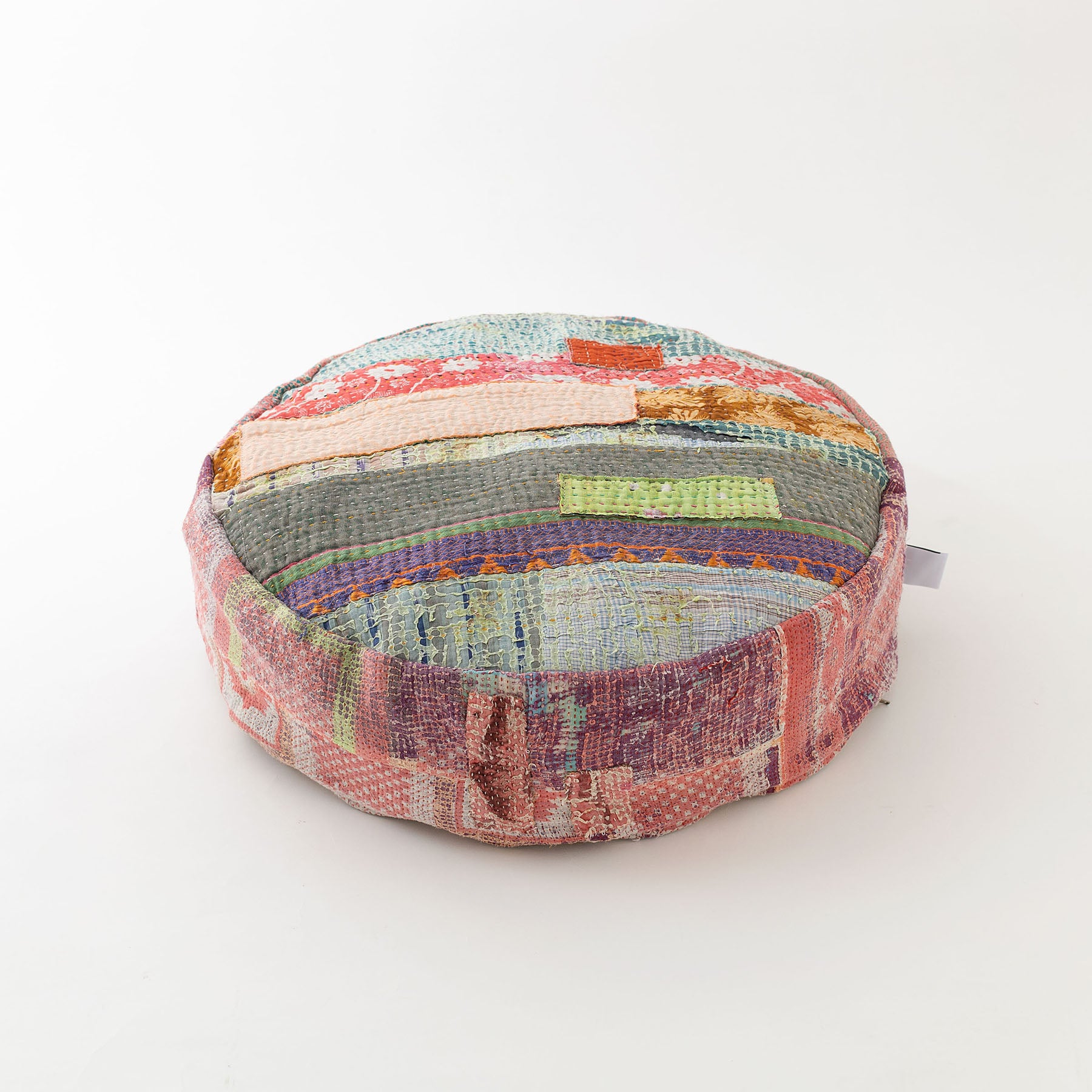 手仕事の布にさらに手を掛けてできあがったプフは、世界にひとつだけの貴重な一点もの。この機会にぜひ、お迎えしてみませんか?