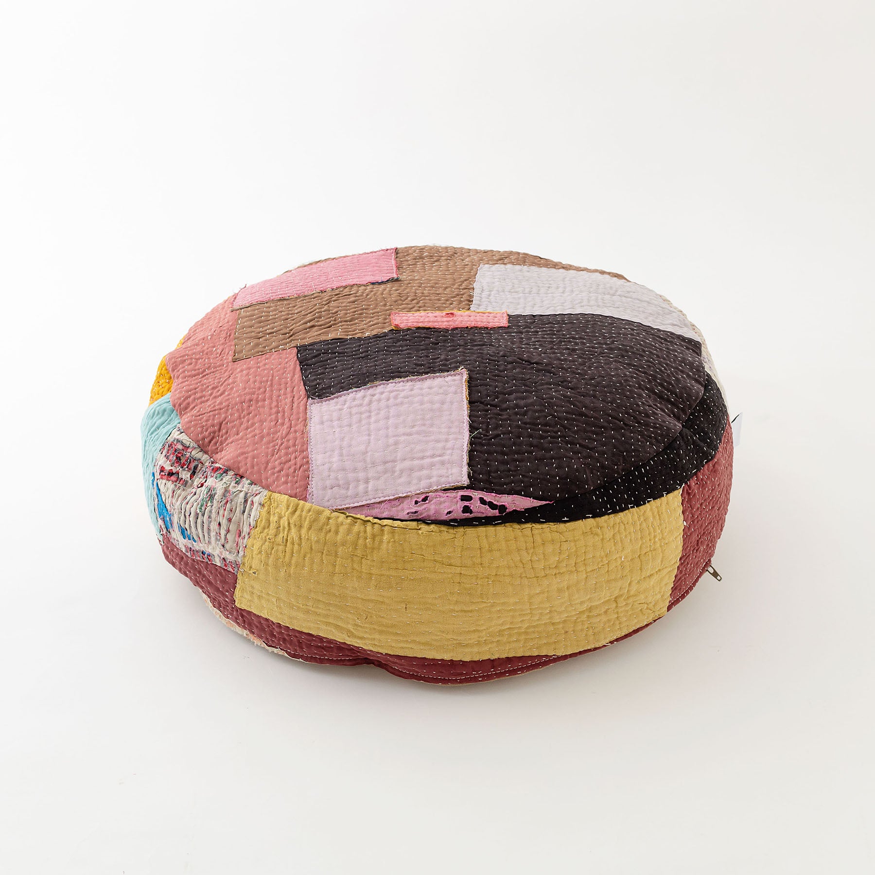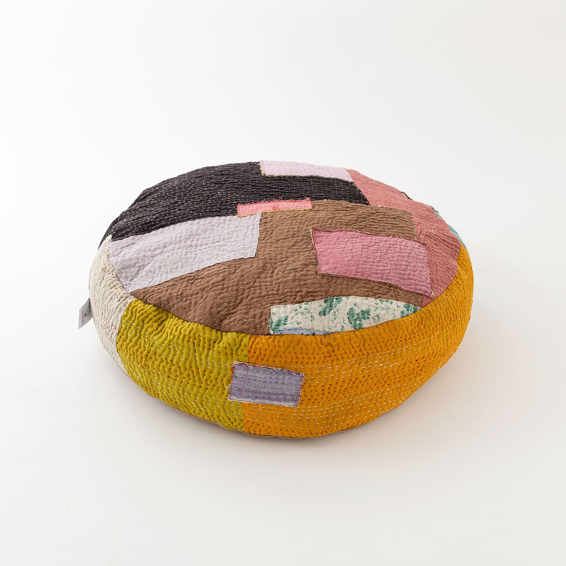 手仕事の布にさらに手を掛けてできあがったプフは、世界にひとつだけの貴重な一点もの。この機会にぜひ、お迎えしてみませんか?
