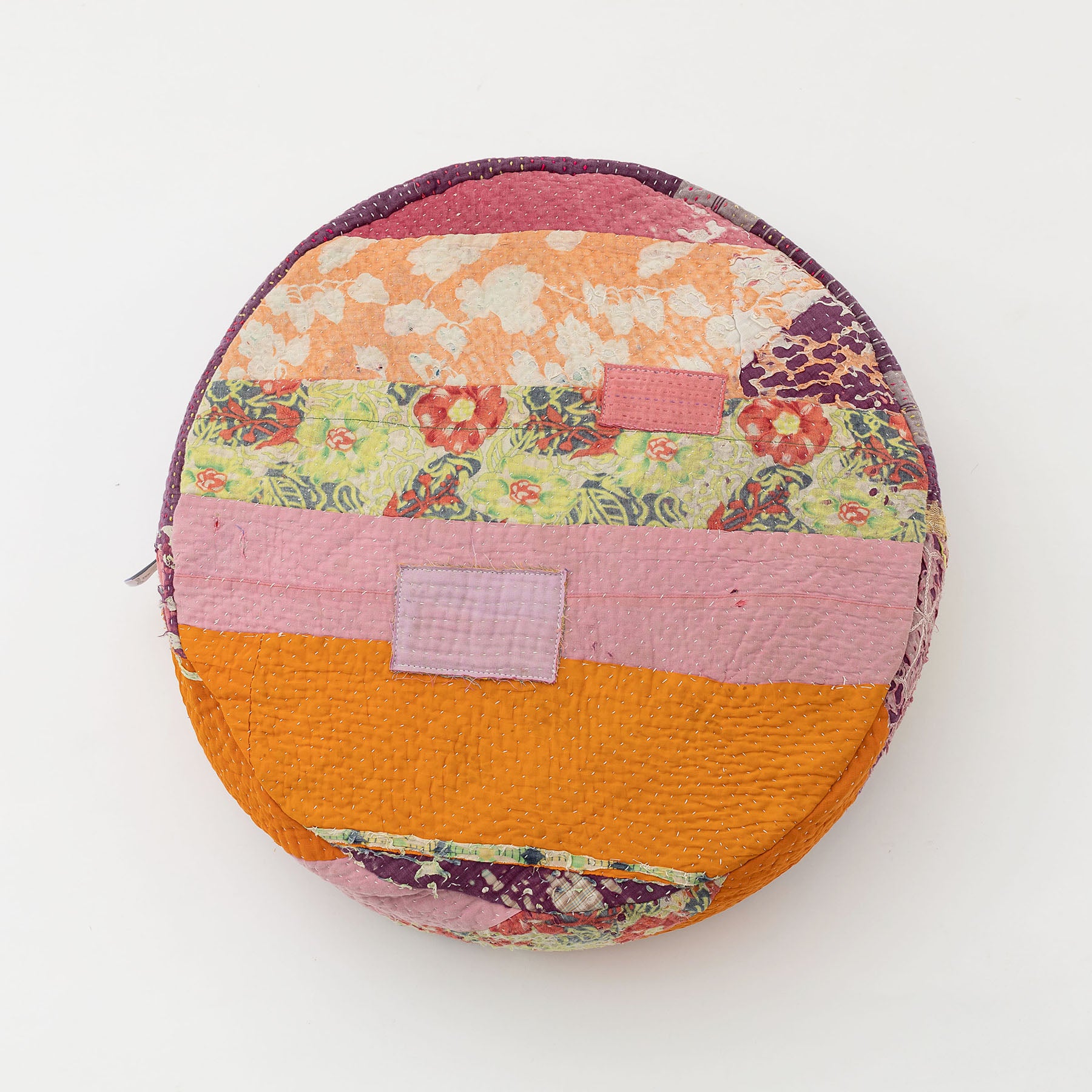 手仕事の布にさらに手を掛けてできあがったプフは、世界にひとつだけの貴重な一点もの。この機会にぜひ、お迎えしてみませんか?