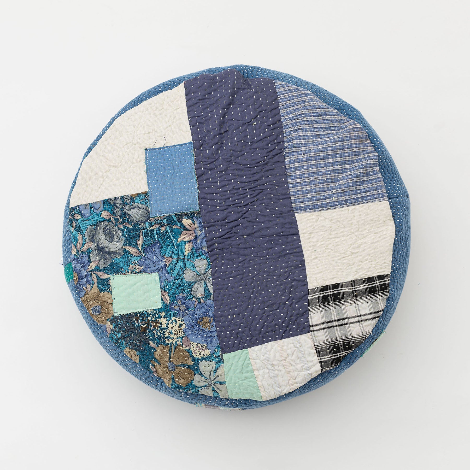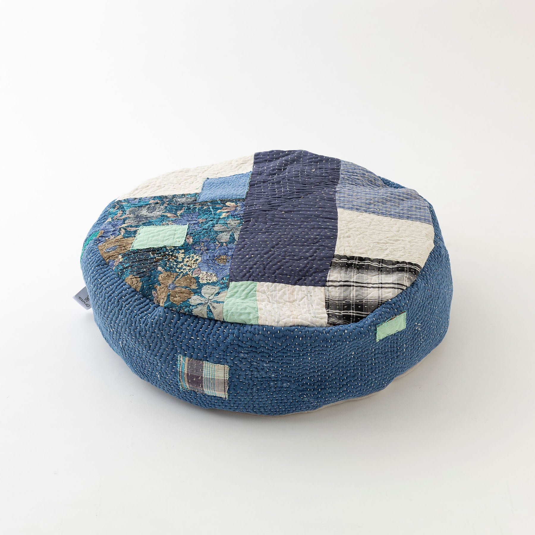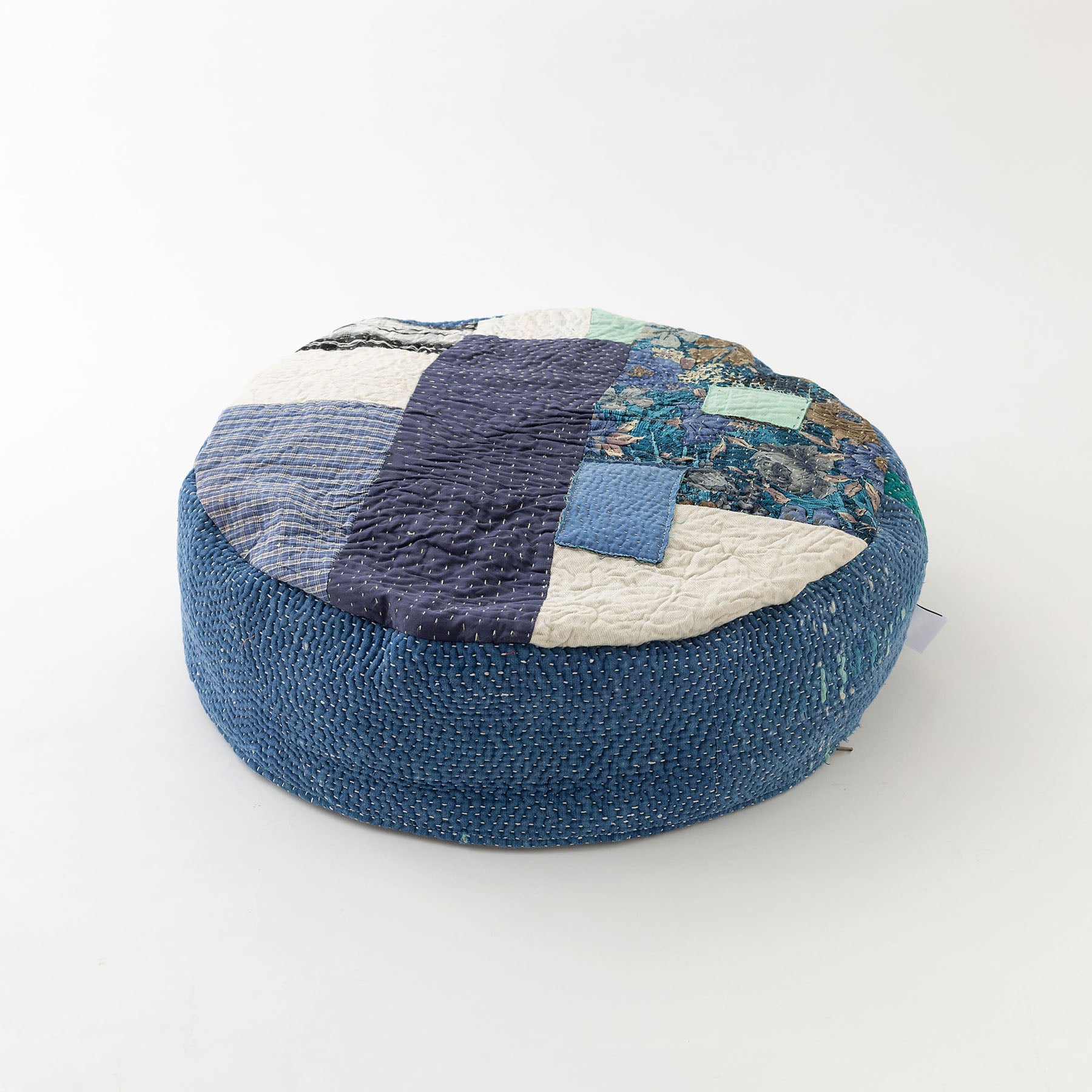 手仕事の布にさらに手を掛けてできあがったプフは、世界にひとつだけの貴重な一点もの。この機会にぜひ、お迎えしてみませんか?