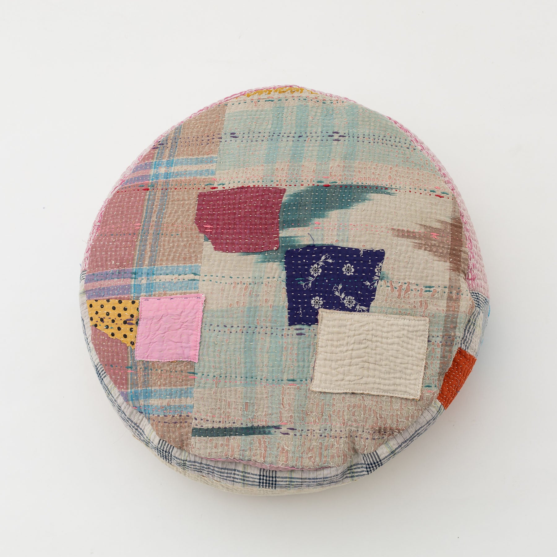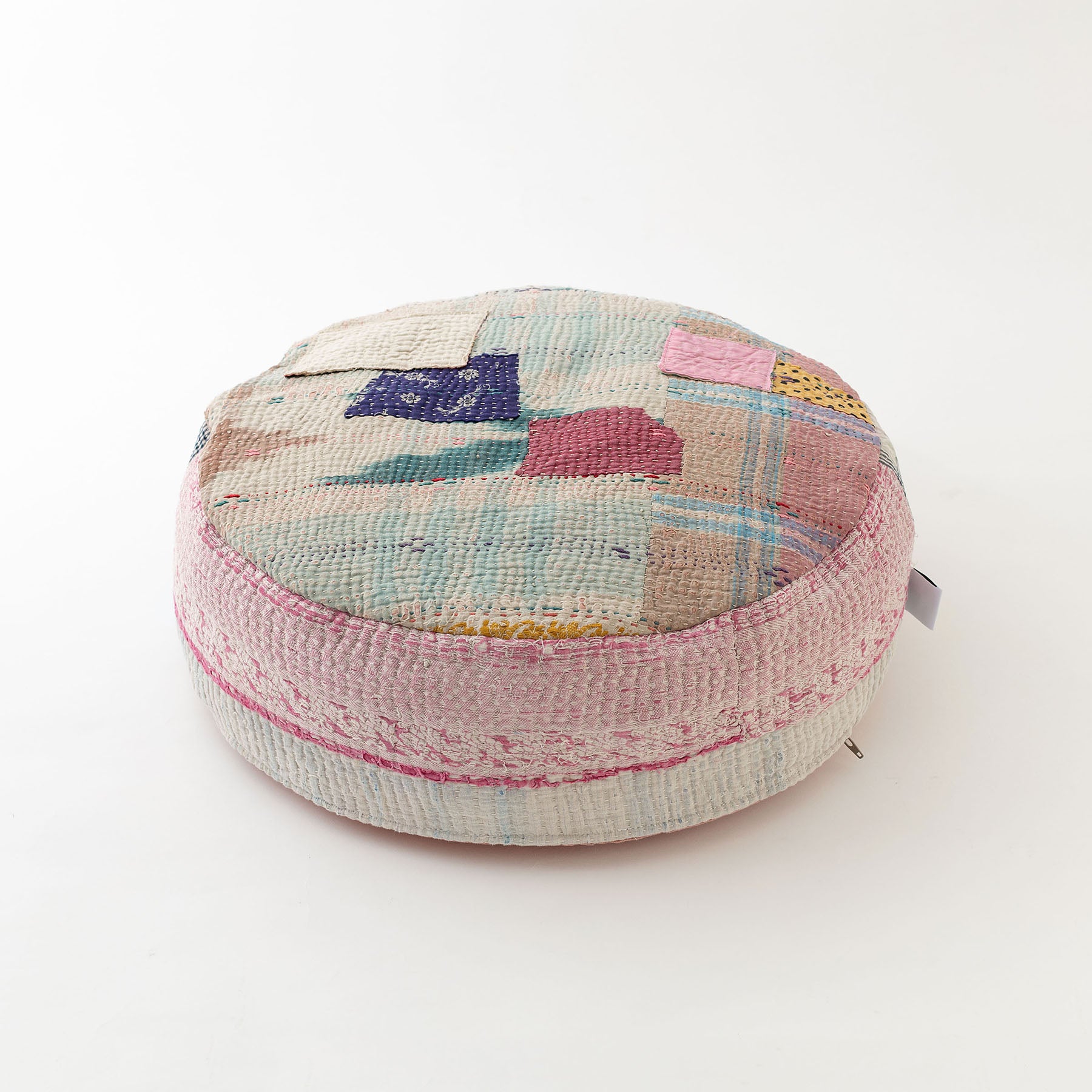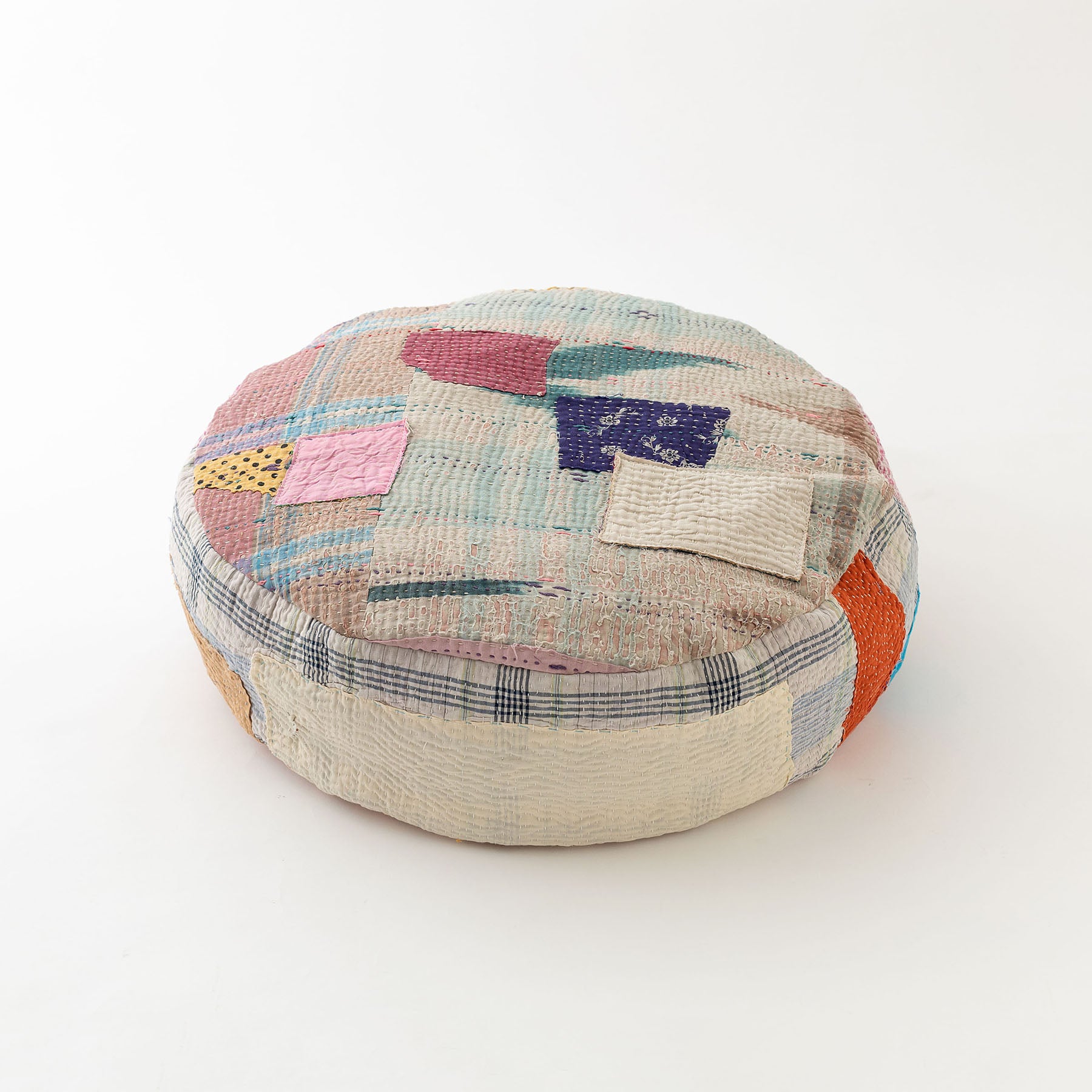 手仕事の布にさらに手を掛けてできあがったプフは、世界にひとつだけの貴重な一点もの。この機会にぜひ、お迎えしてみませんか?