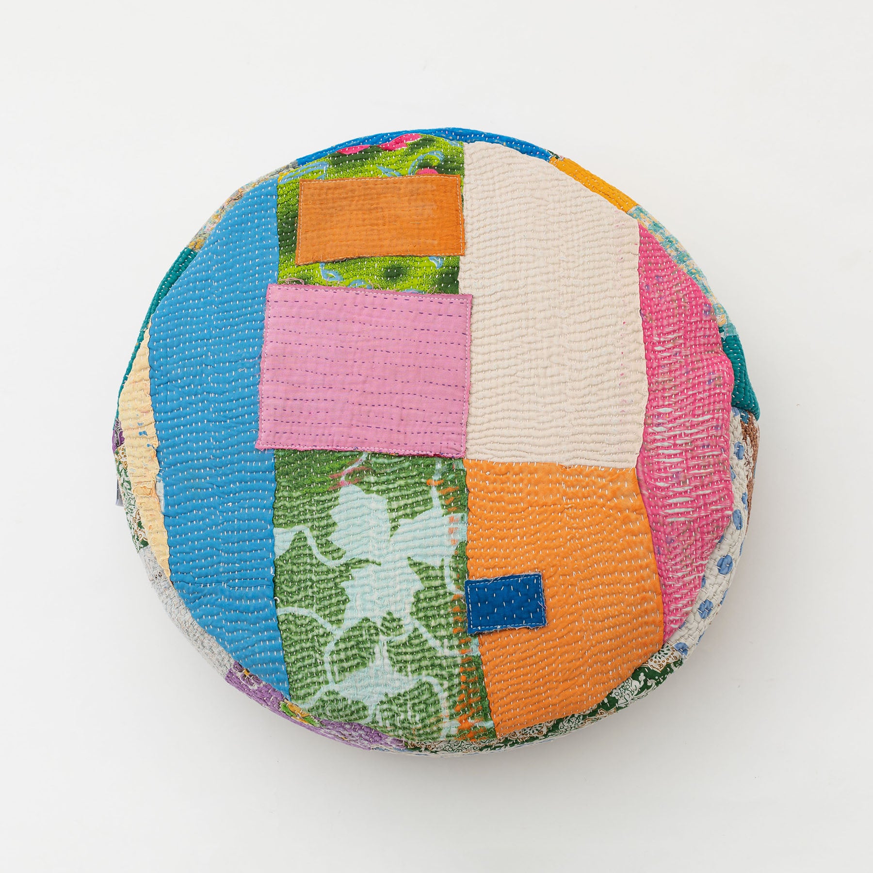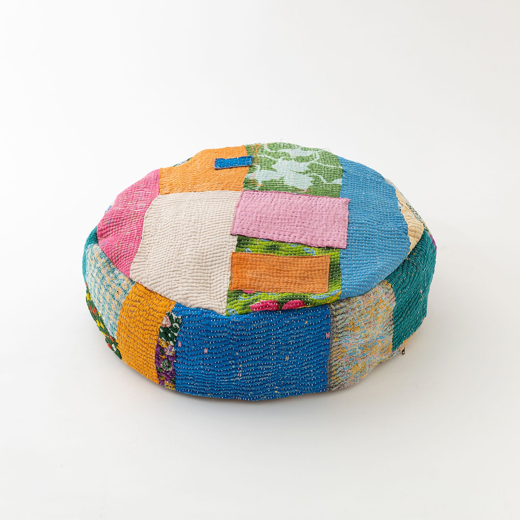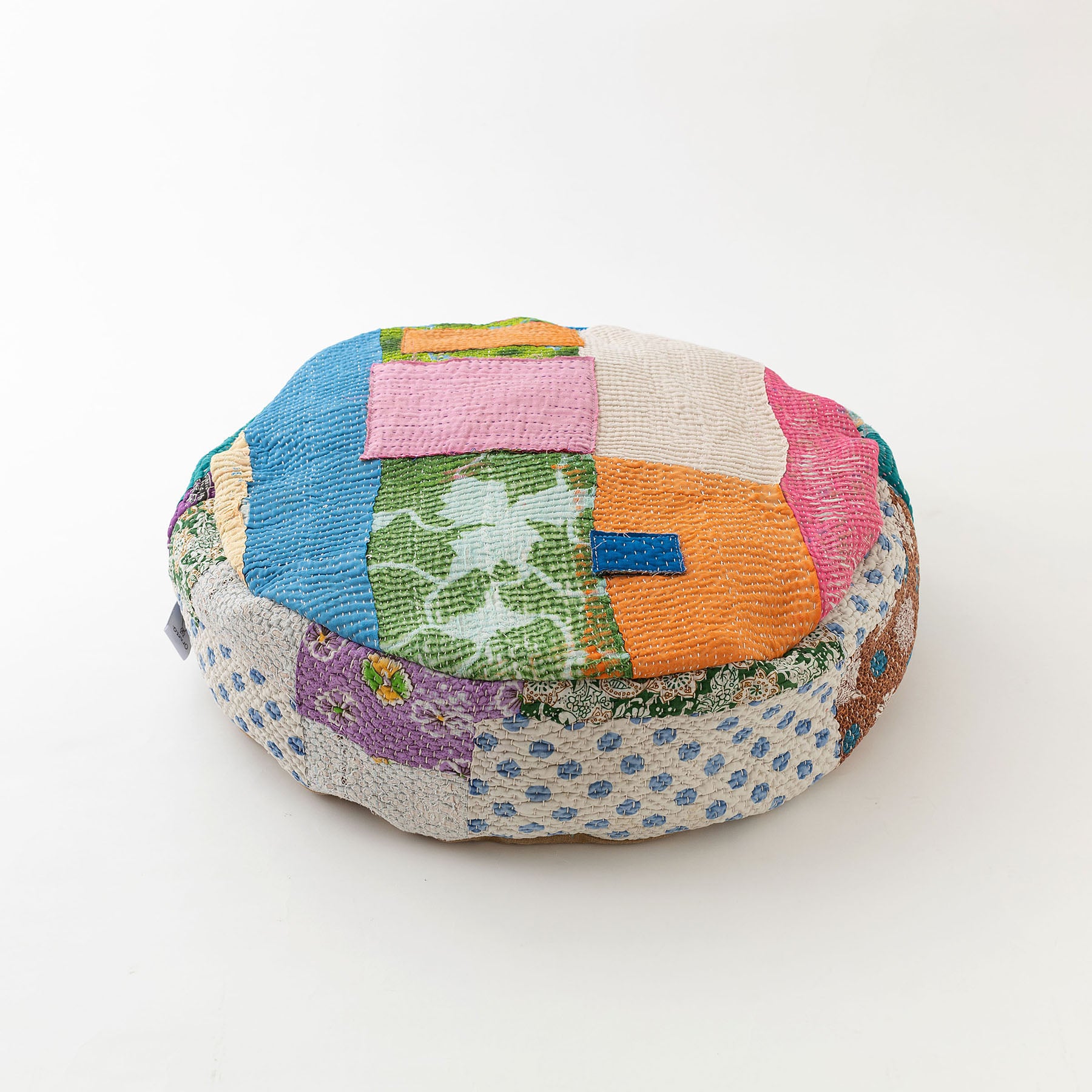 手仕事の布にさらに手を掛けてできあがったプフは、世界にひとつだけの貴重な一点もの。この機会にぜひ、お迎えしてみませんか?