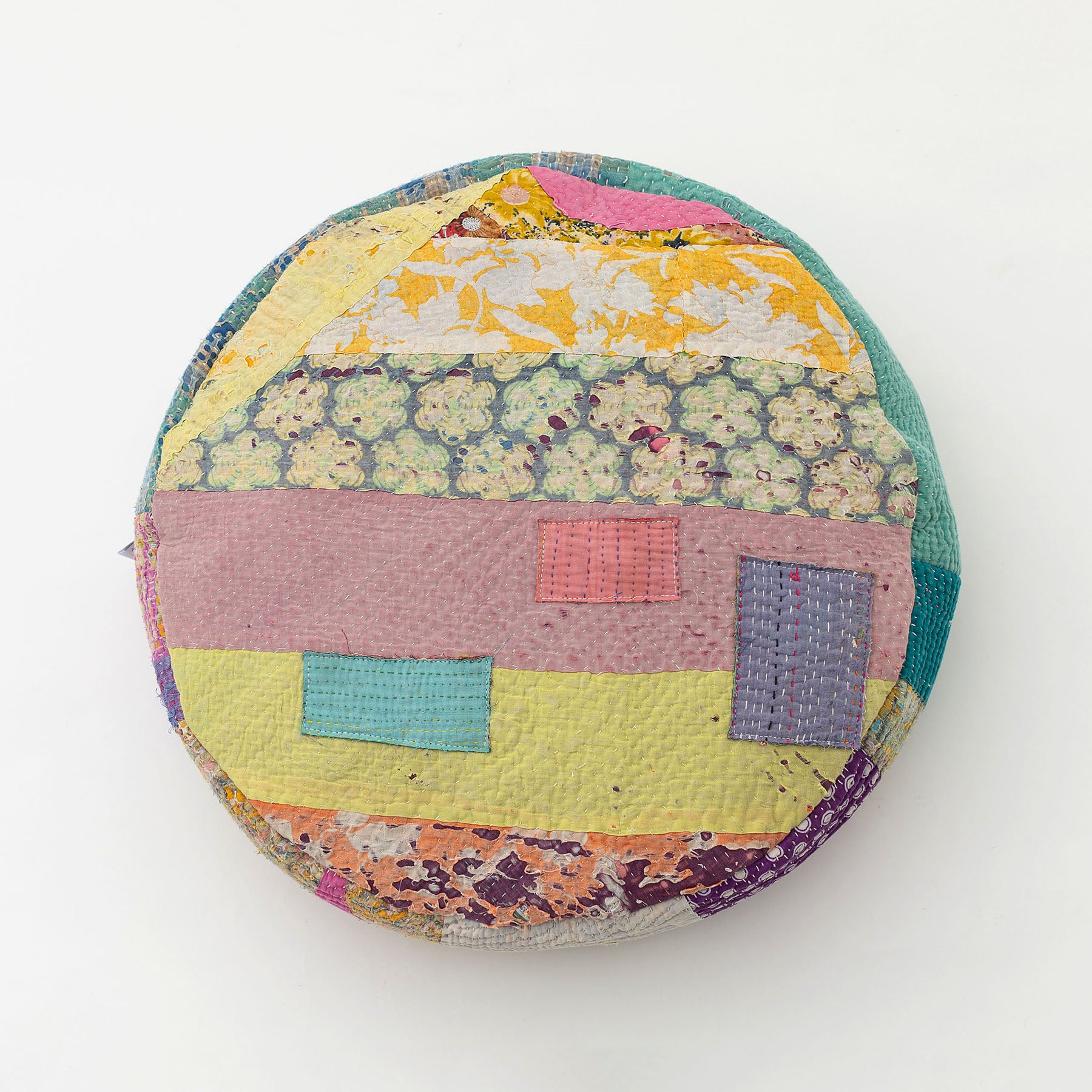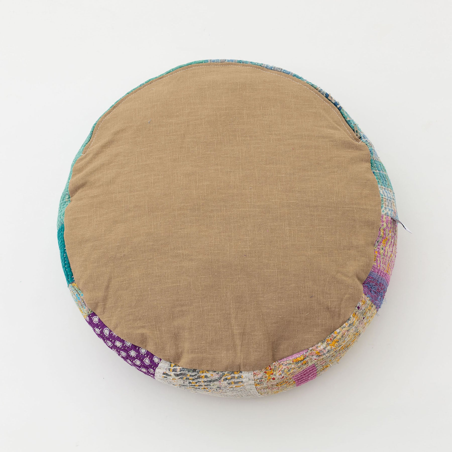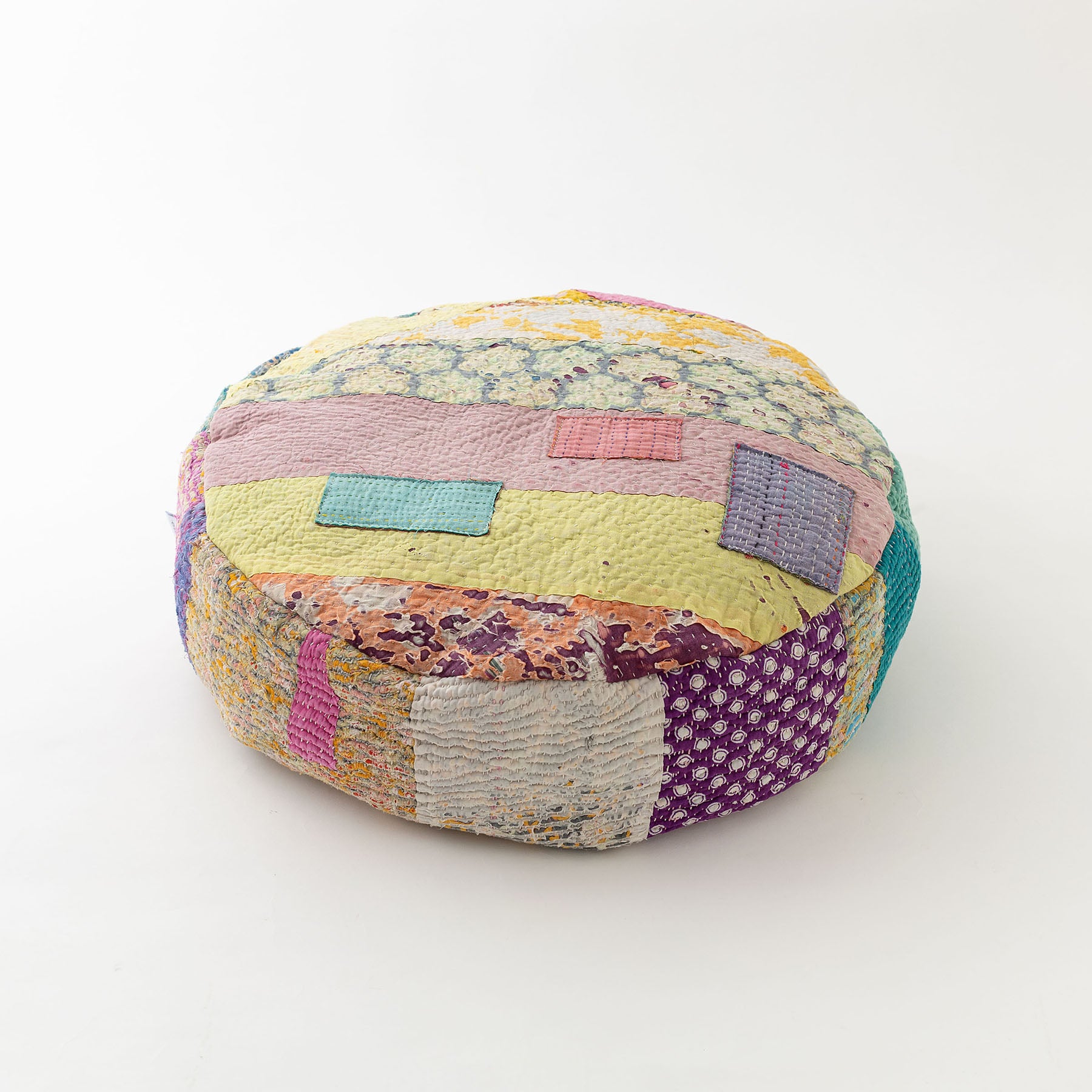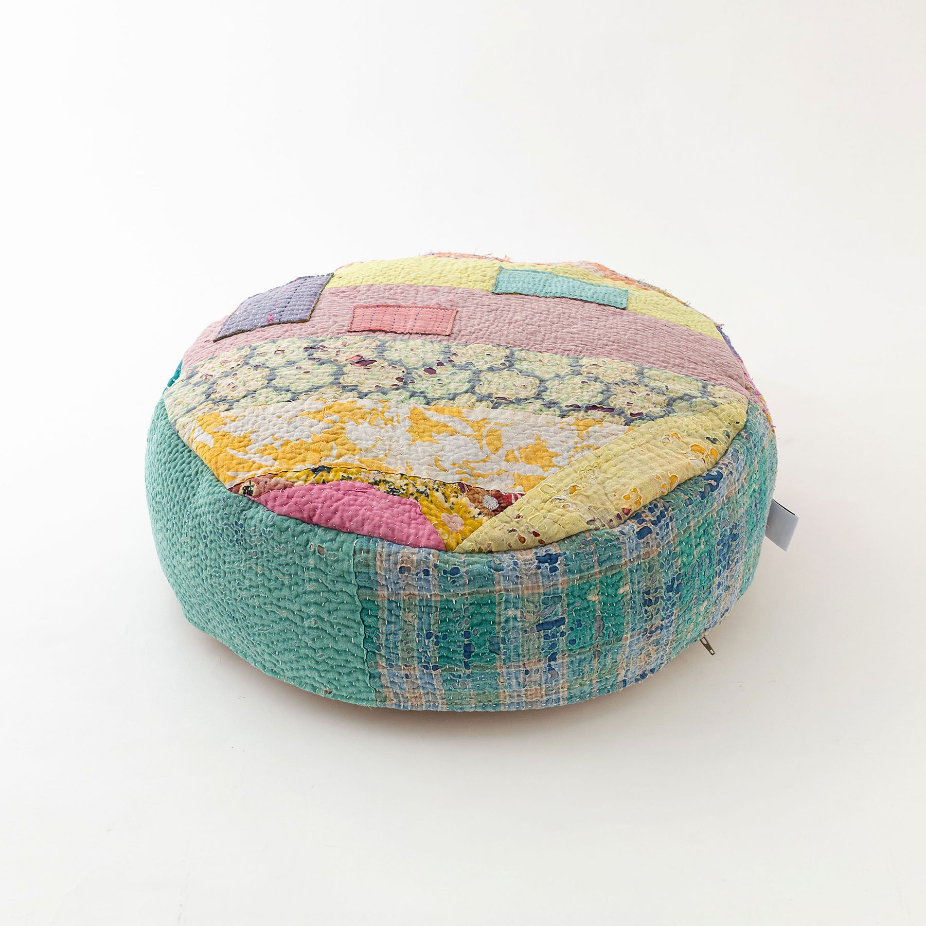 手仕事の布にさらに手を掛けてできあがったプフは、世界にひとつだけの貴重な一点もの。この機会にぜひ、お迎えしてみませんか?