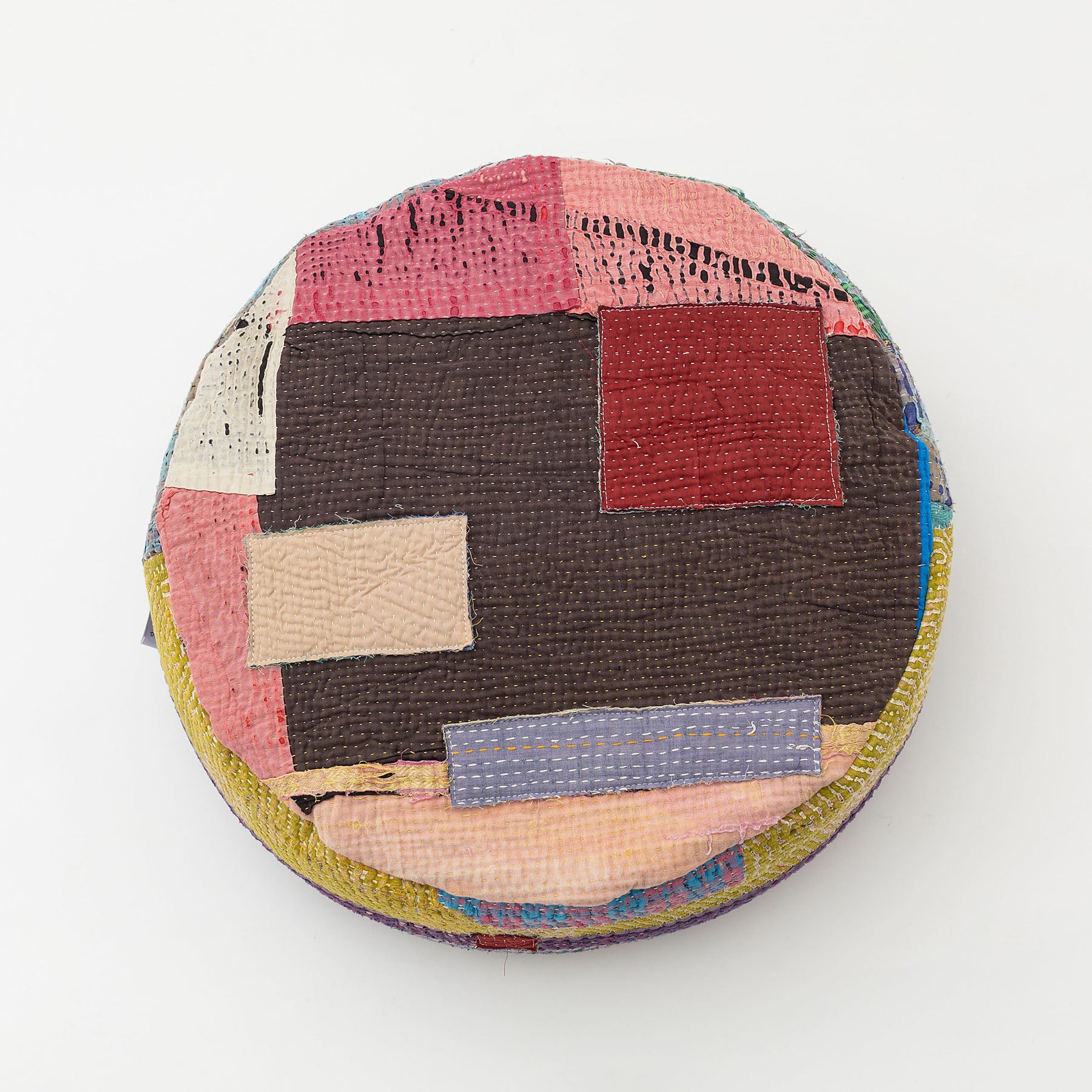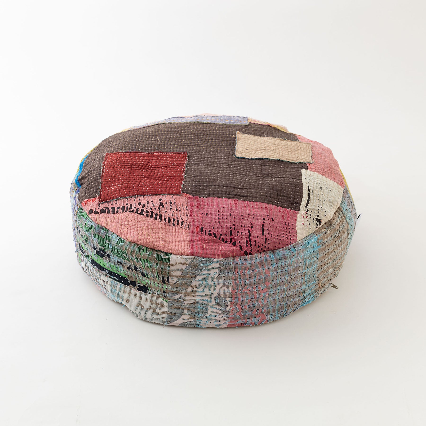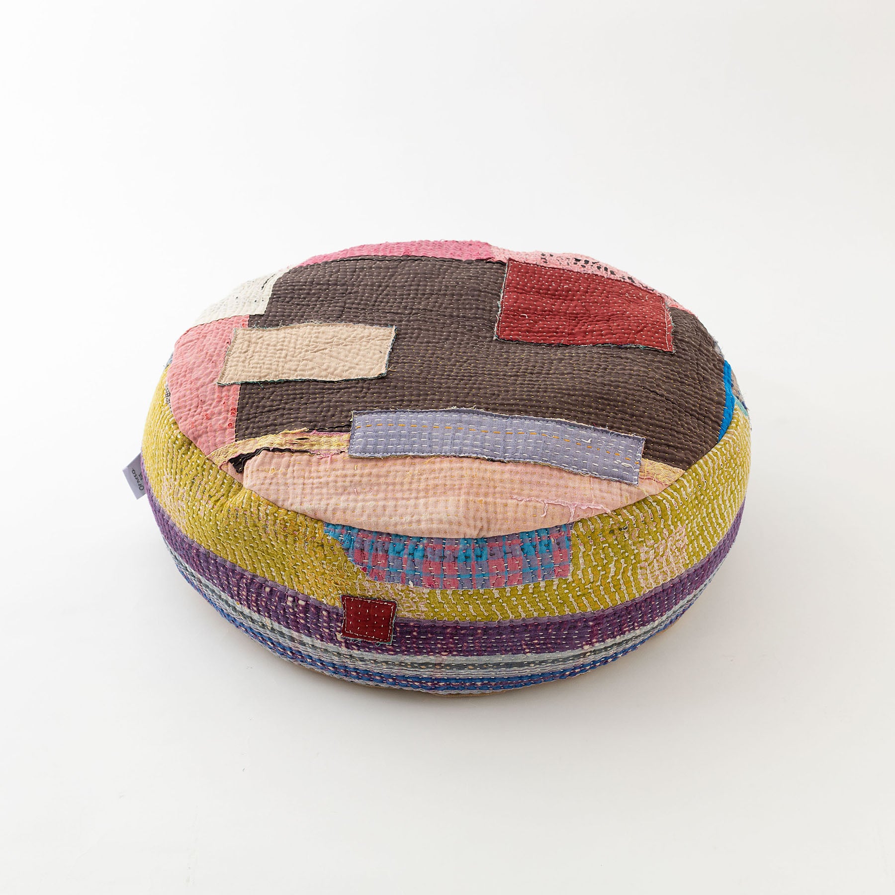 手仕事の布にさらに手を掛けてできあがったプフは、世界にひとつだけの貴重な一点もの。この機会にぜひ、お迎えしてみませんか?