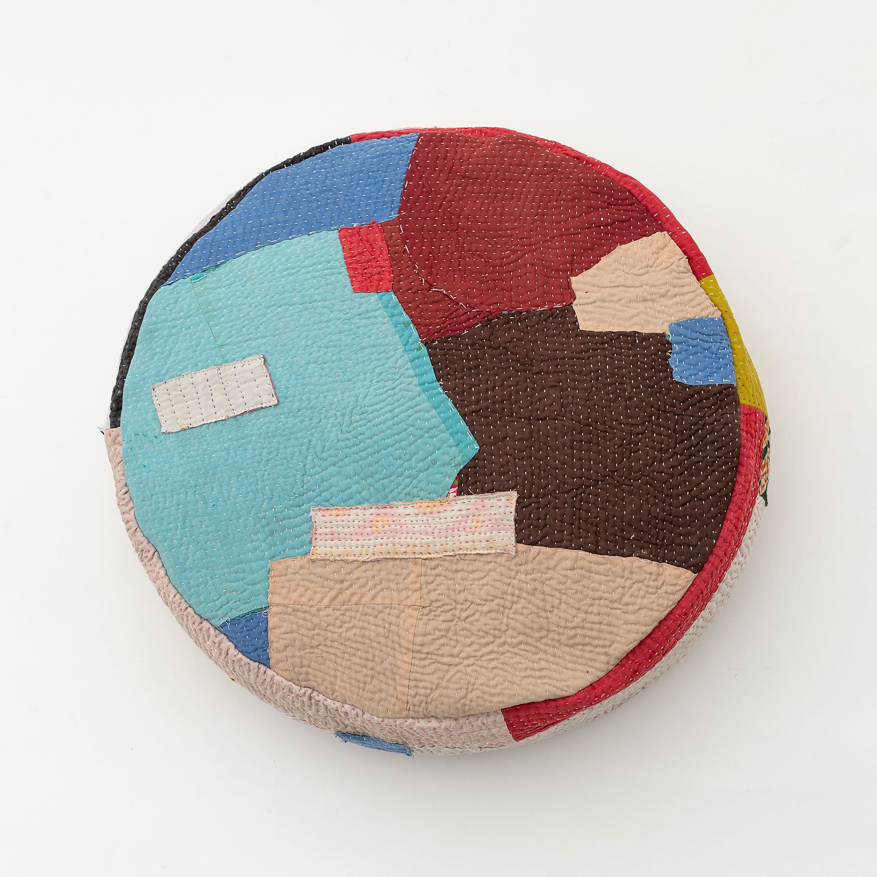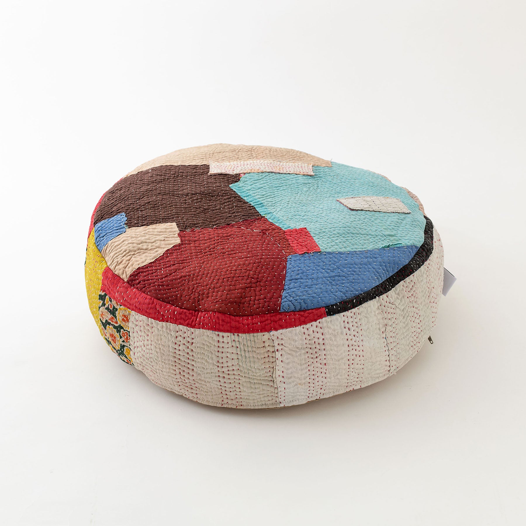 パッチワークしているので、角度によっていろんな色や表情を楽しむことができます。インド人の職人による刺し子は、人によって個性が出るのも魅力です。