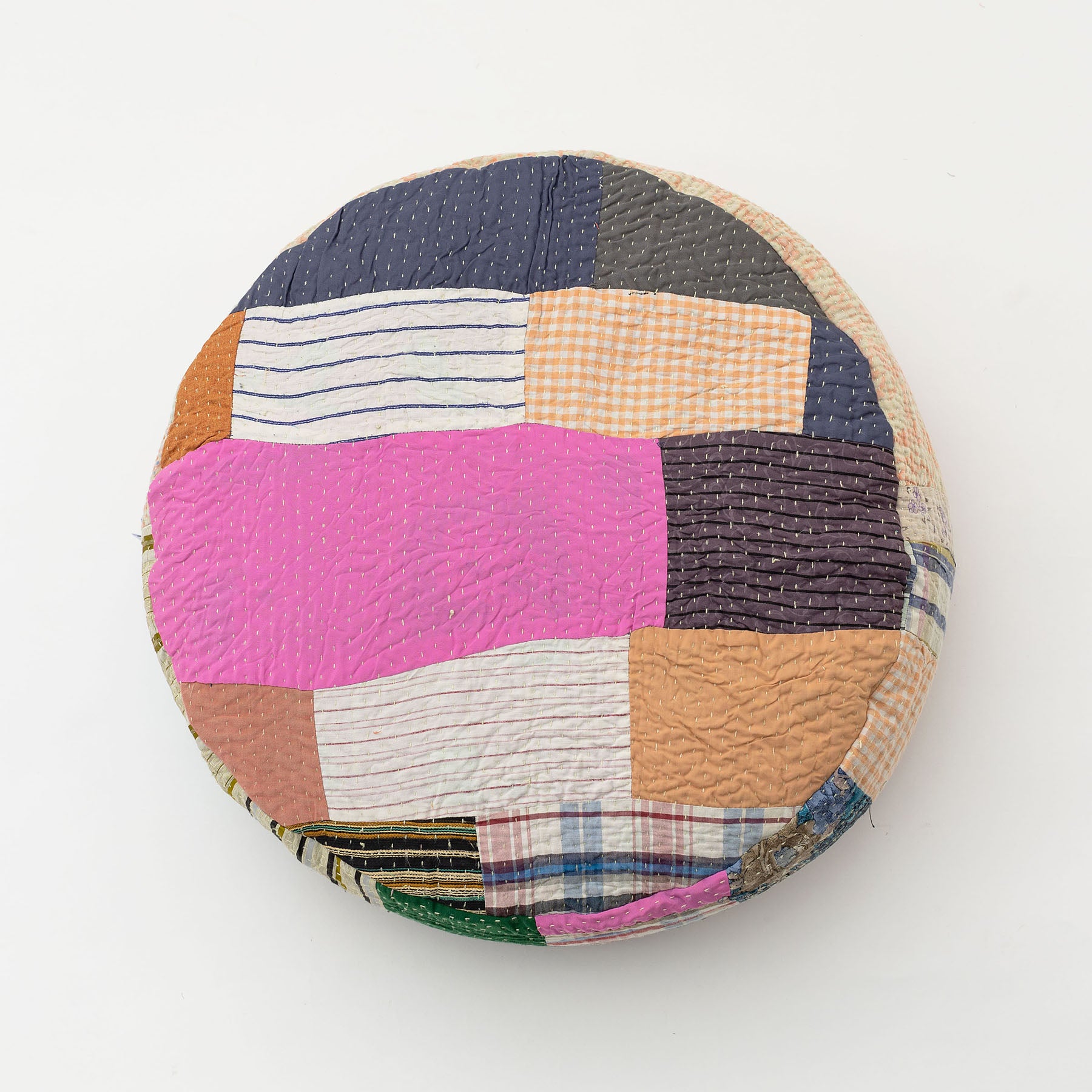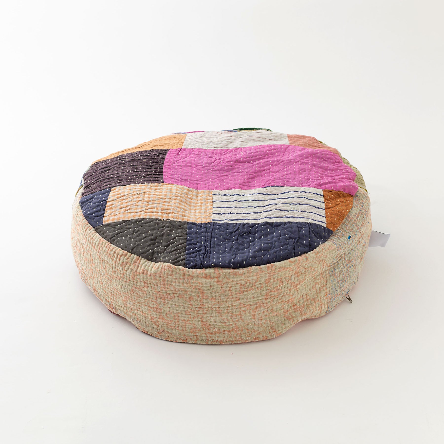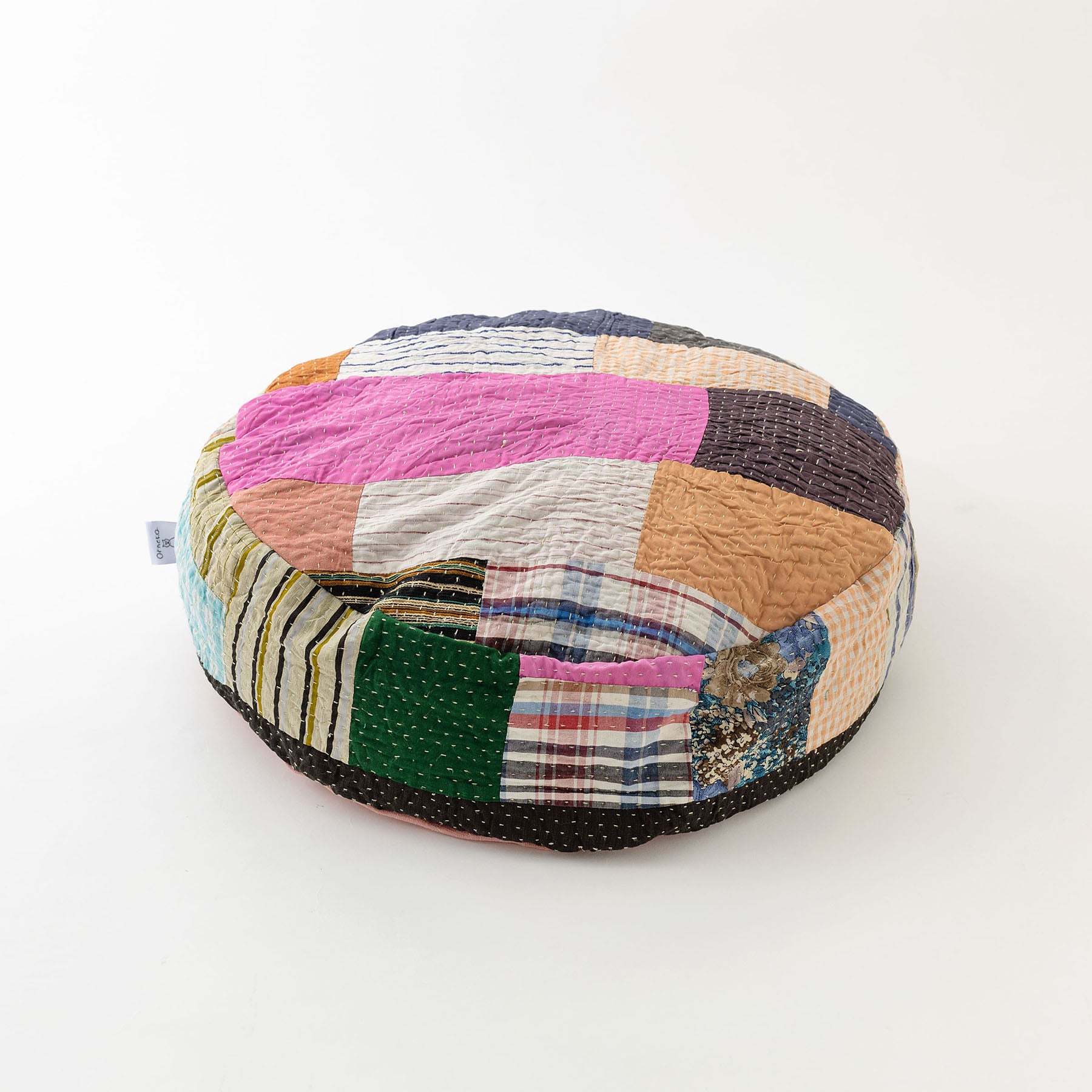 手仕事の布にさらに手を掛けてできあがったプフは、世界にひとつだけの貴重な一点もの。この機会にぜひ、お迎えしてみませんか?