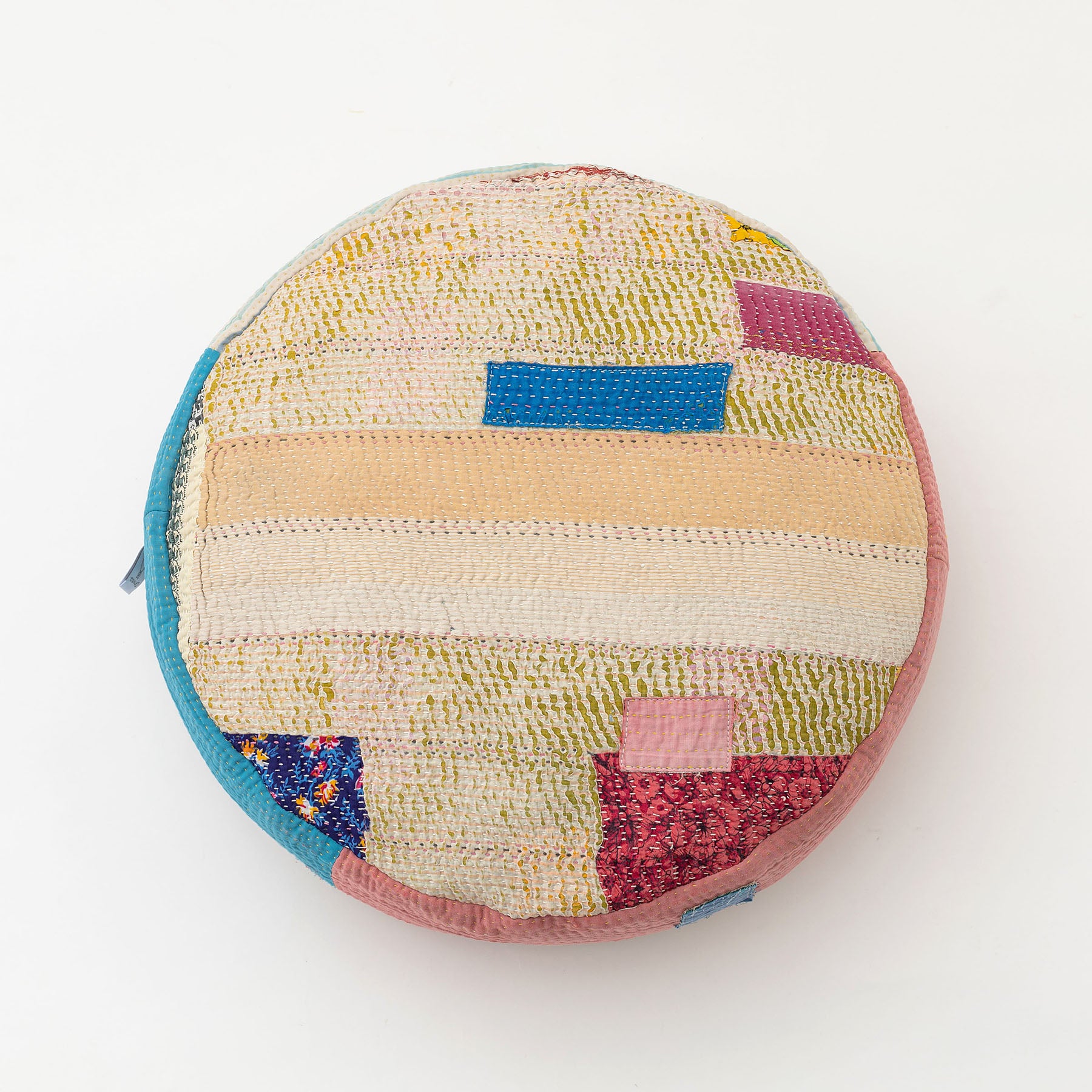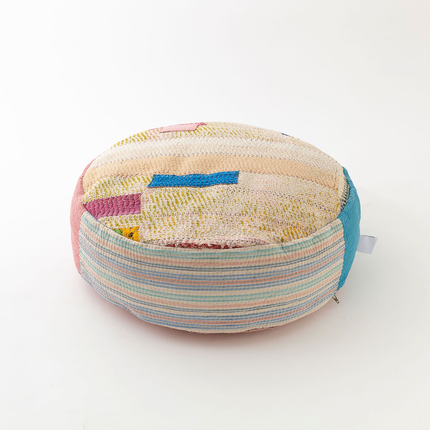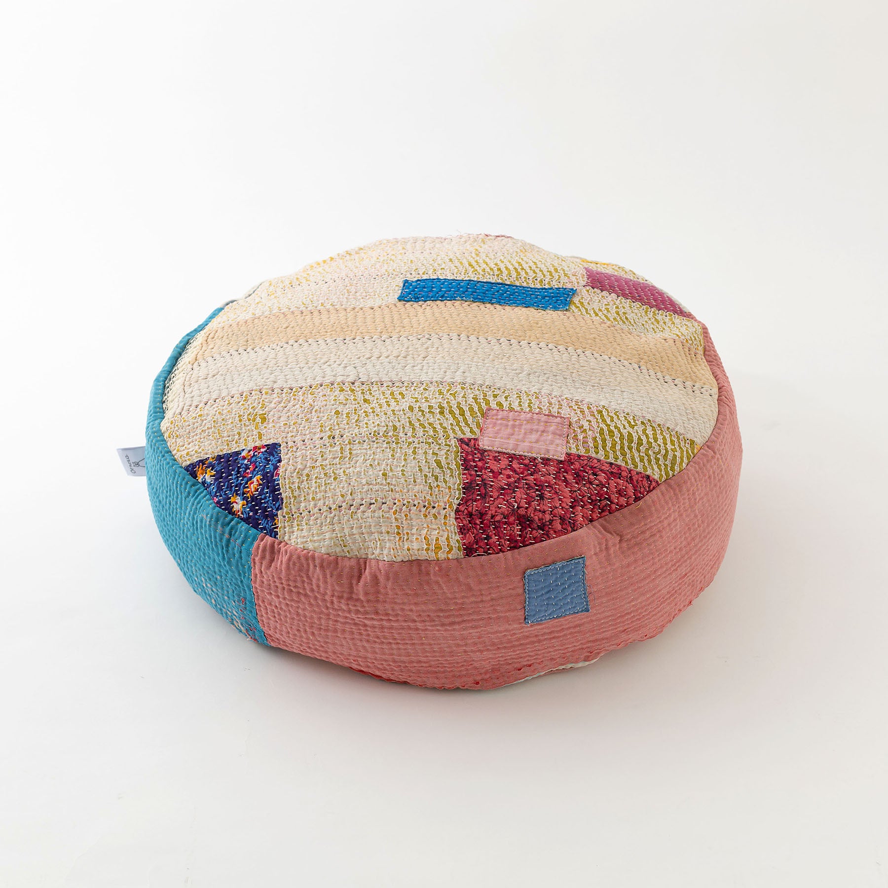 手仕事の布にさらに手を掛けてできあがったプフは、世界にひとつだけの貴重な一点もの。この機会にぜひ、お迎えしてみませんか?