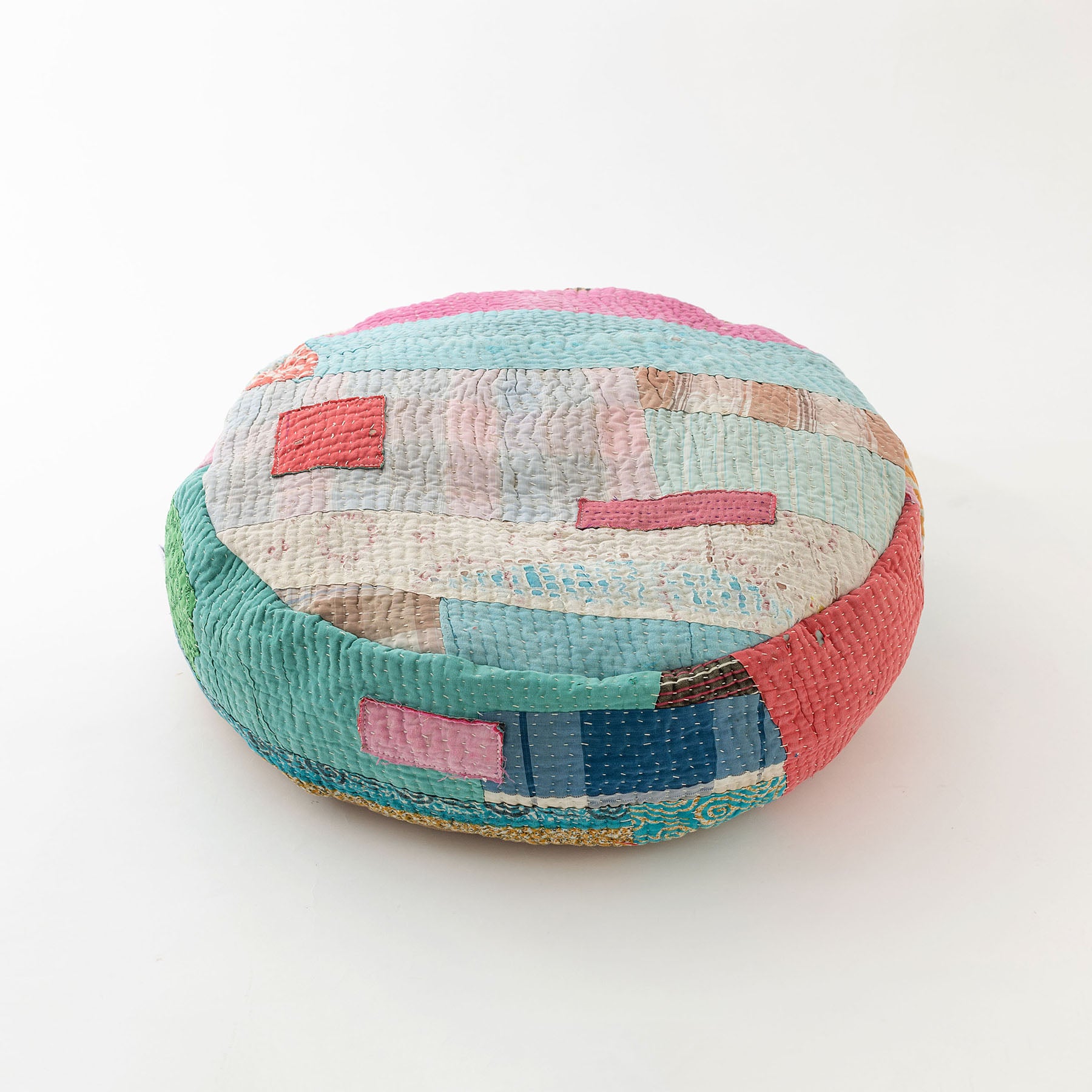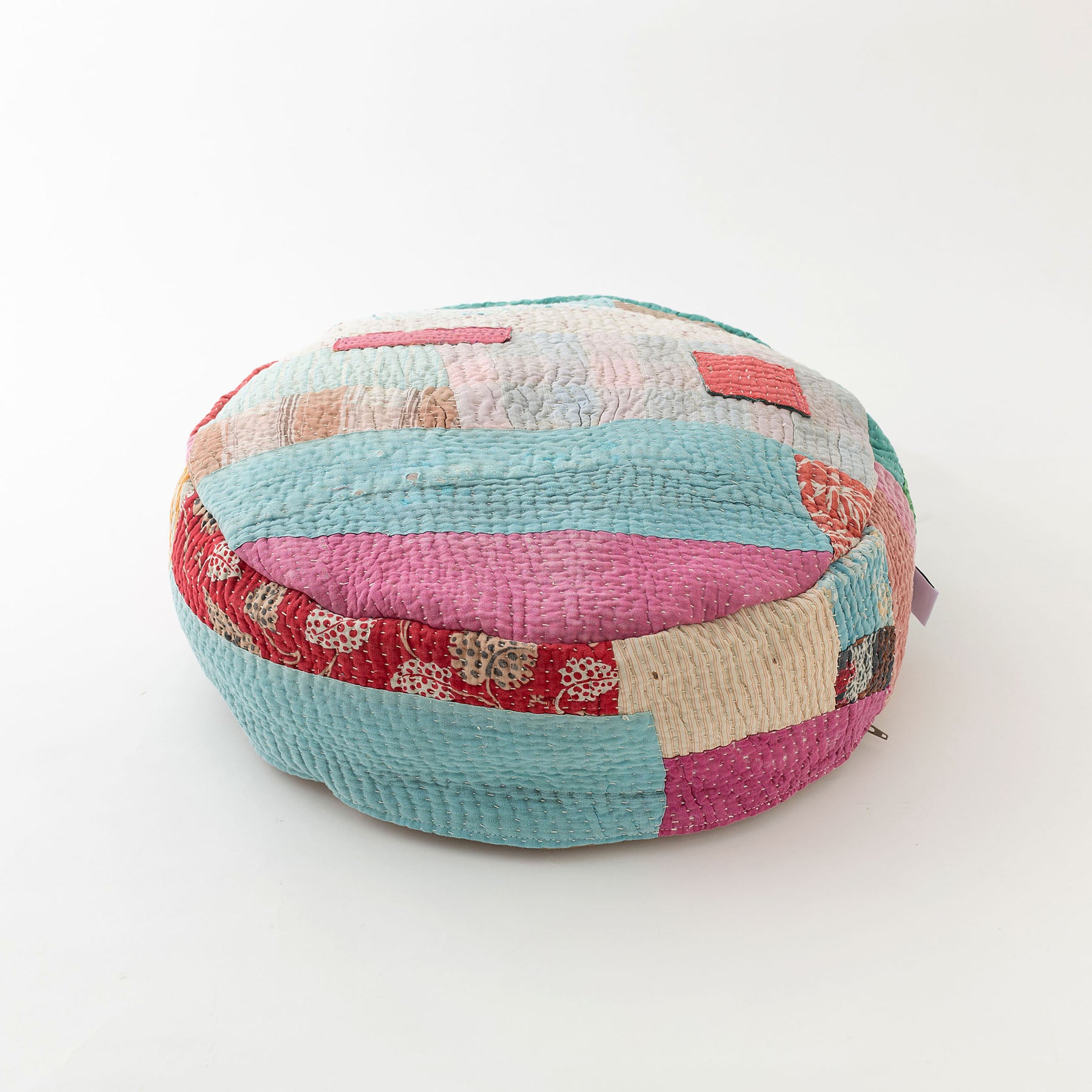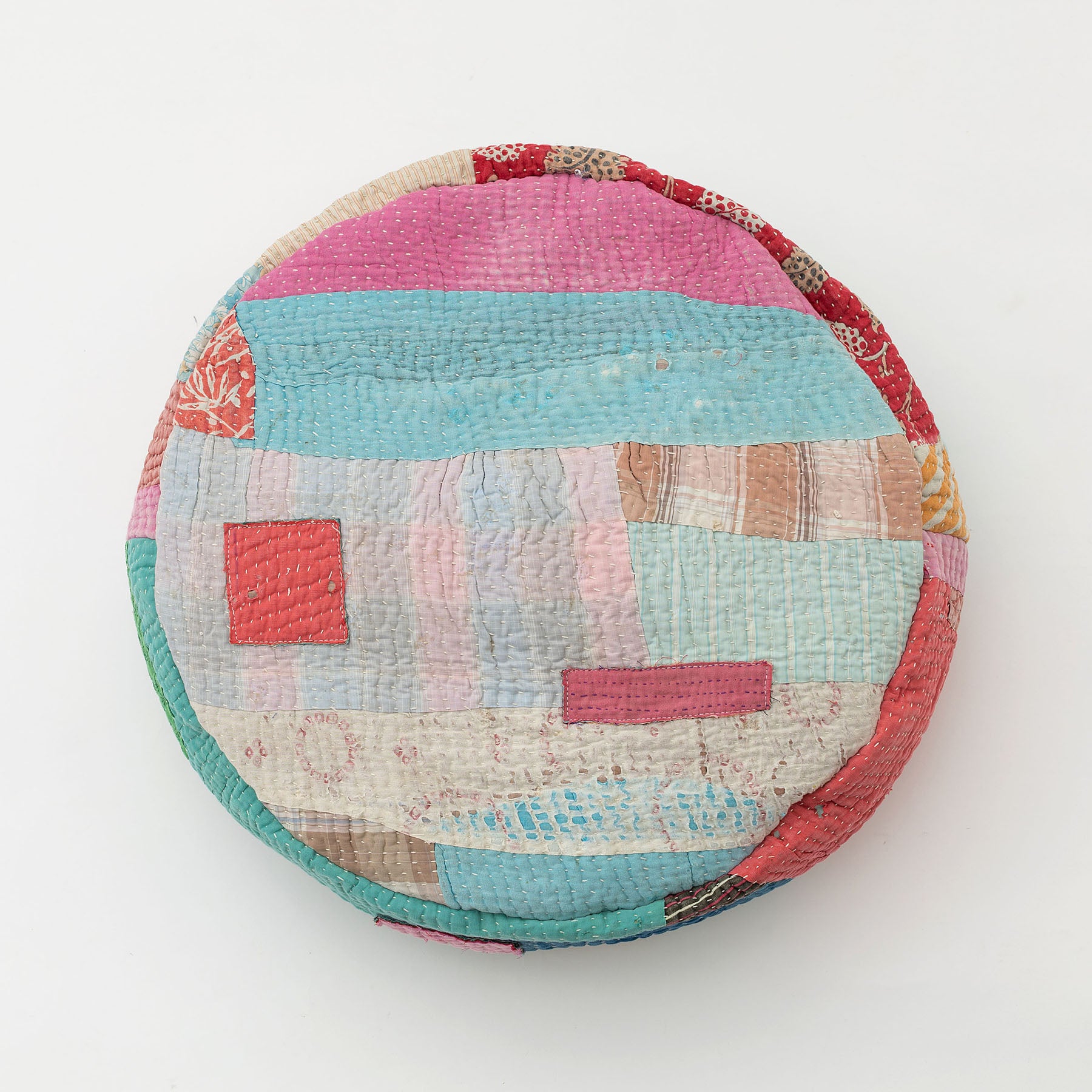 手仕事の布にさらに手を掛けてできあがったプフは、世界にひとつだけの貴重な一点もの。この機会にぜひ、お迎えしてみませんか?