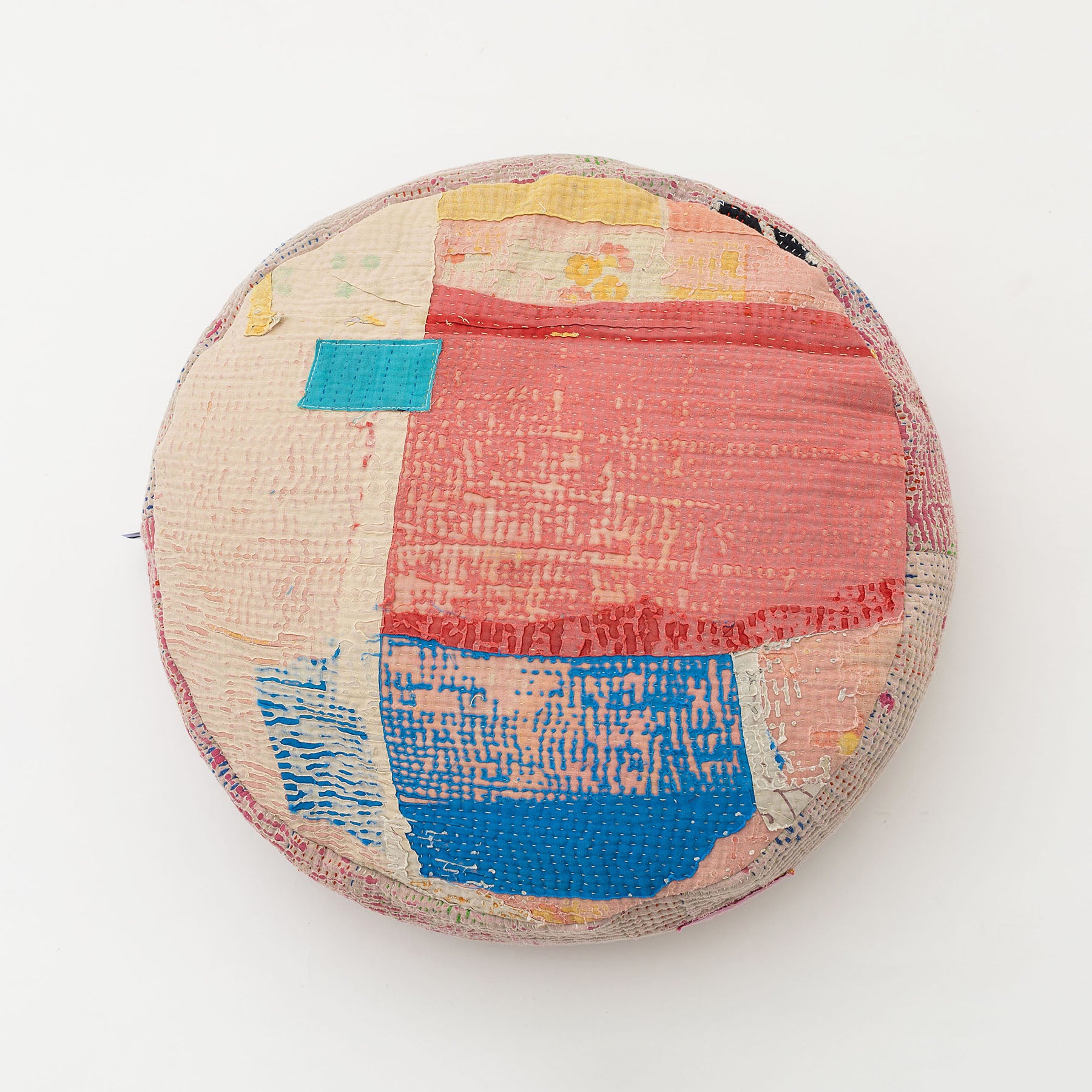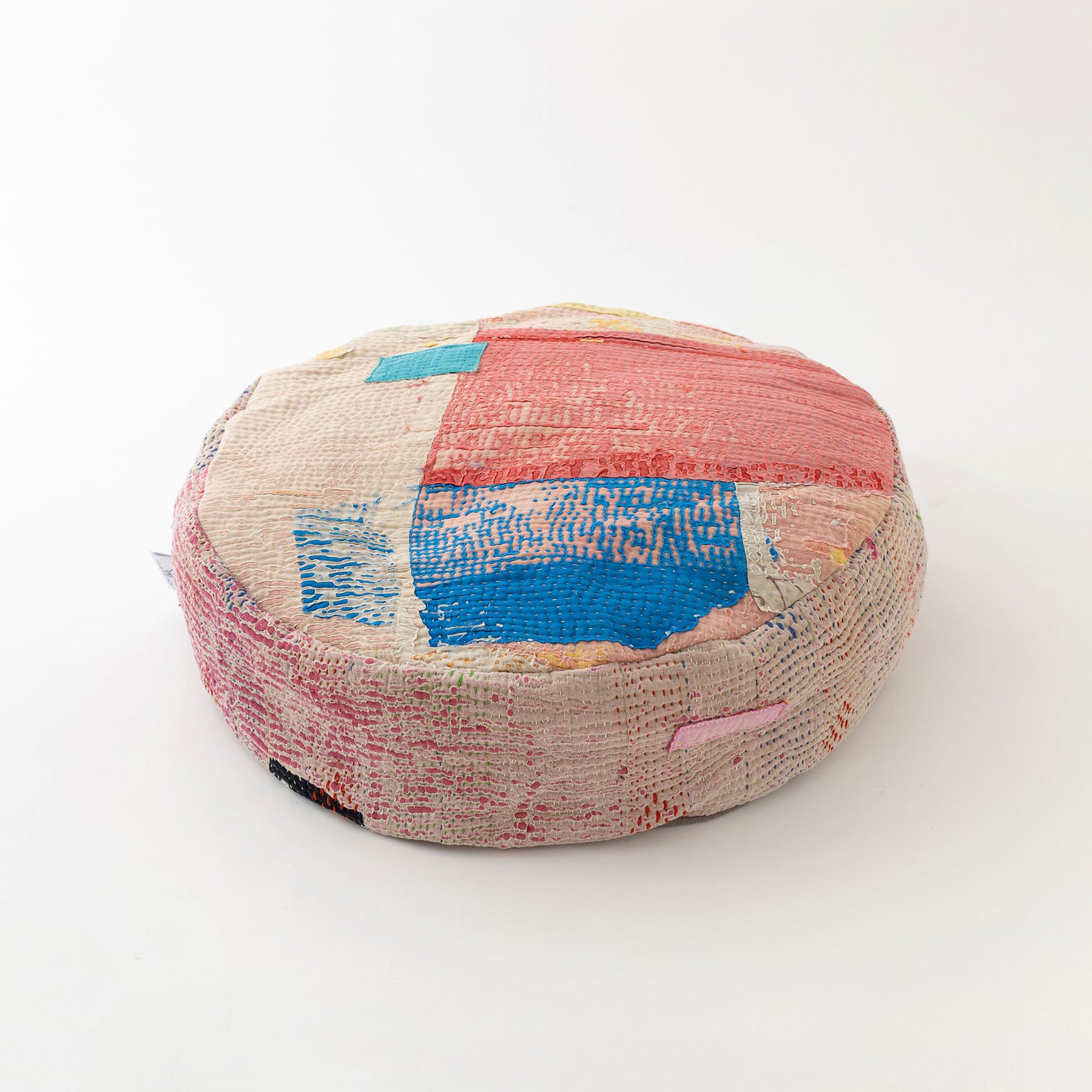 パッチワークしているので、角度によっていろんな色や表情を楽しむことができます。インド人の職人による刺し子は、人によって個性が出るのも魅力です。