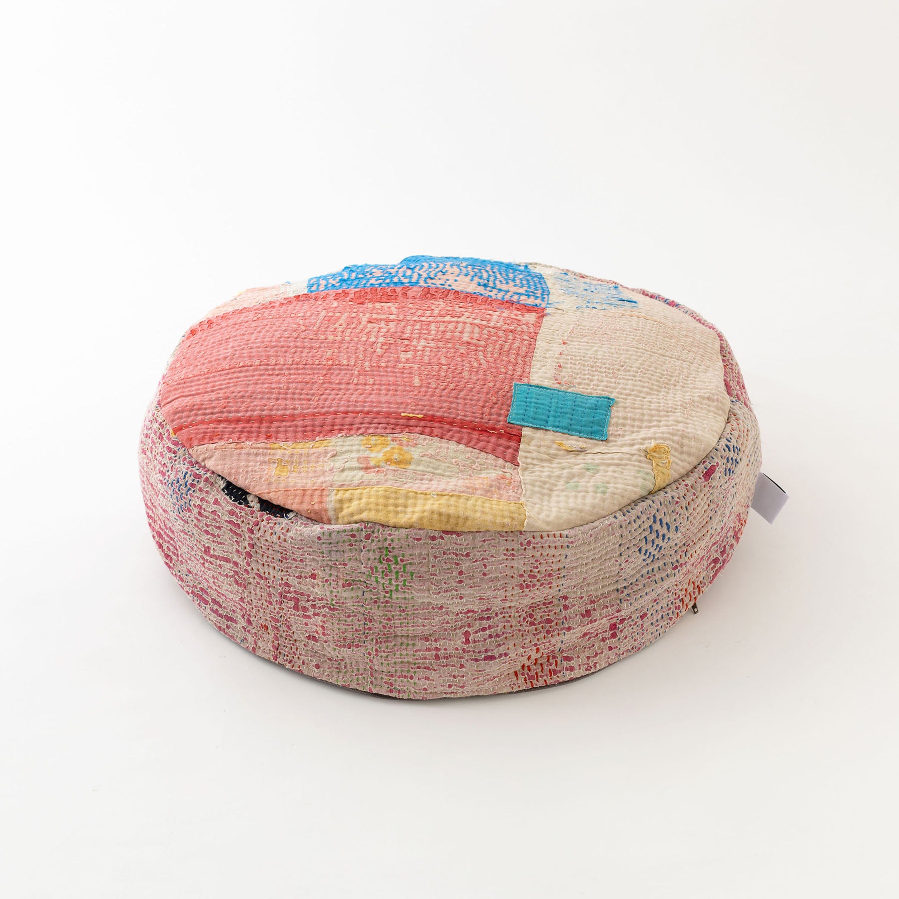 手仕事の布にさらに手を掛けてできあがったプフは、世界にひとつだけの貴重な一点もの。この機会にぜひ、お迎えしてみませんか?