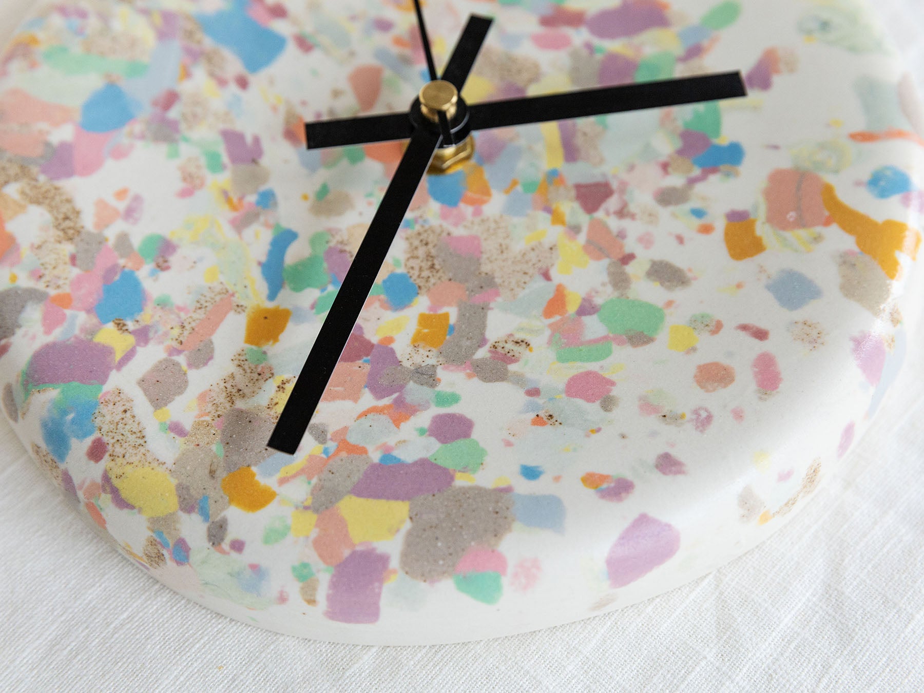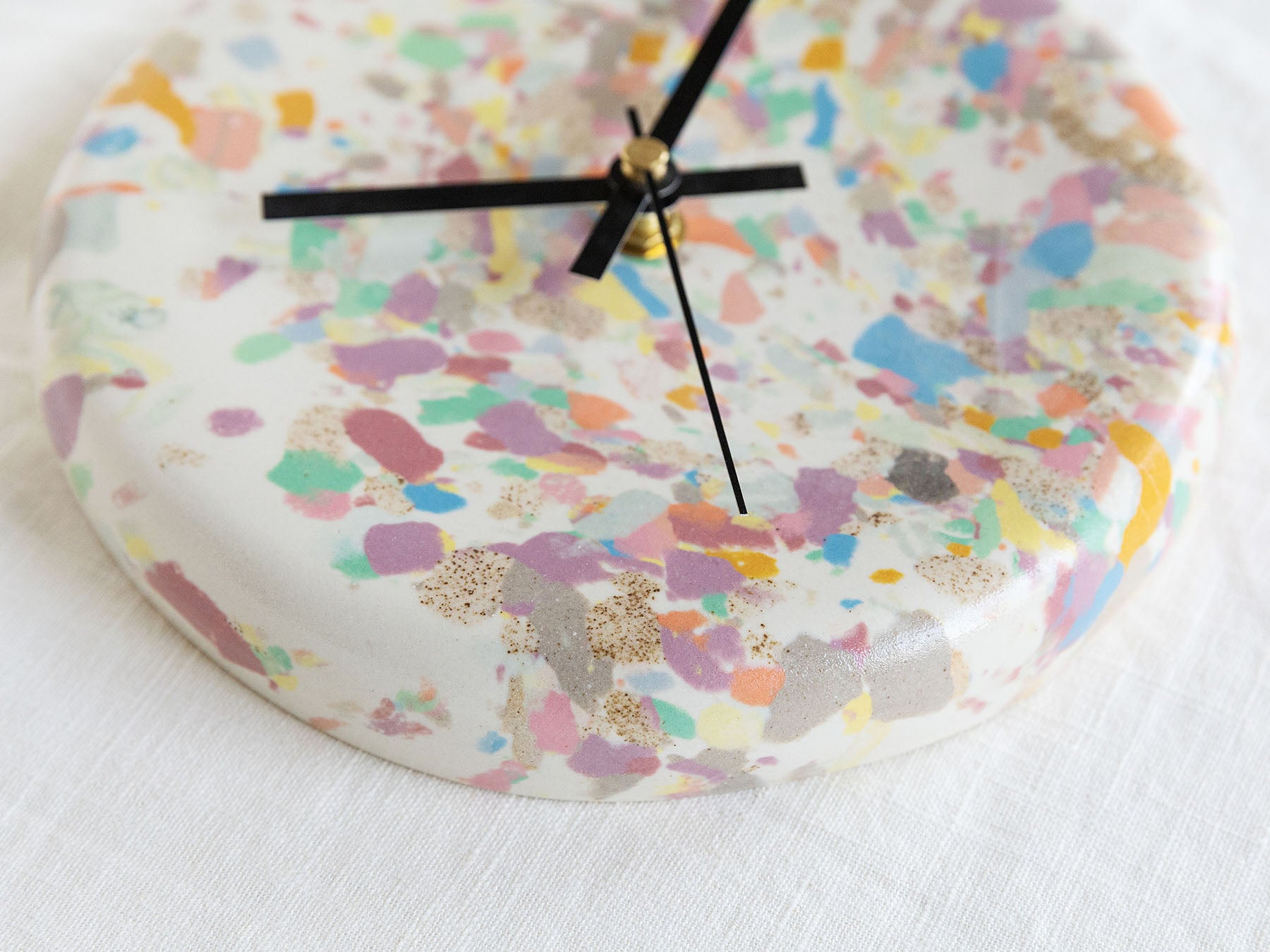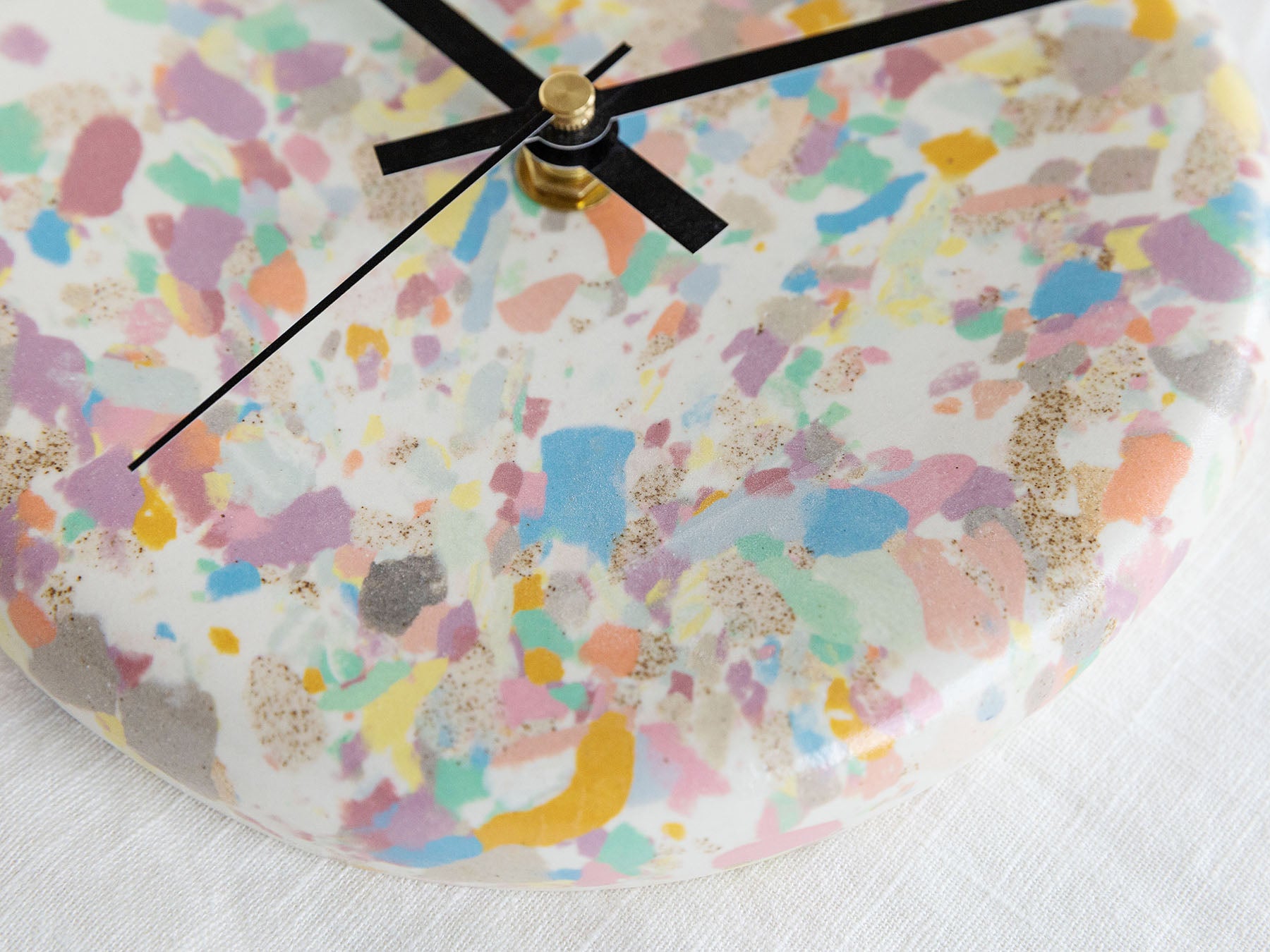 普段あまり作られていない時計を、特別にご用意いただきました。ニュアンスのある明るいカラーが目を引き、柄もそれぞれ異なる一点モノ。