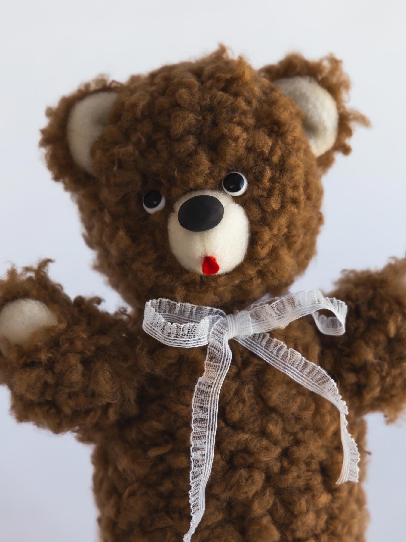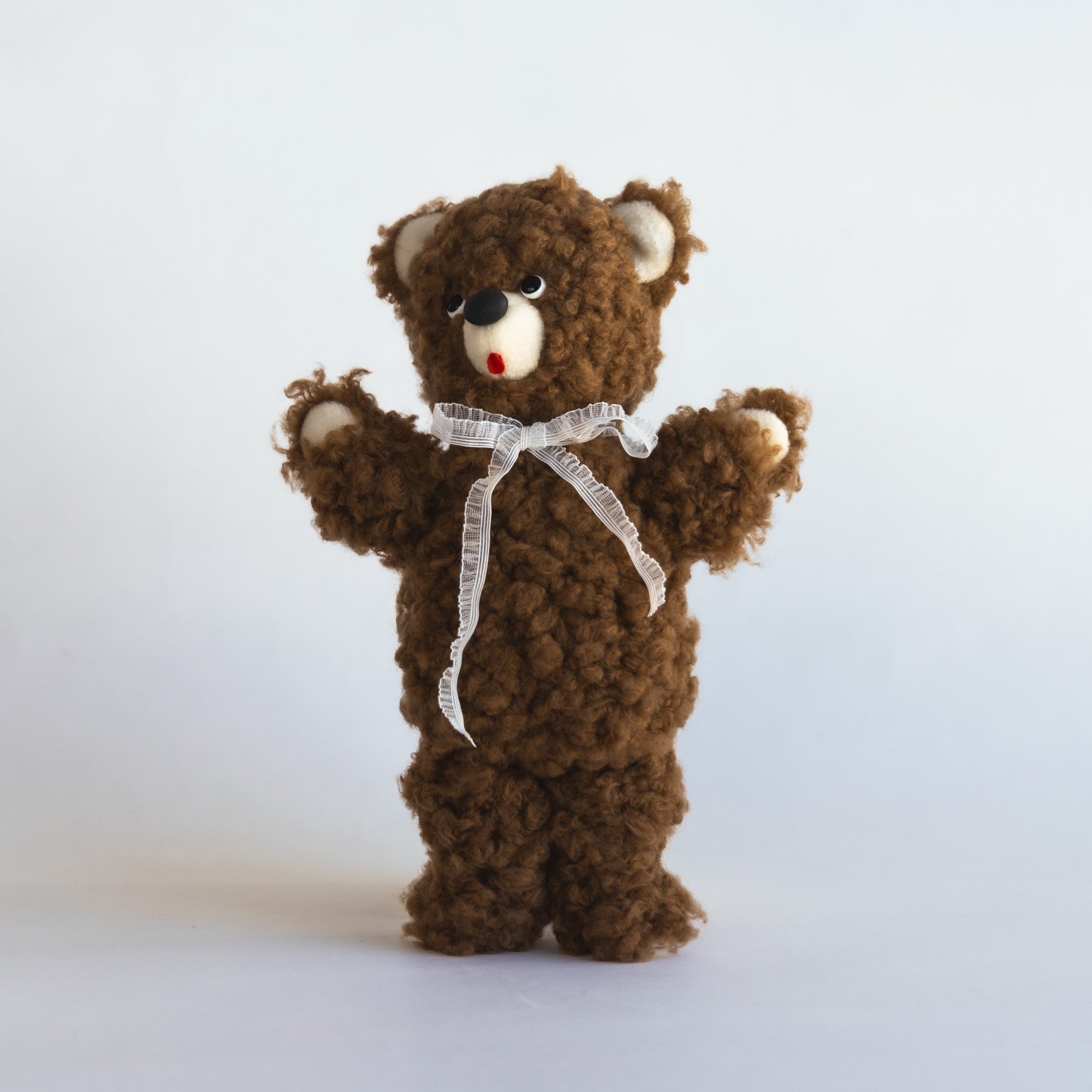 ぬいぐるみ作家 kiritanporitan(キリタンポリタン)さんが、ひと針ひと針こころを込めて仕上げた、世界にひとつだけのくまさんです。