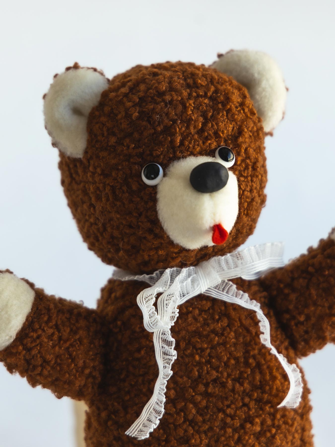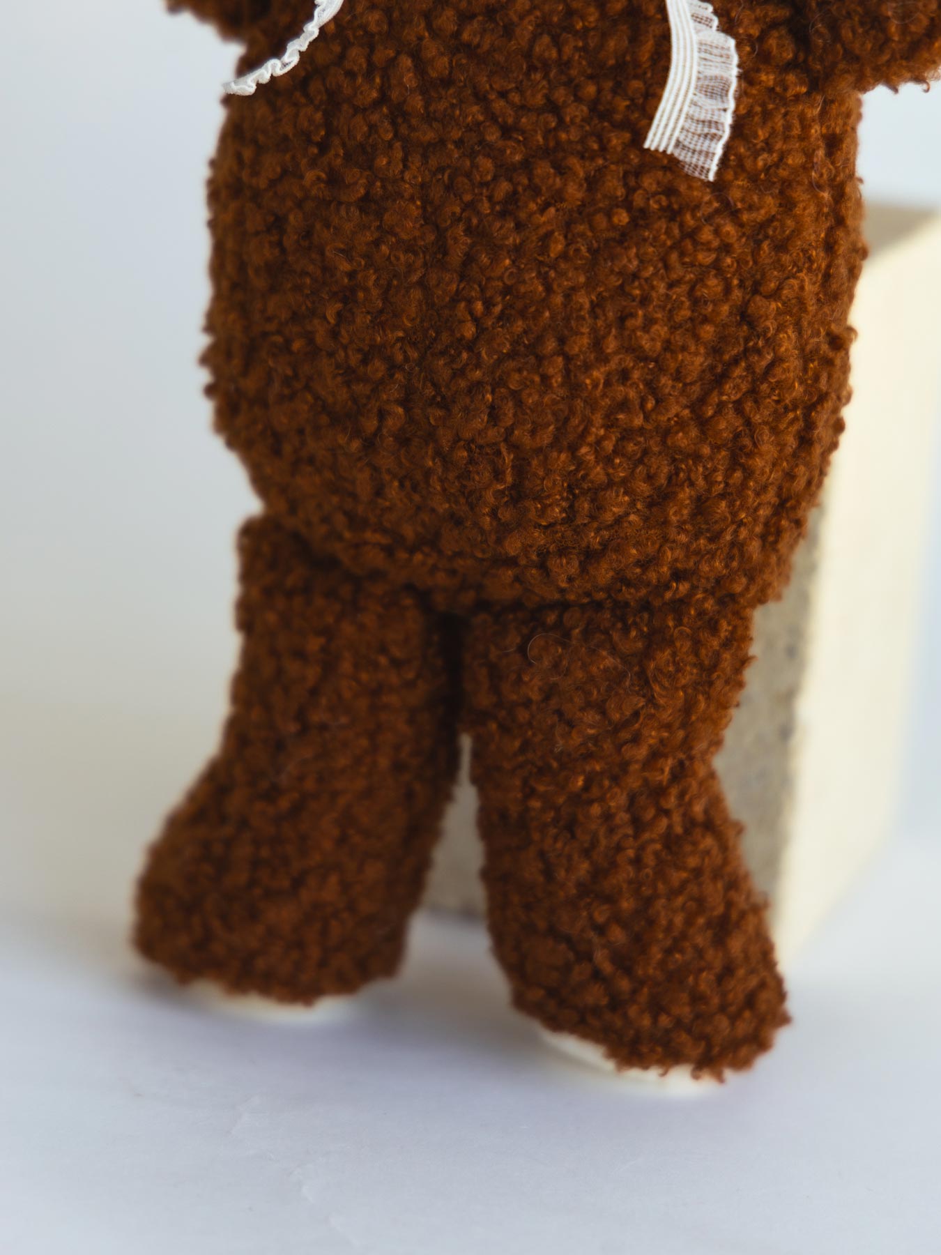 ぬいぐるみ作家 kiritanporitan(キリタンポリタン)さんが、ひと針ひと針こころを込めて仕上げた、世界にひとつだけのくまさんです。
