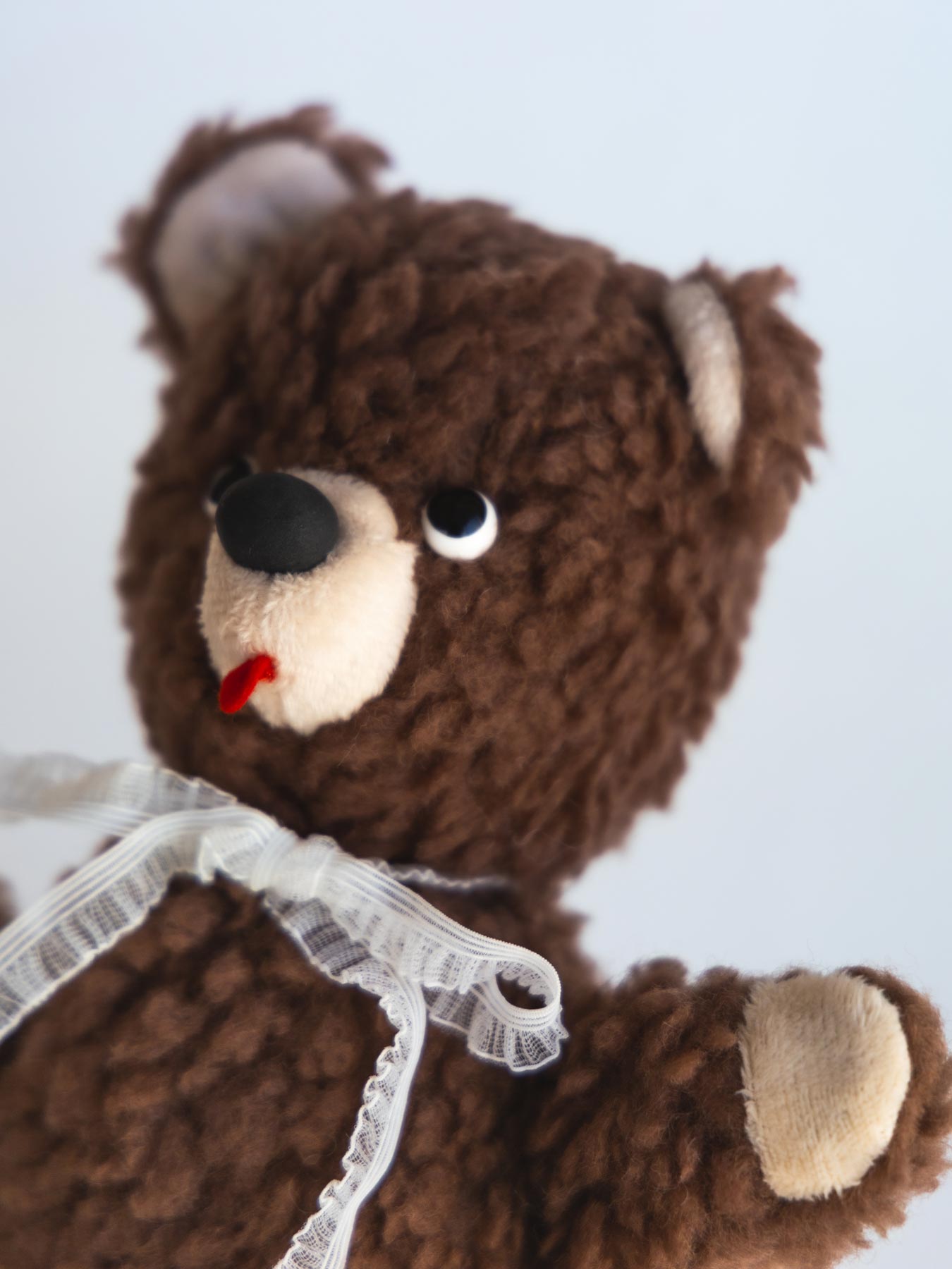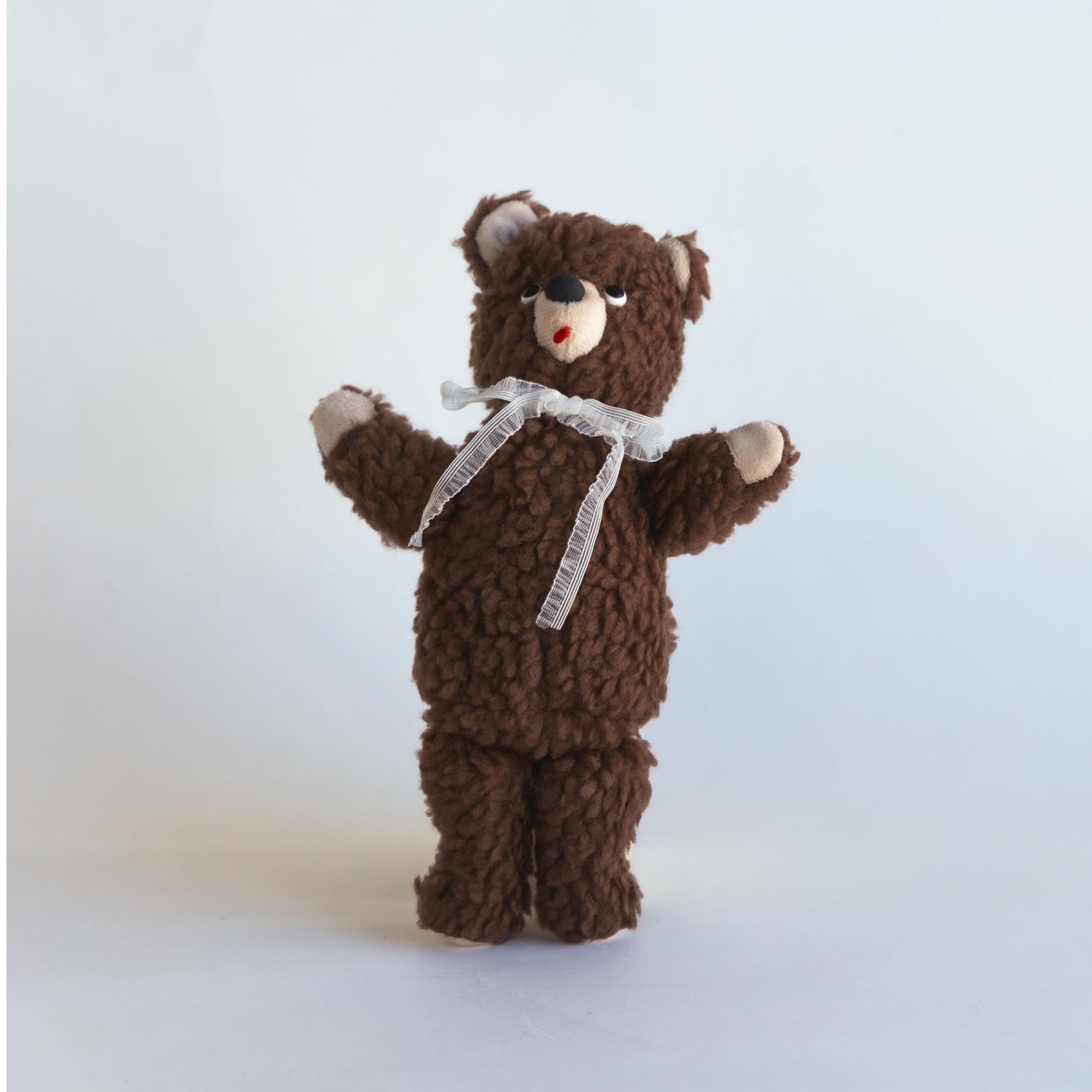 ぬいぐるみ作家 kiritanporitan(キリタンポリタン)さんが、ひと針ひと針こころを込めて仕上げた、世界にひとつだけのくまさんです。