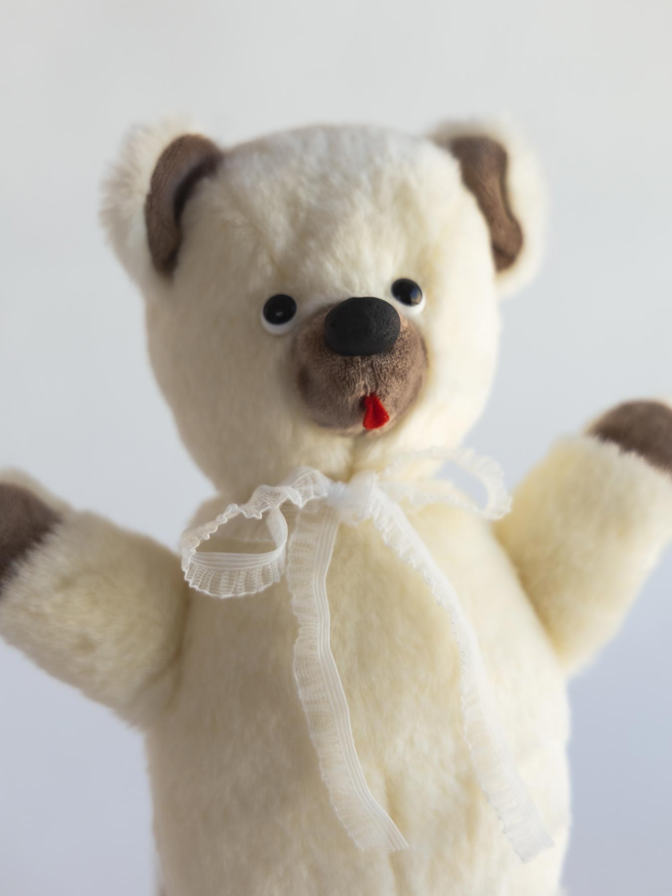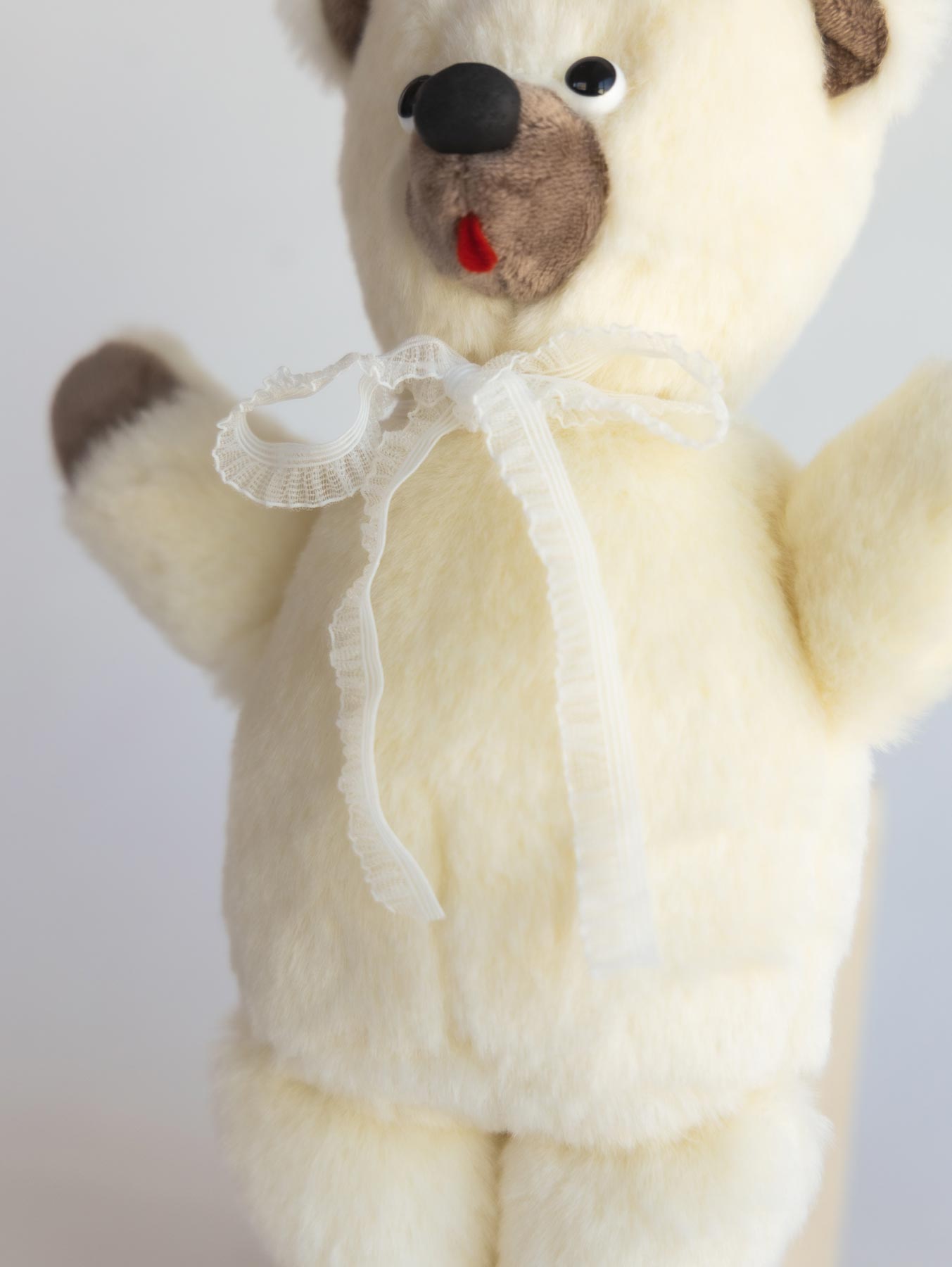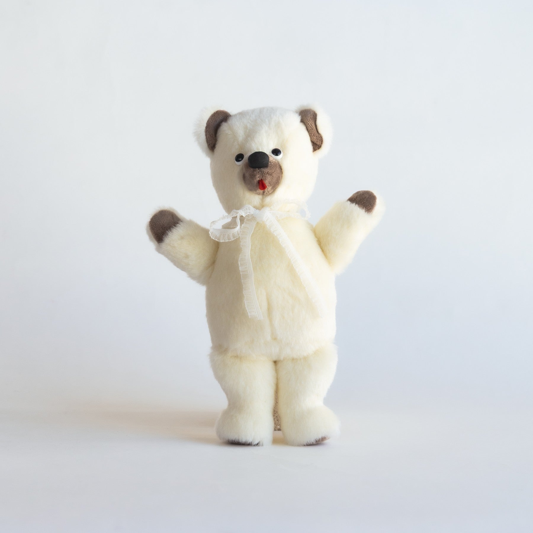ぬいぐるみ作家 kiritanporitan(キリタンポリタン)さんが、ひと針ひと針こころを込めて仕上げた、世界にひとつだけのくまさんです。