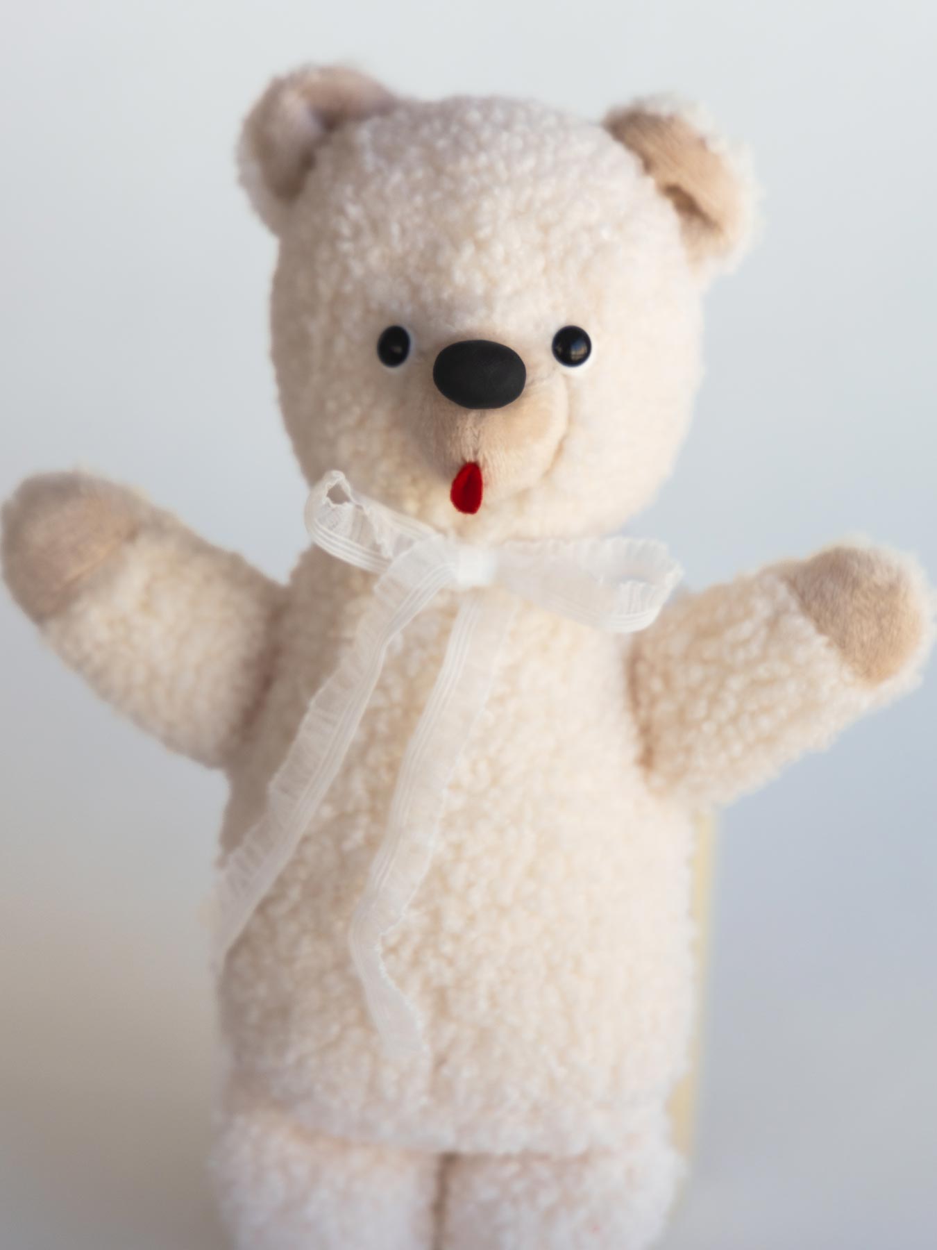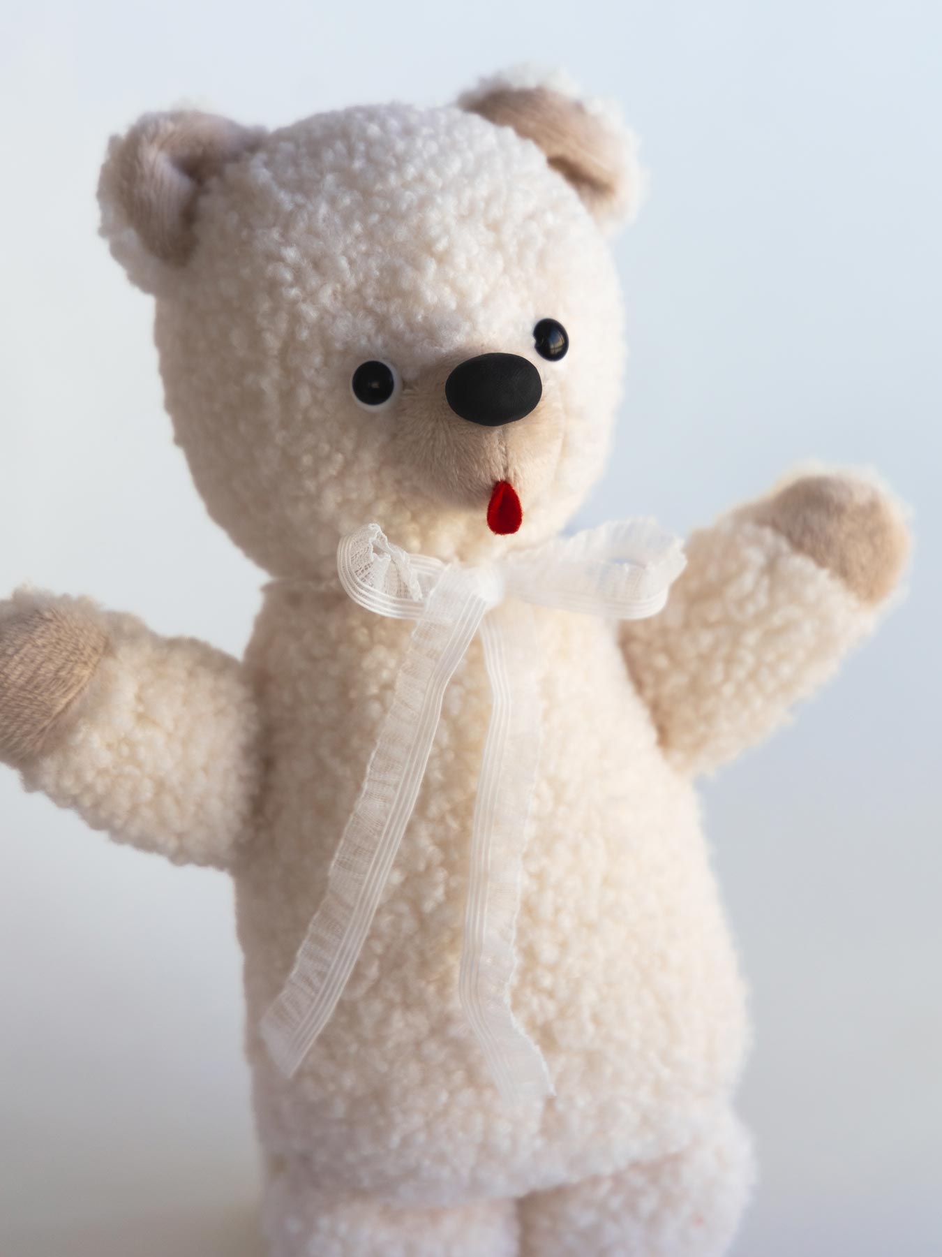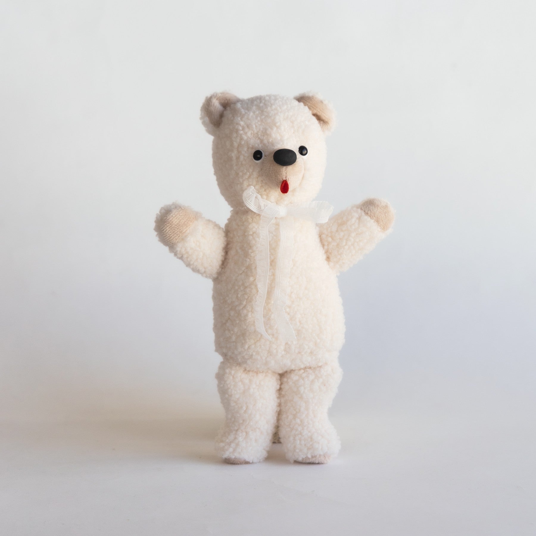 ぬいぐるみ作家 kiritanporitan(キリタンポリタン)さんが、ひと針ひと針こころを込めて仕上げた、世界にひとつだけのくまさんです。