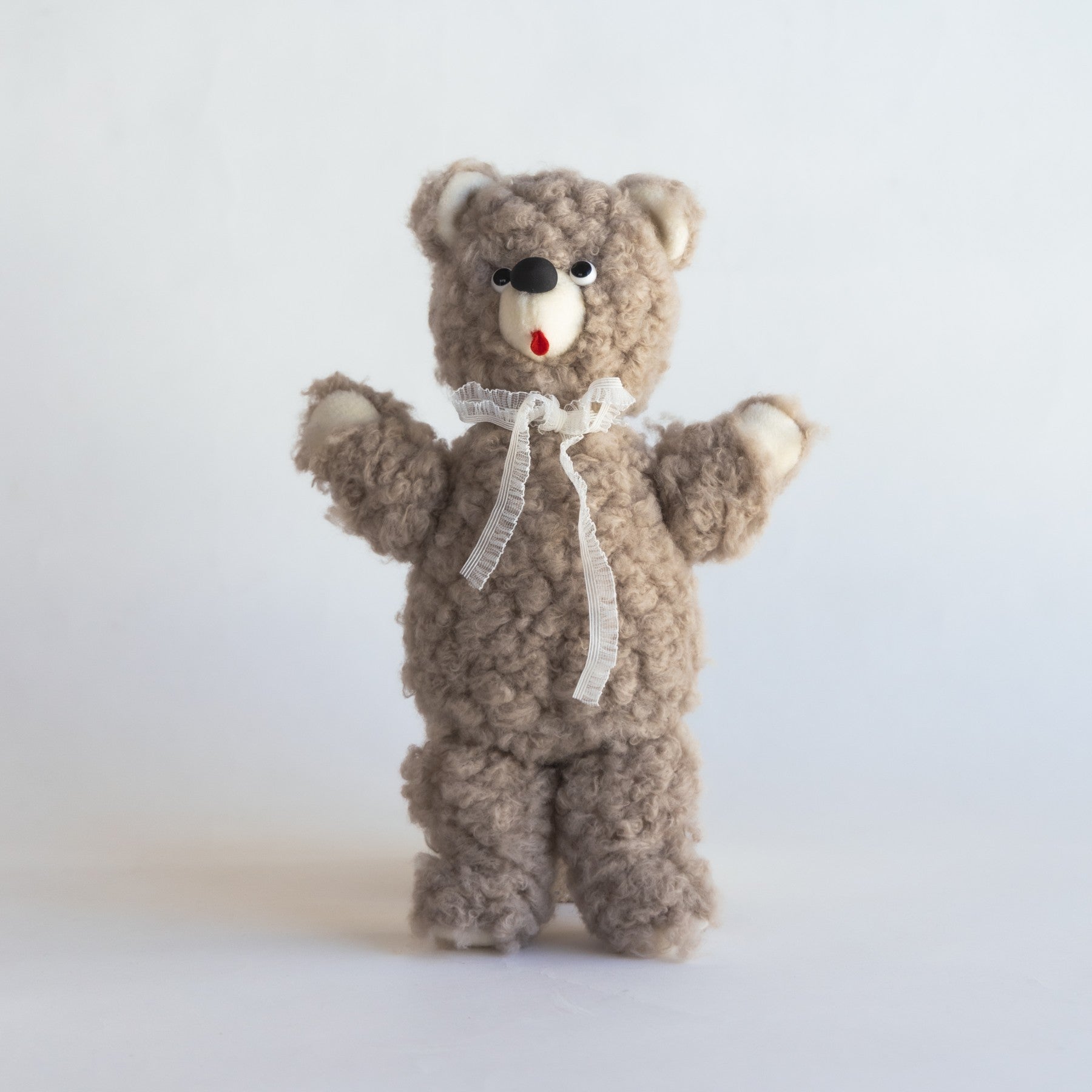 ぬいぐるみ作家 kiritanporitan(キリタンポリタン)さんが、ひと針ひと針こころを込めて仕上げた、世界にひとつだけのくまさんです。