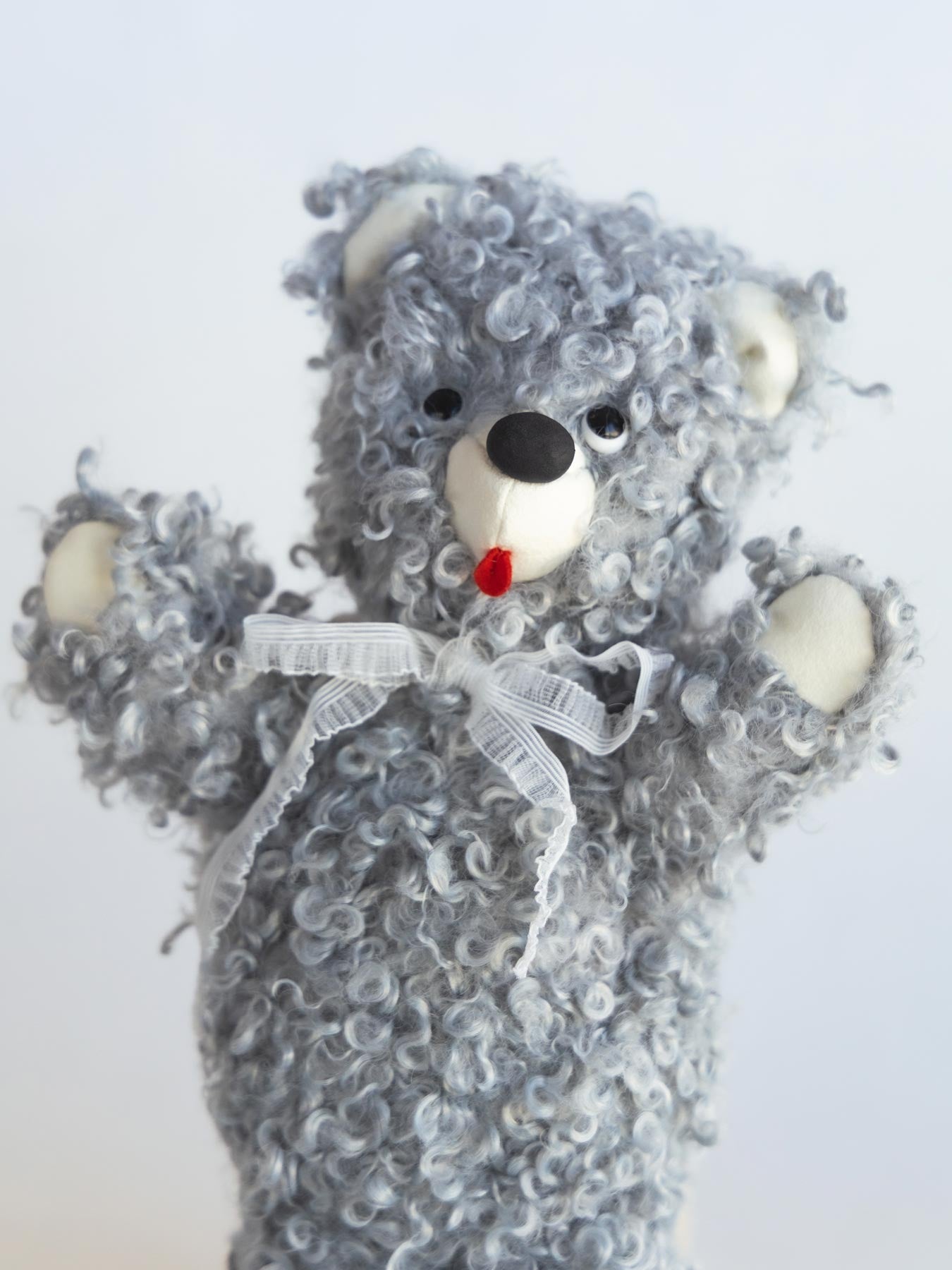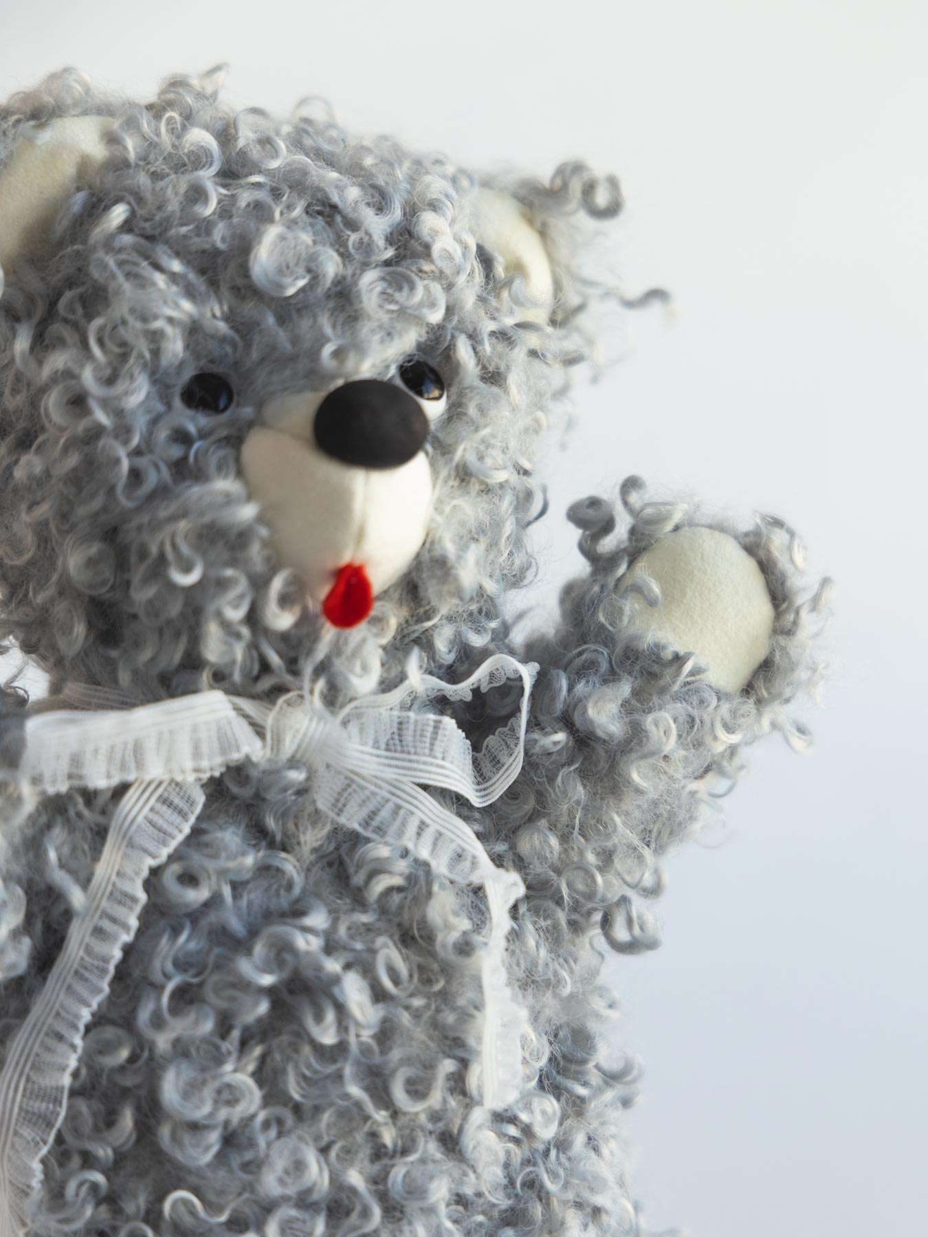 ぬいぐるみ作家 kiritanporitan(キリタンポリタン)さんが、ひと針ひと針こころを込めて仕上げた、世界にひとつだけのくまさんです。