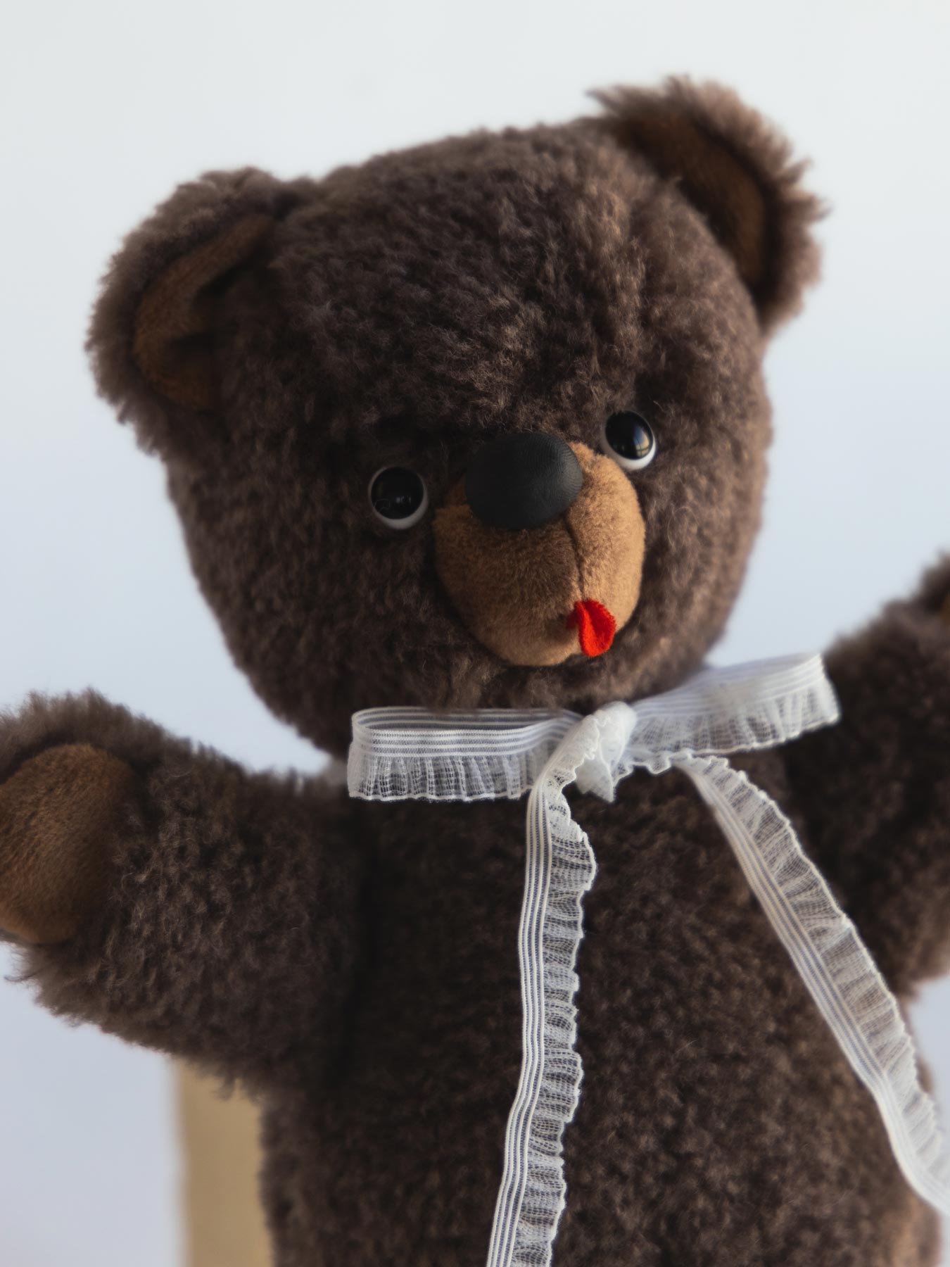 ぬいぐるみ作家 kiritanporitan(キリタンポリタン)さんが、ひと針ひと針こころを込めて仕上げた、世界にひとつだけのくまさんです。