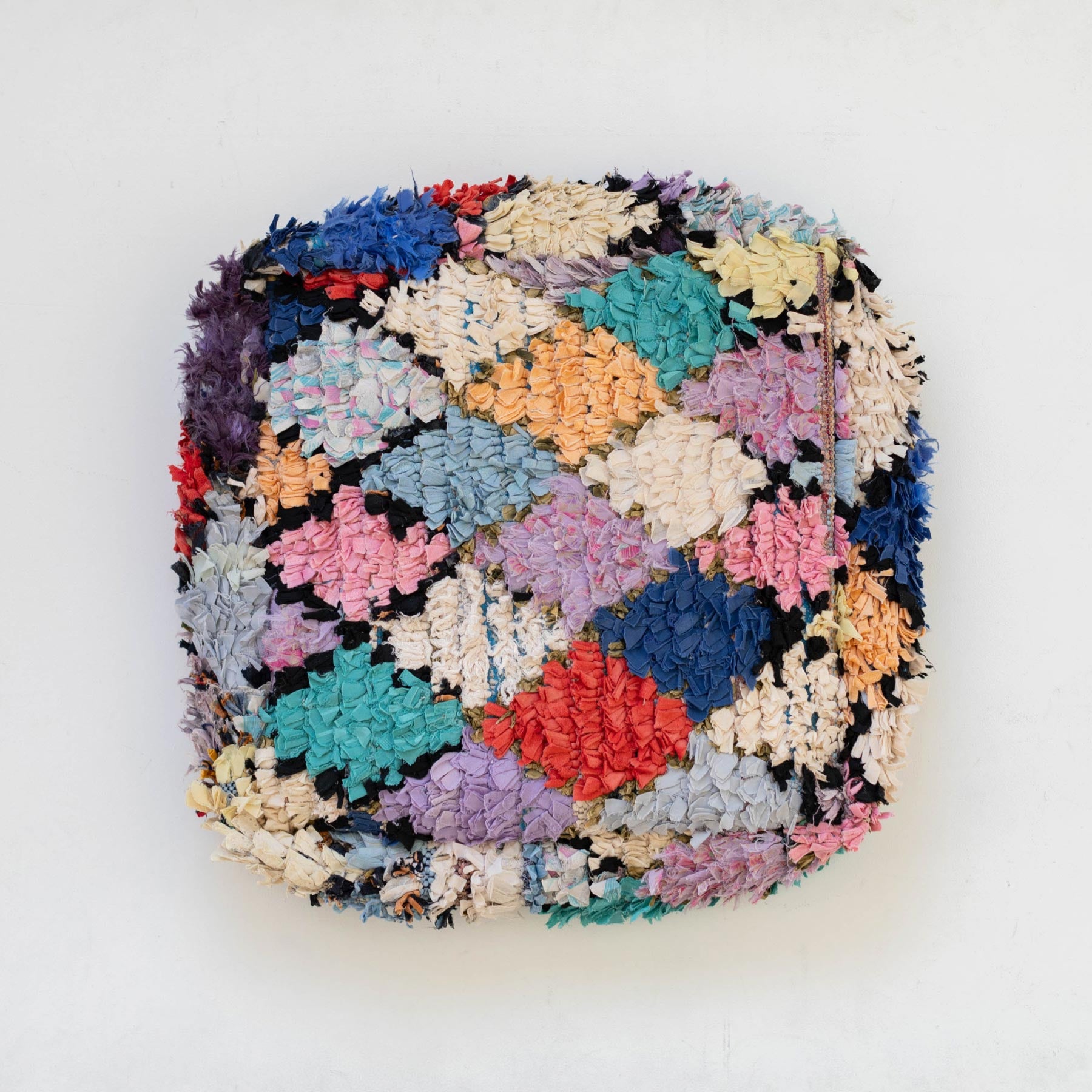 元となったラグも一点もので、布の切り取り方で柄の出方も変わるため、それぞれがこの世にひとつのプフです。