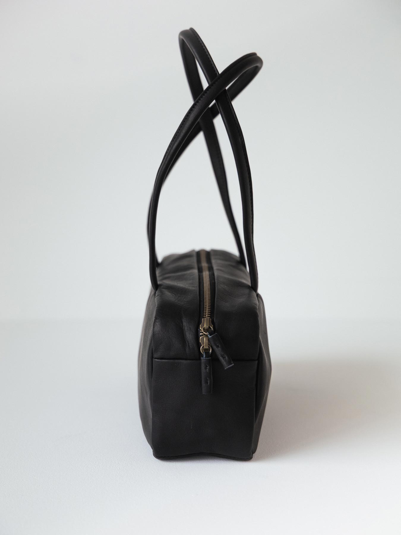ボストンでもおなじみの、シックで大人っぽいブラックレザー。とても柔らかな本牛革を使用しており、オイルを含んだしっとりした革は、使っていくうちに艶が増していきます。