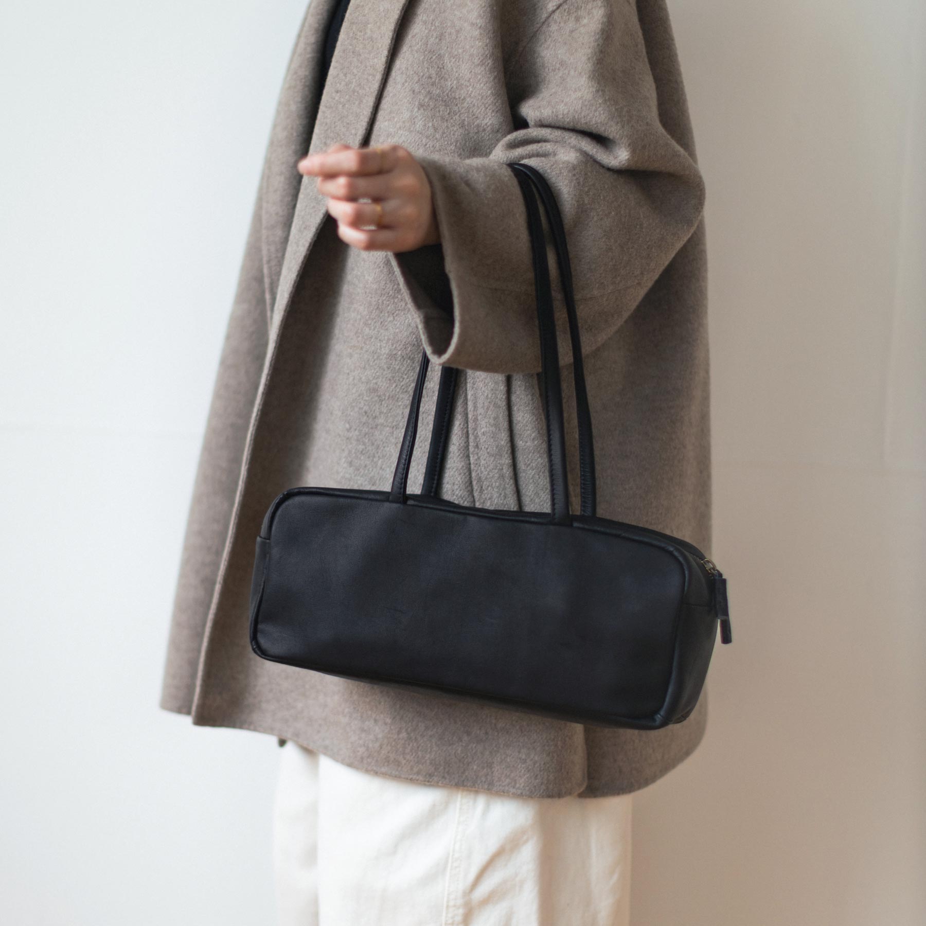 横長のボックス型のバッグに長めのハンドルがつけられたフルートバッグは、シンプルだけど、そのバランス感でちょっとおしゃれに見せてくれるアイテム。