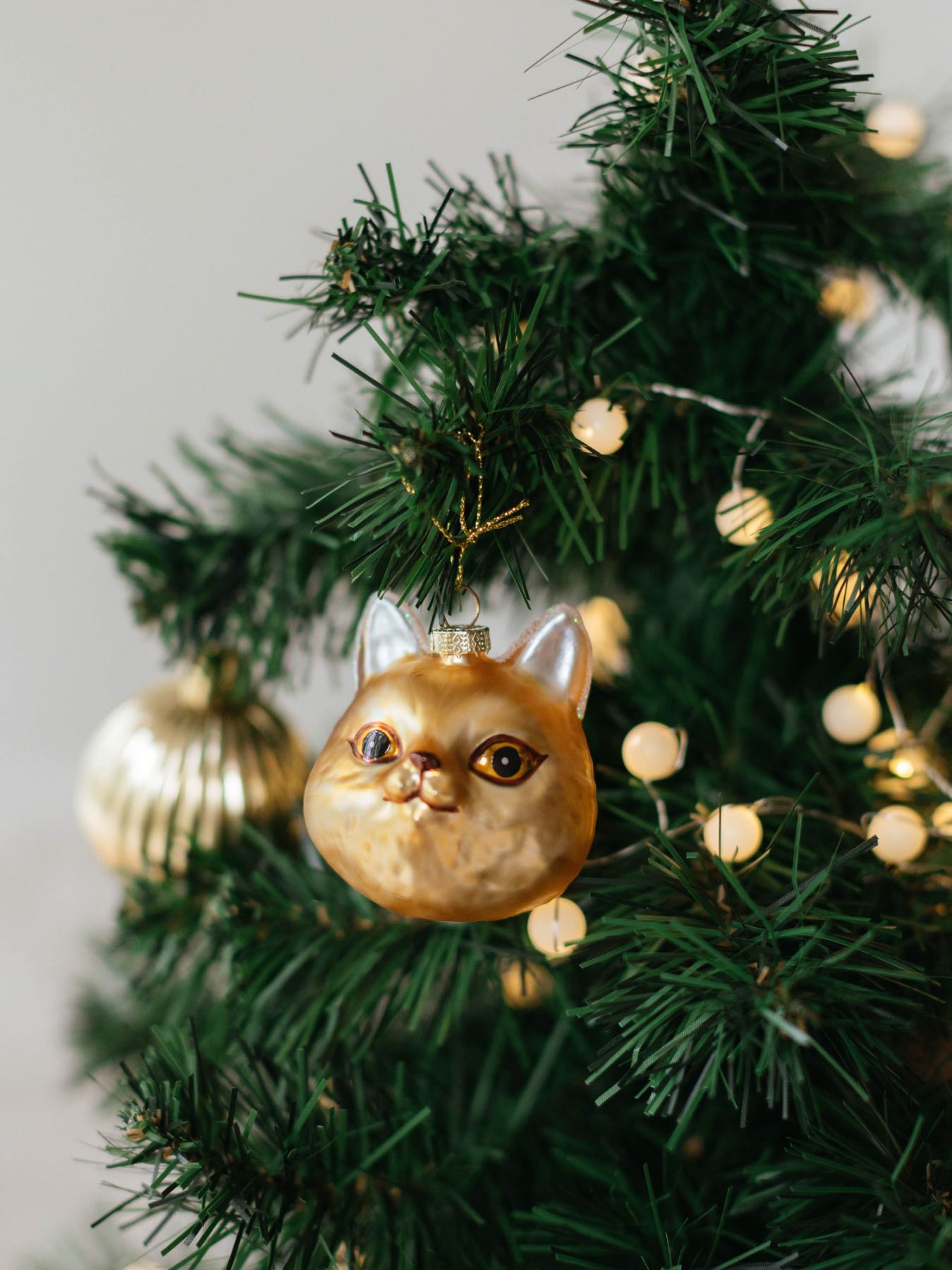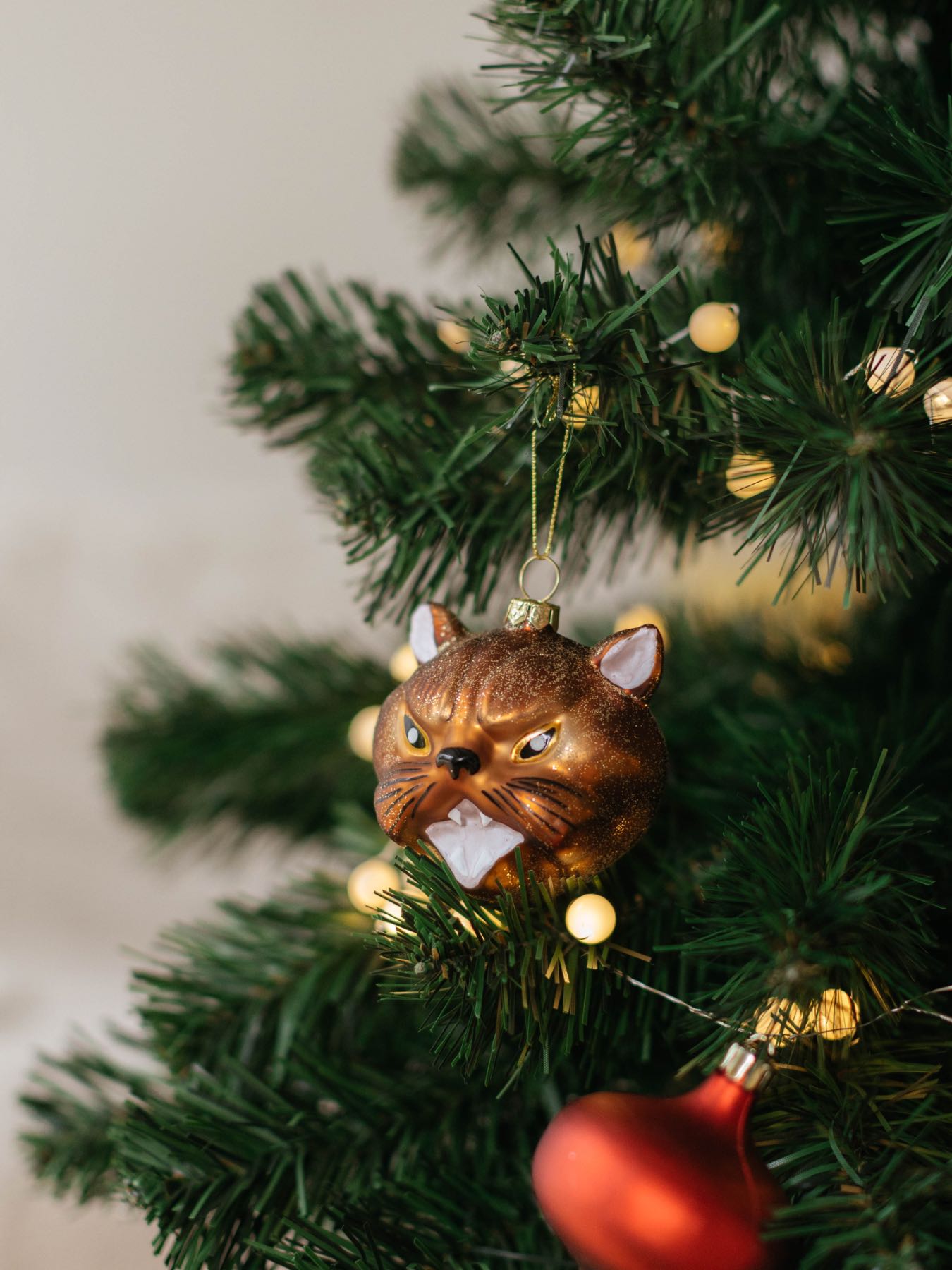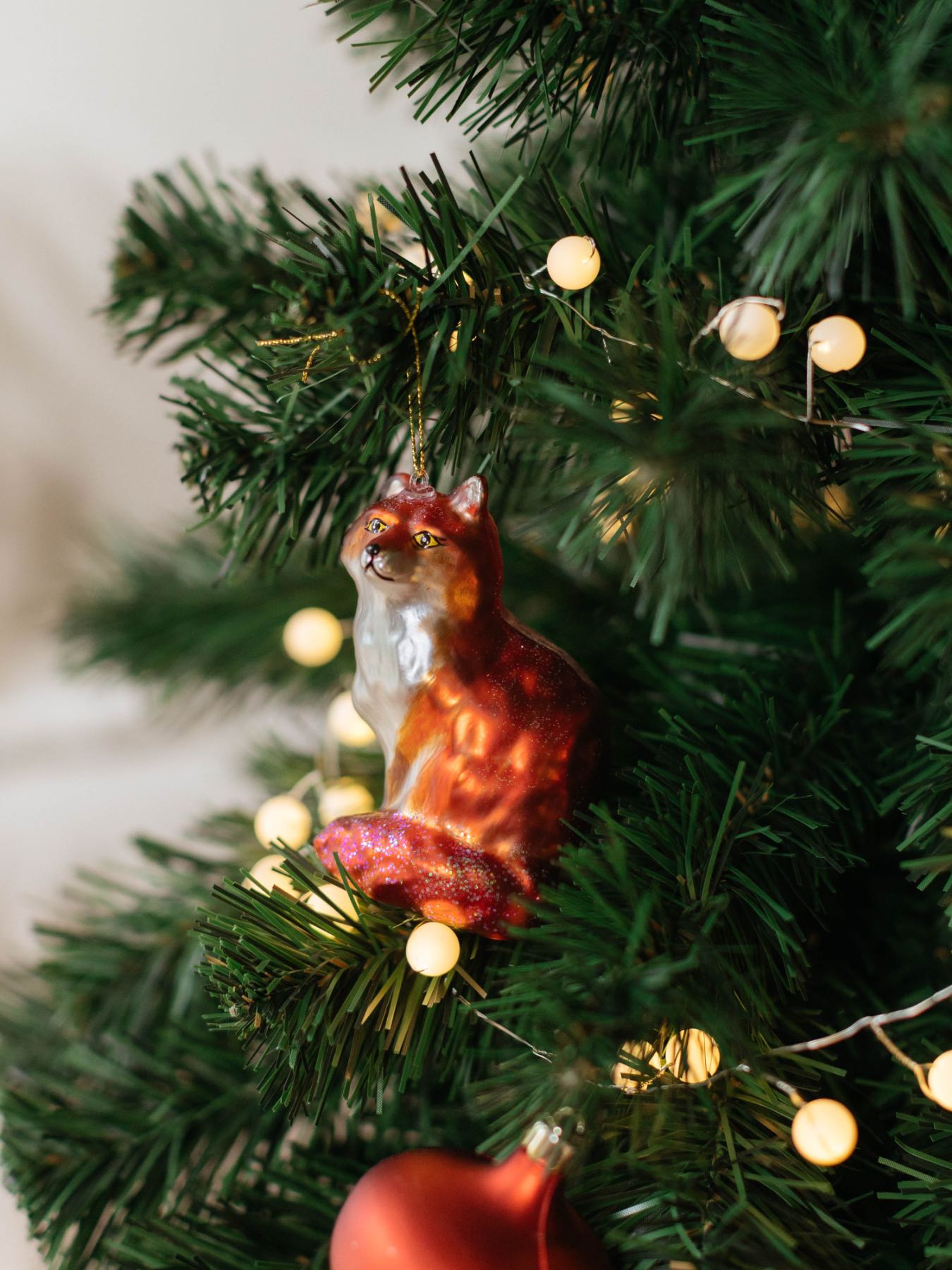 まつげがチャーミングなキツネ。ツリーに映えるオレンジトーンです。