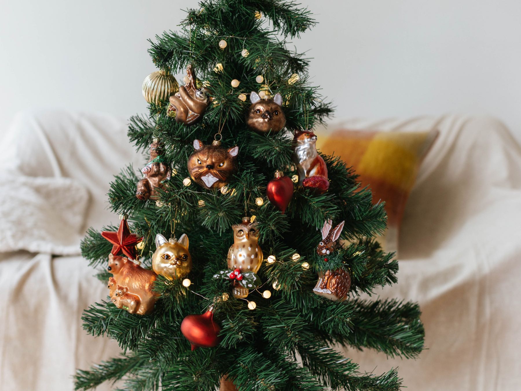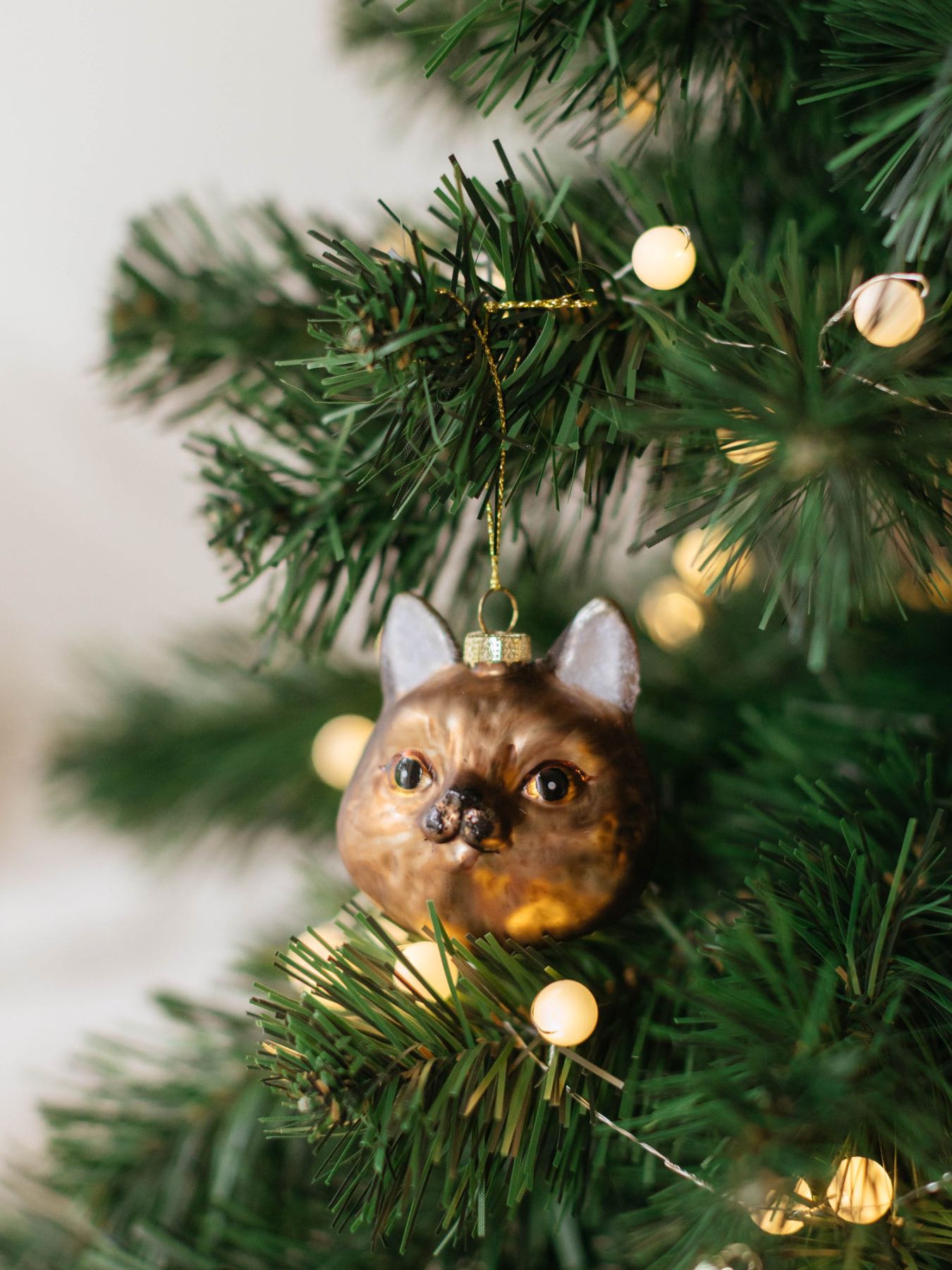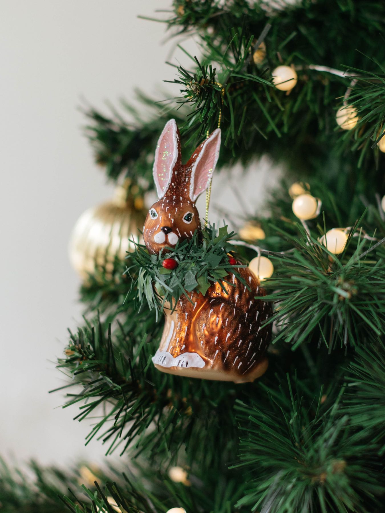 まつげがチャーミングなキツネ。ツリーに映えるオレンジトーンです。