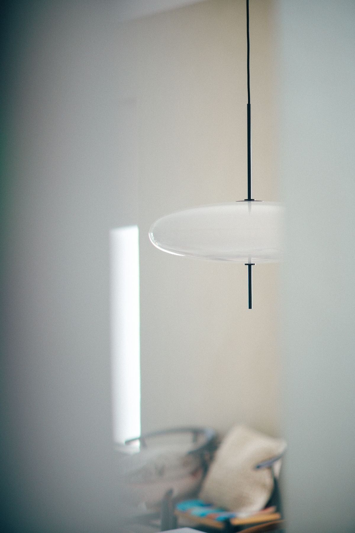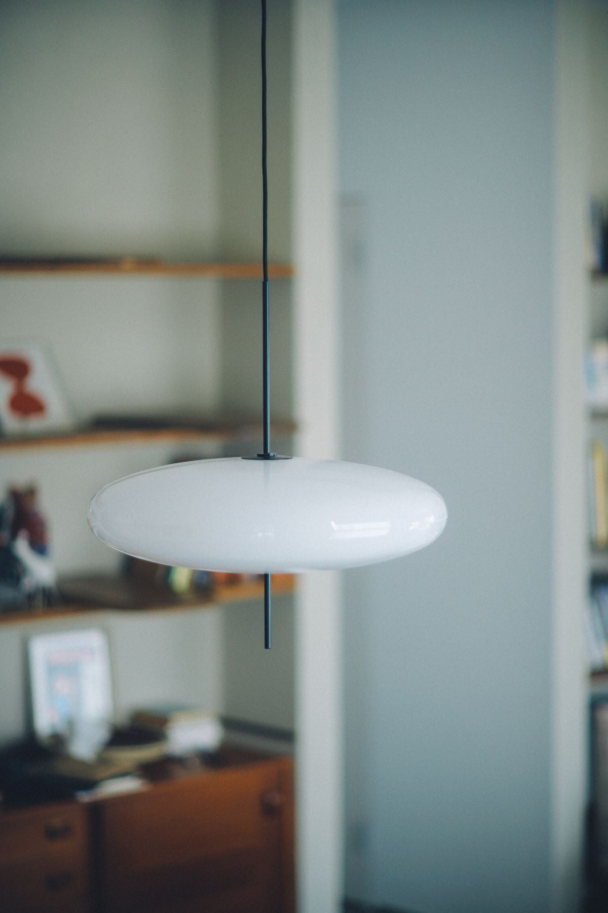 とても美しい浮遊感のある照明で、黒と白のコントラストで部屋の雰囲気がグッとしまりました。