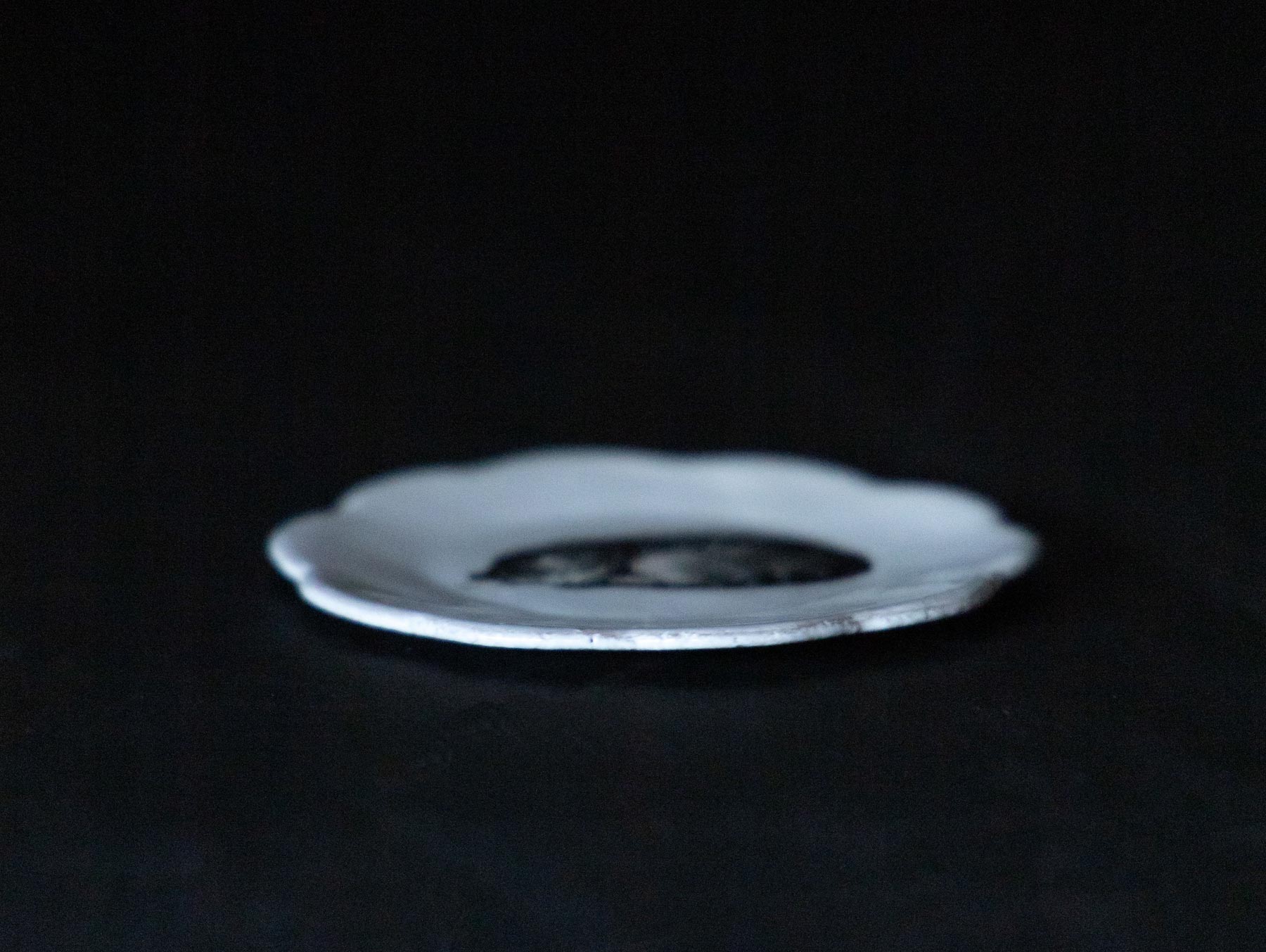 直径8.5cmの小さなお皿に、丸くなって眠る猫の絵柄が配されています。手のひらに収まる猫の姿に、愛おしくなります。