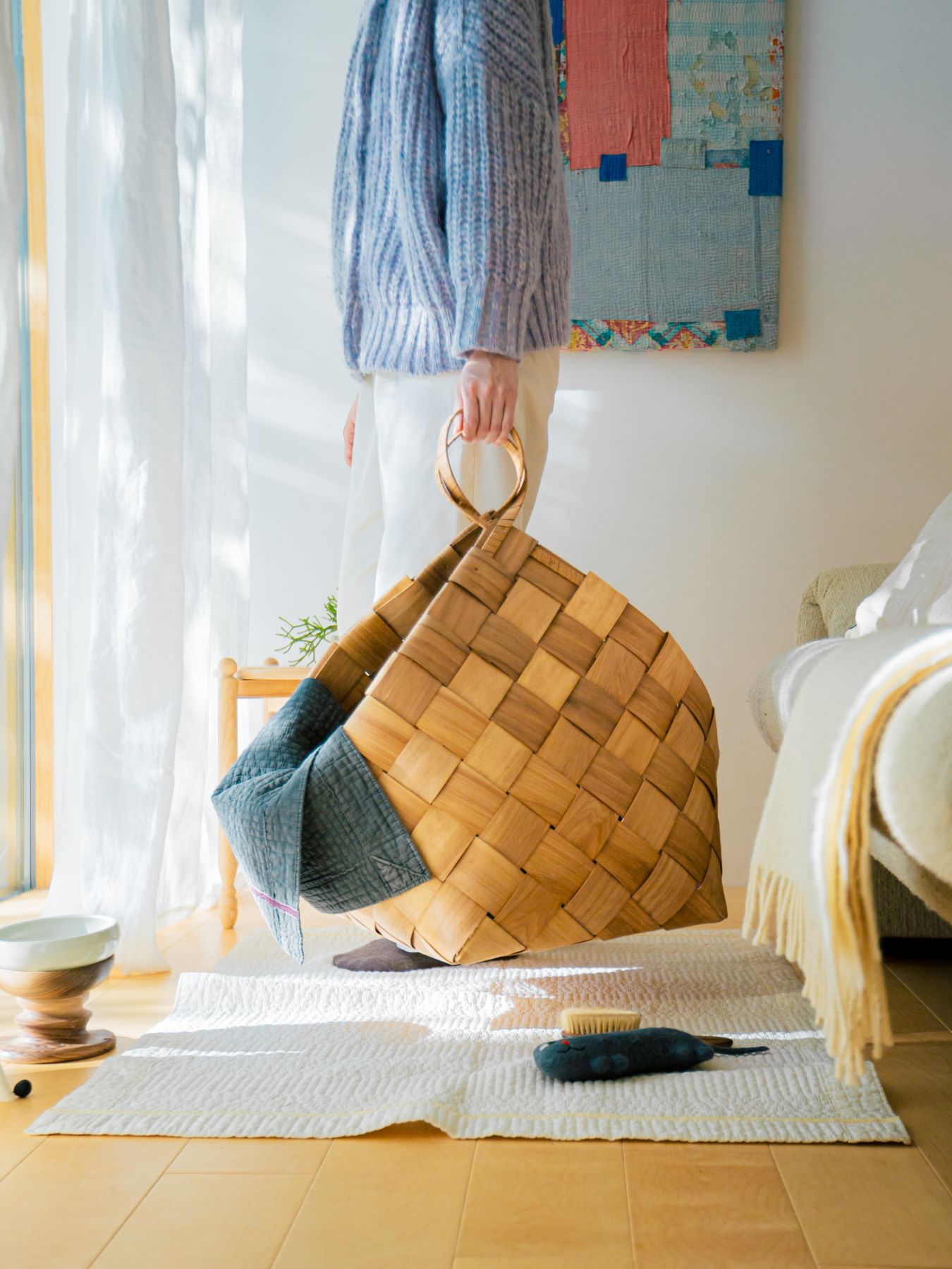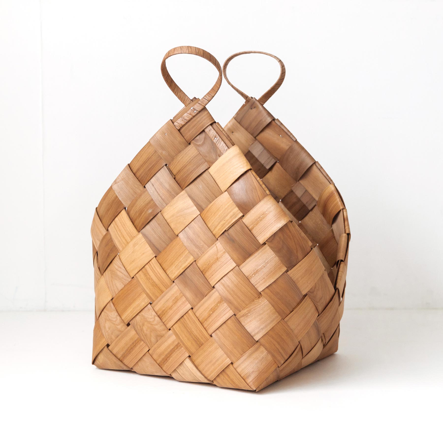 パイン材(松)のバンドを編んでつくった、ナチュラルな雰囲気のバスケット。北欧の伝統的なバスケットに見られるデザインです。
