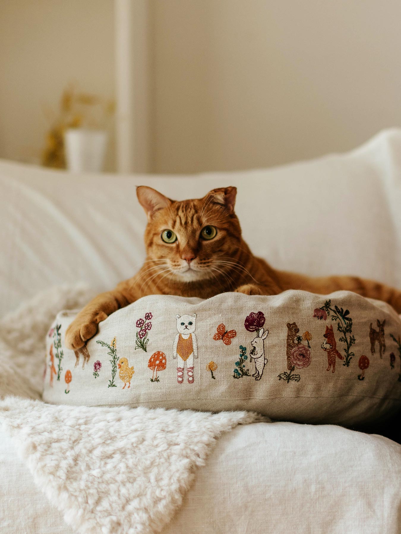 商品自体はとても満足しています。猫は乗ってくれない、、。刺繍がとても繊細で美しい。ファスナーが少し固くて破れないか不安になりました。