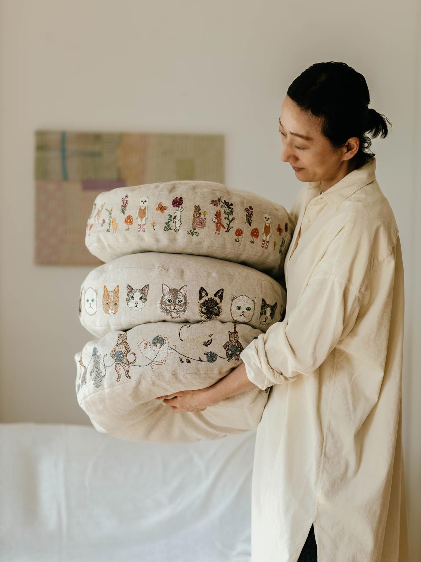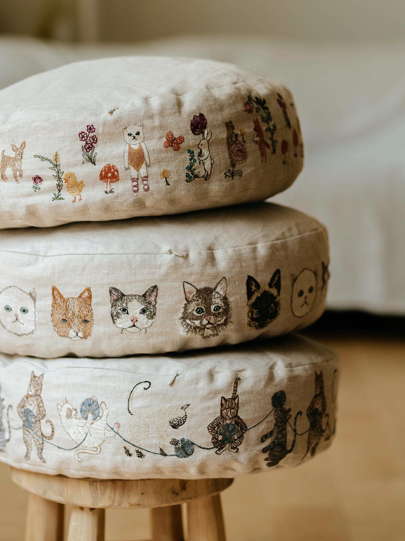 刺繍のモチーフはCoral & Tuskでも人気のネコの絵柄から選びました。